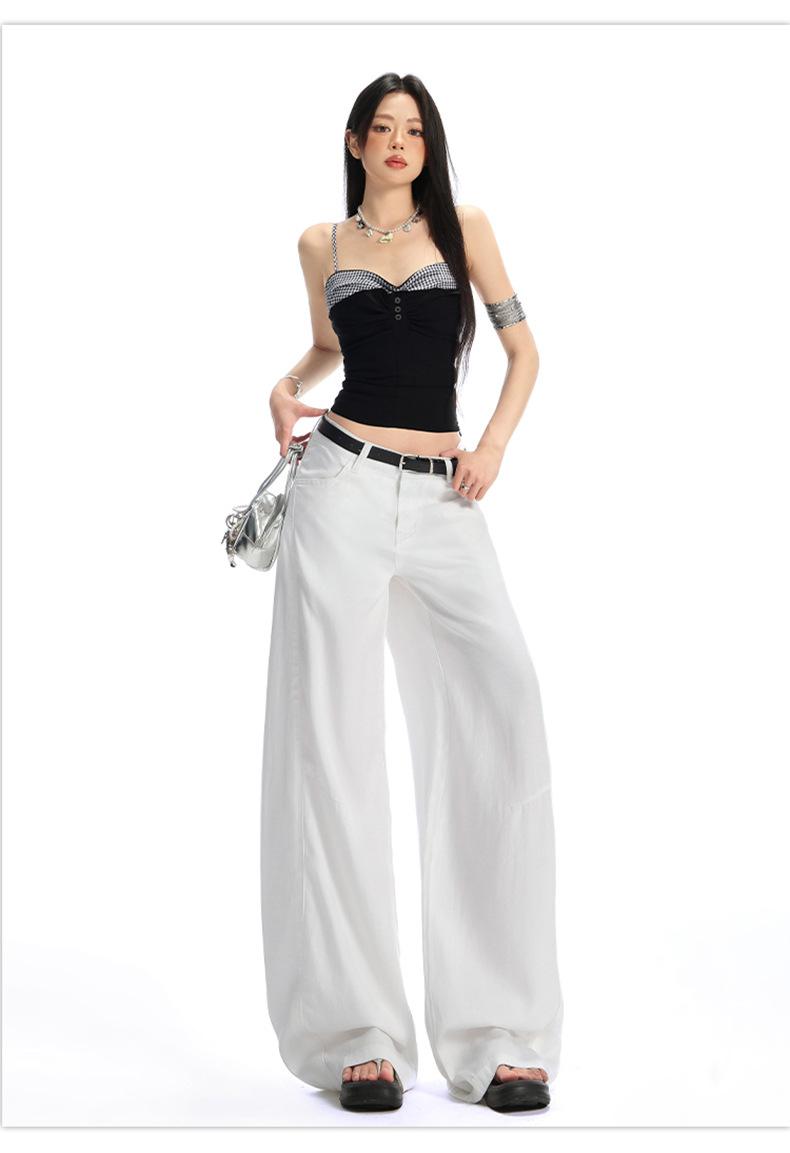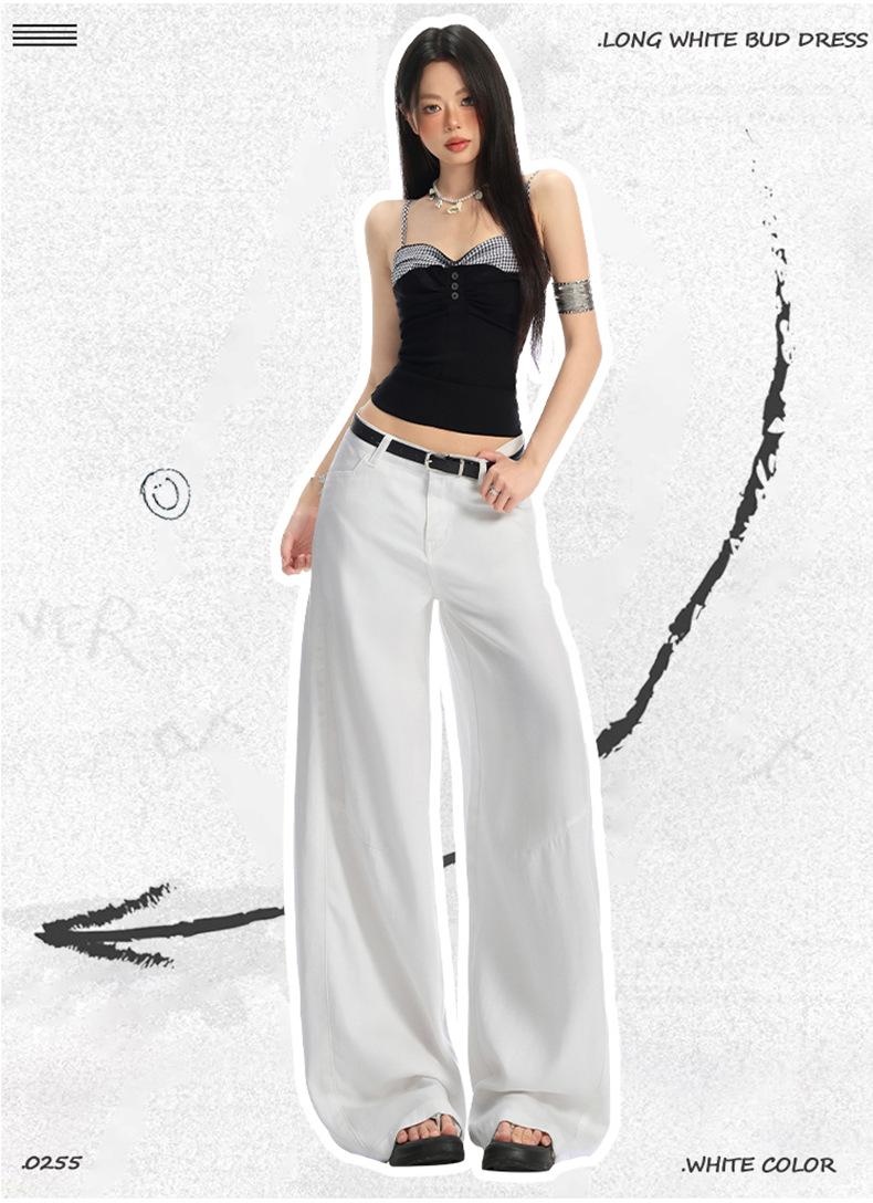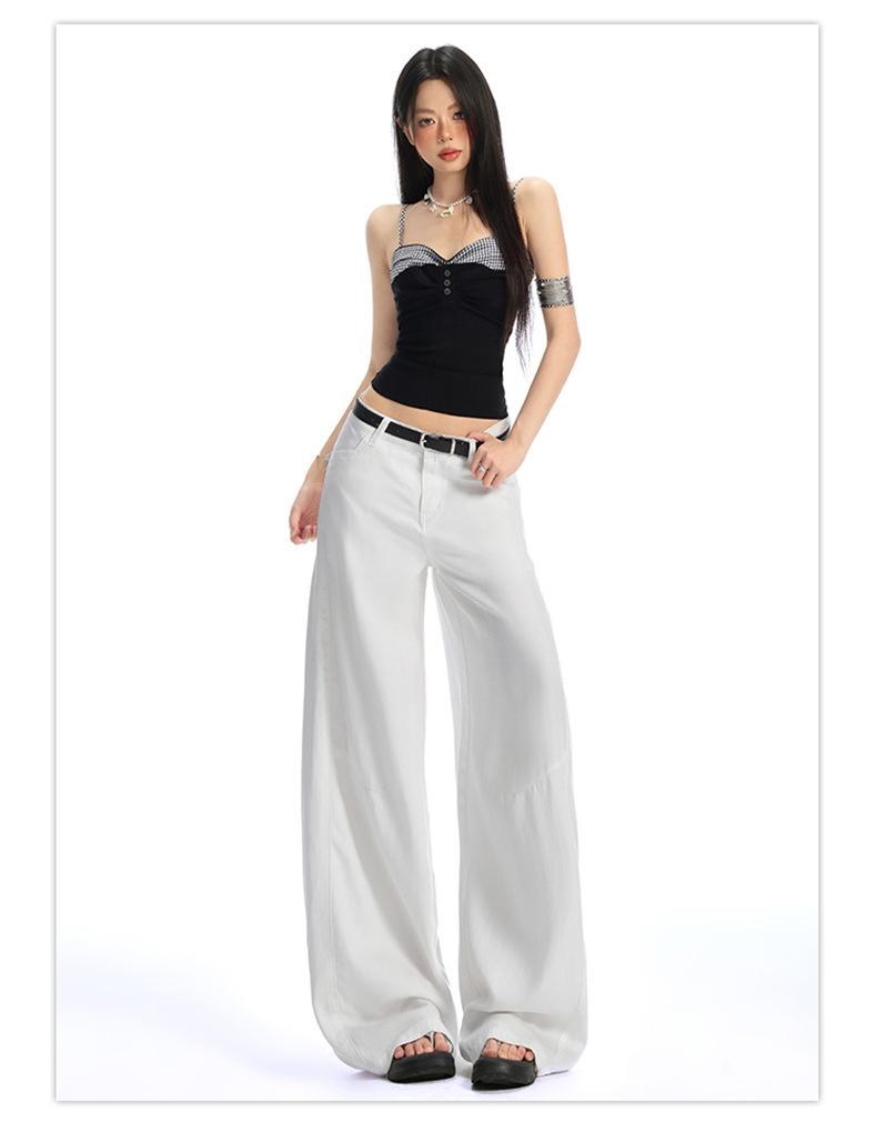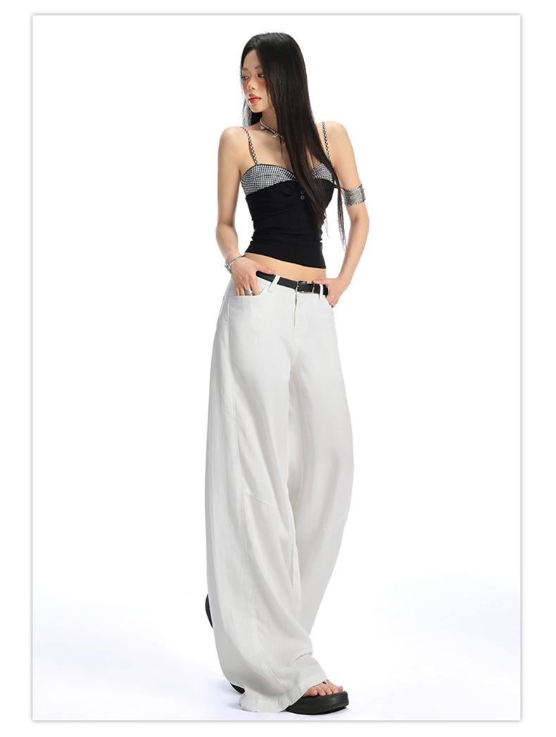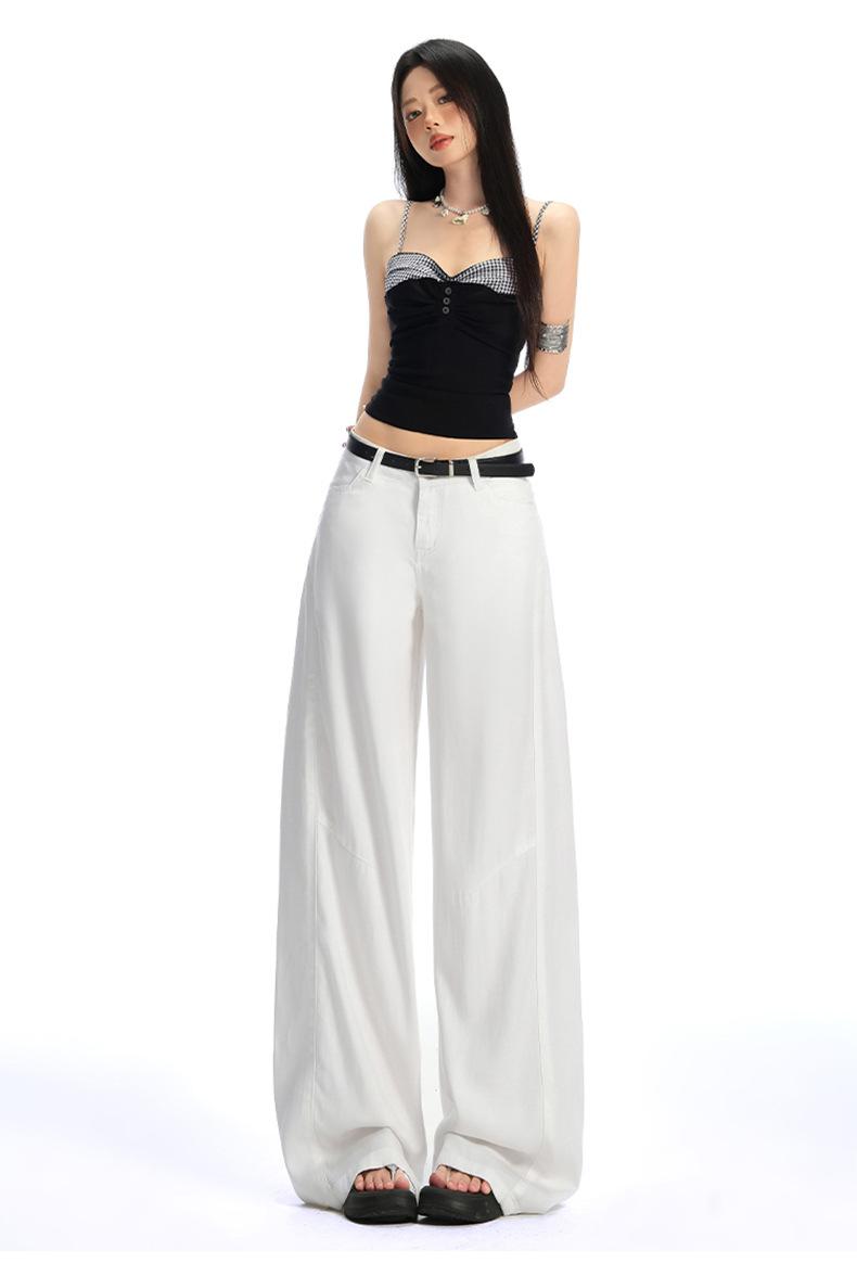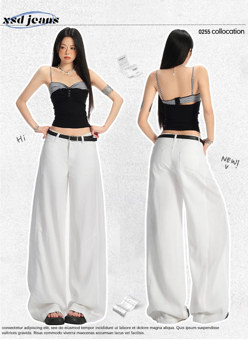 Ropa de Mujer de Seda Naranja # Jeans de Pierna Ancha de Lyocell Tencel Blanco para Mujer Verano Delgados Americanos Cintura Alta Pantalones Cimitarra