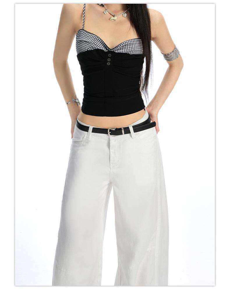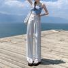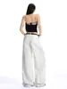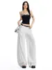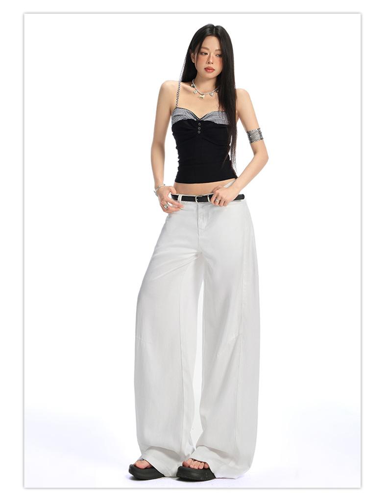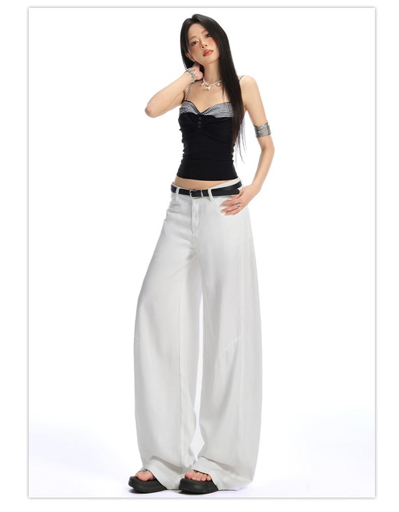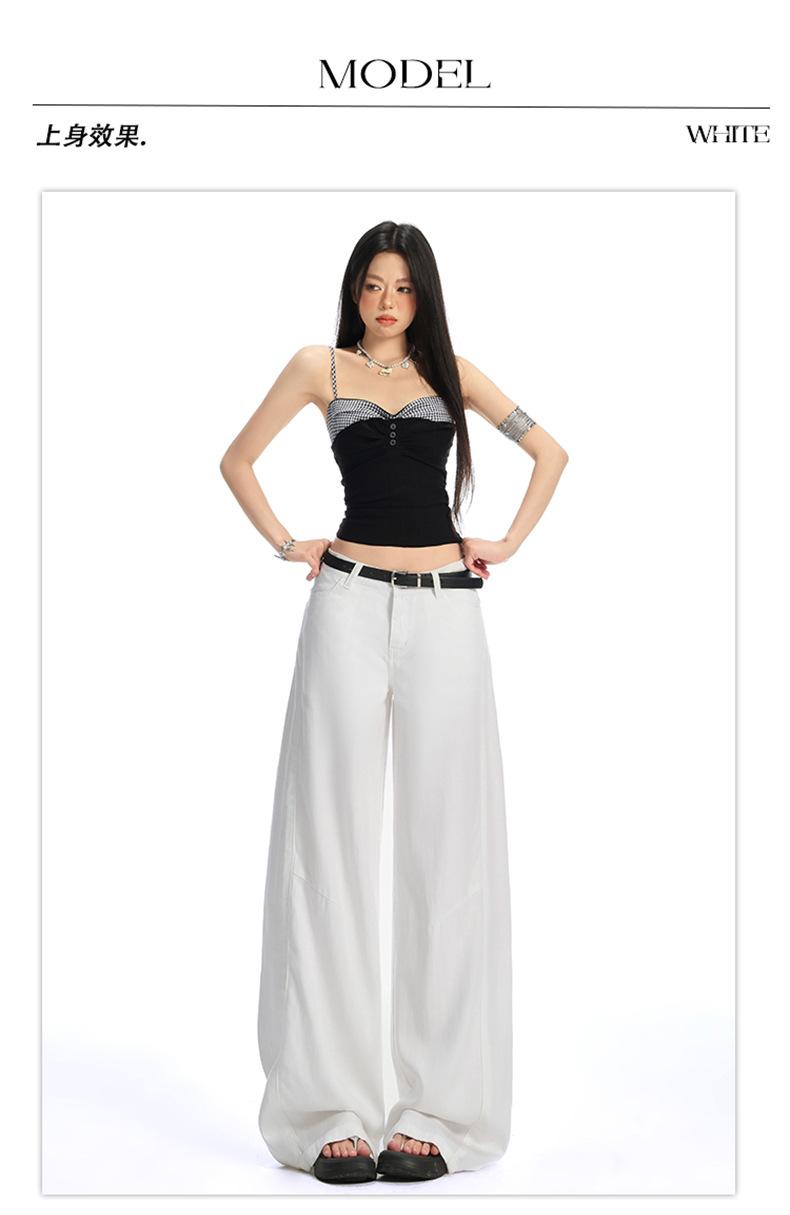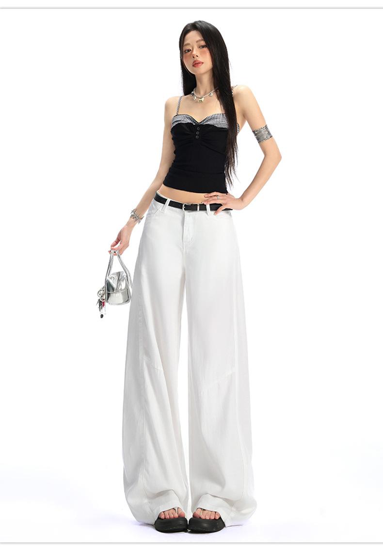 Ropa de Mujer de Seda Naranja # Jeans de Pierna Ancha de Lyocell Tencel Blanco para Mujer Verano Delgados Americanos Cintura Alta Pantalones Cimitarra