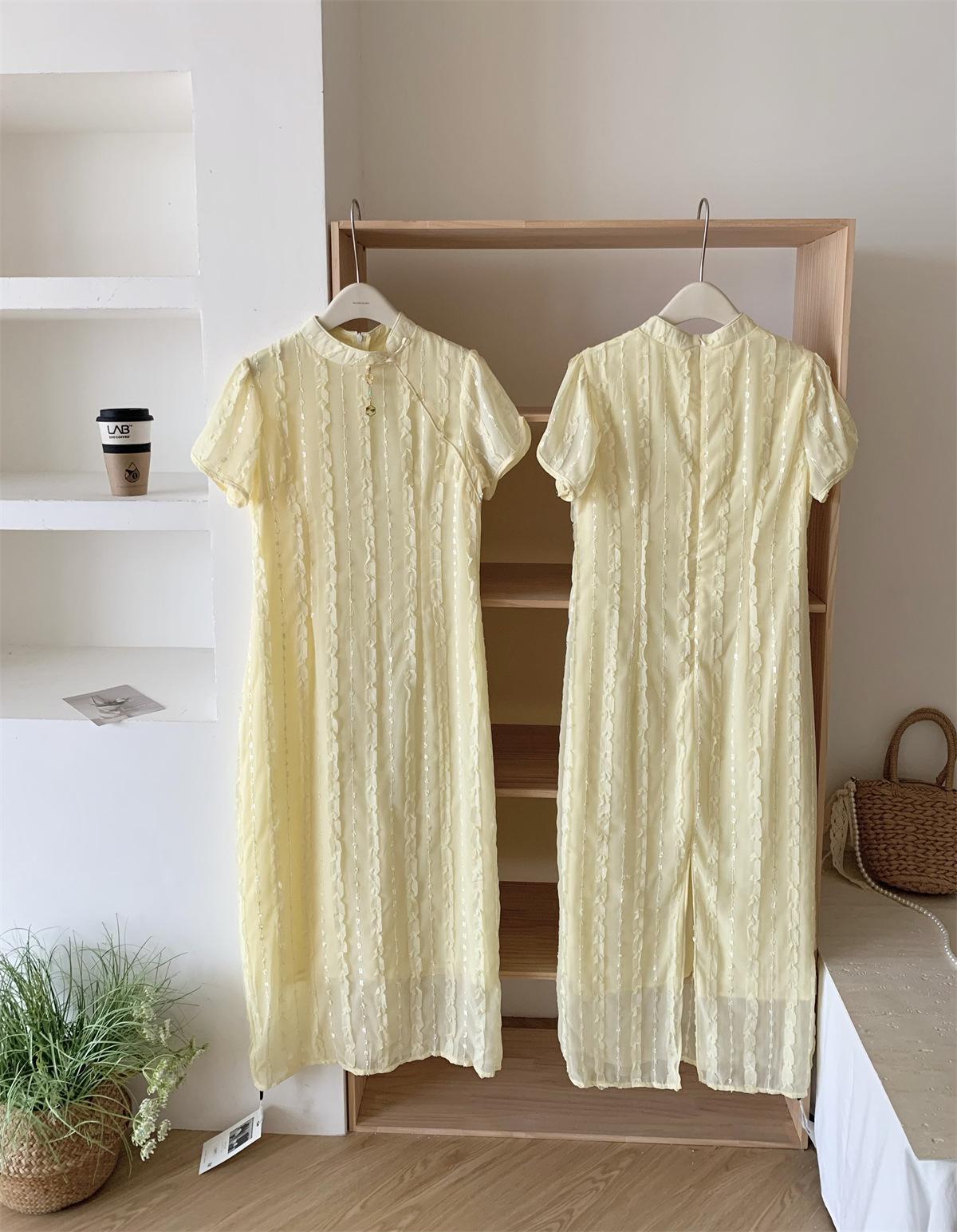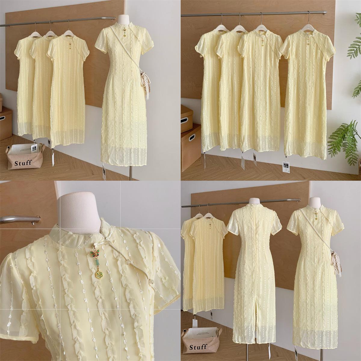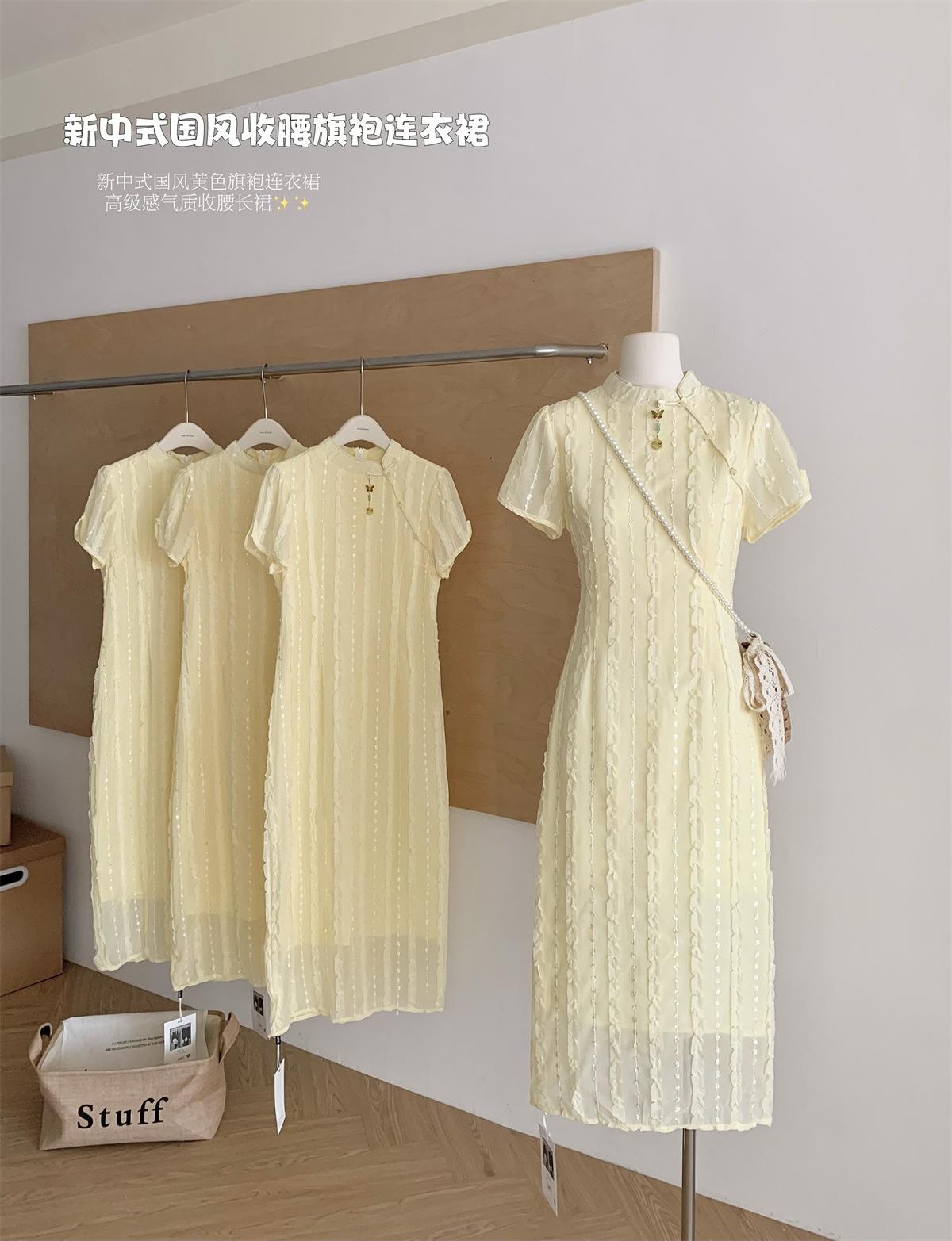 Vestido Qipao Mejorado con Solapa Diagonal Amarilla de Manga Corta Verano Nuevo Estilo Chino Estilo Nacional Ropa de Mujer 2025 Vestido Super Atractivo