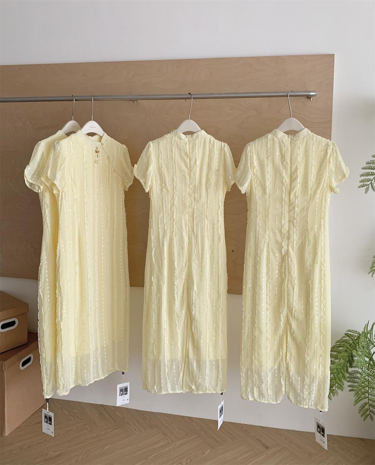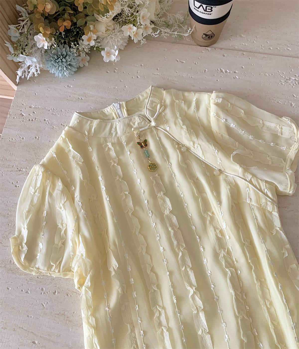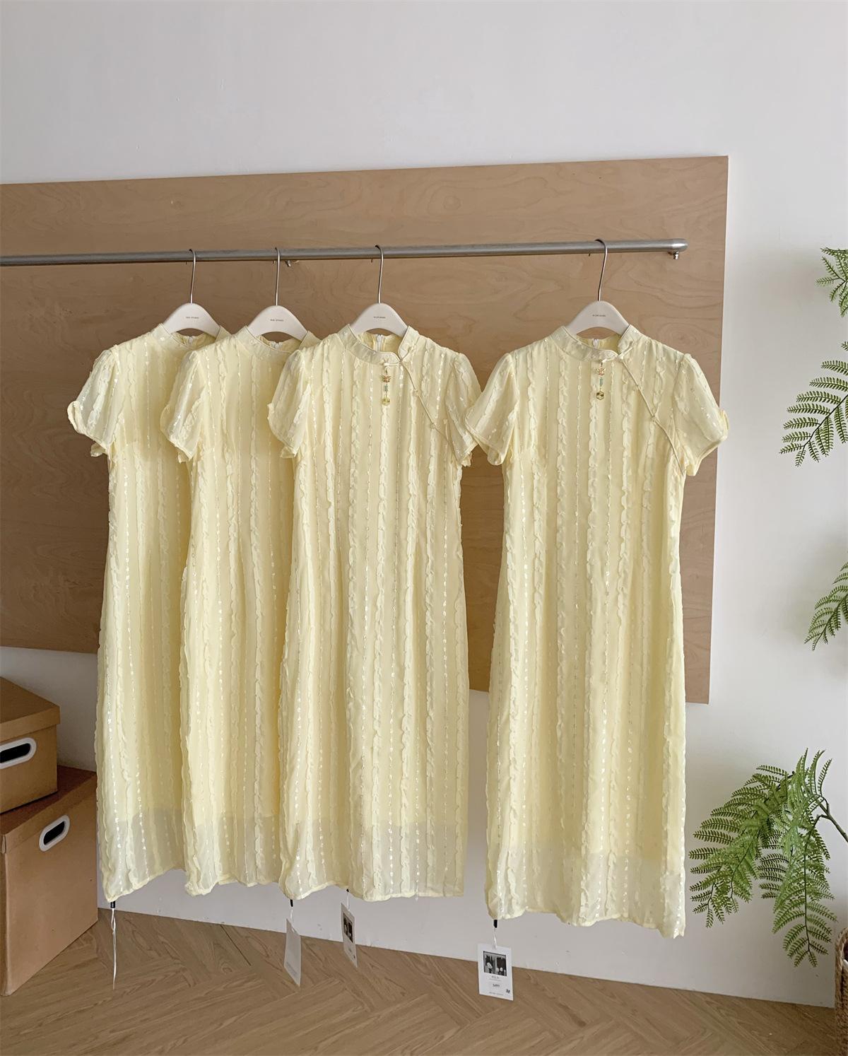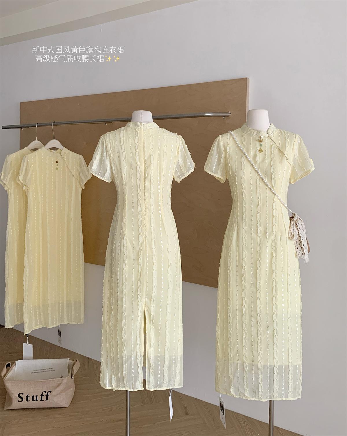 Vestido Qipao Mejorado con Solapa Diagonal Amarilla de Manga Corta Verano Nuevo Estilo Chino Estilo Nacional Ropa de Mujer 2025 Vestido Super Atractivo