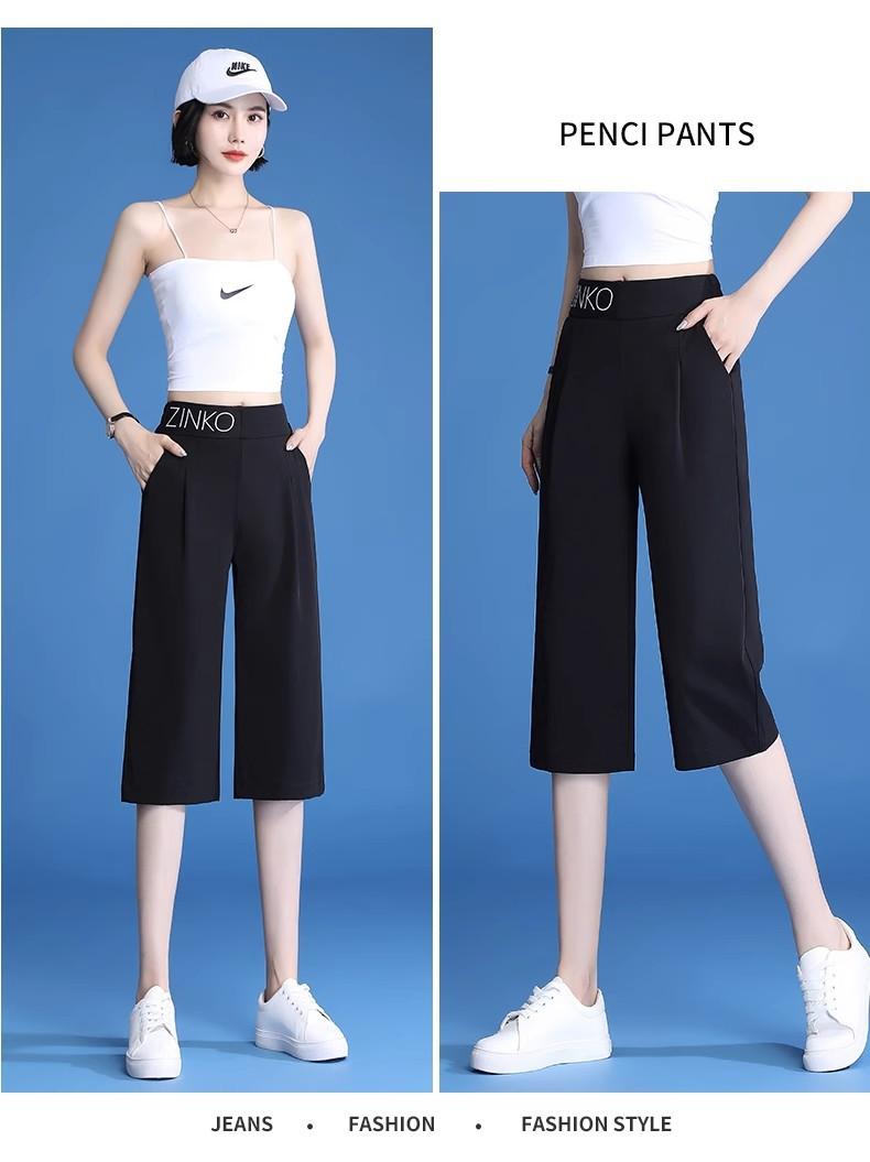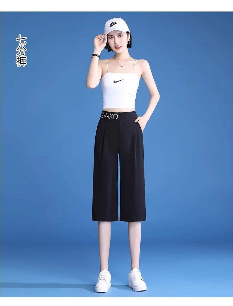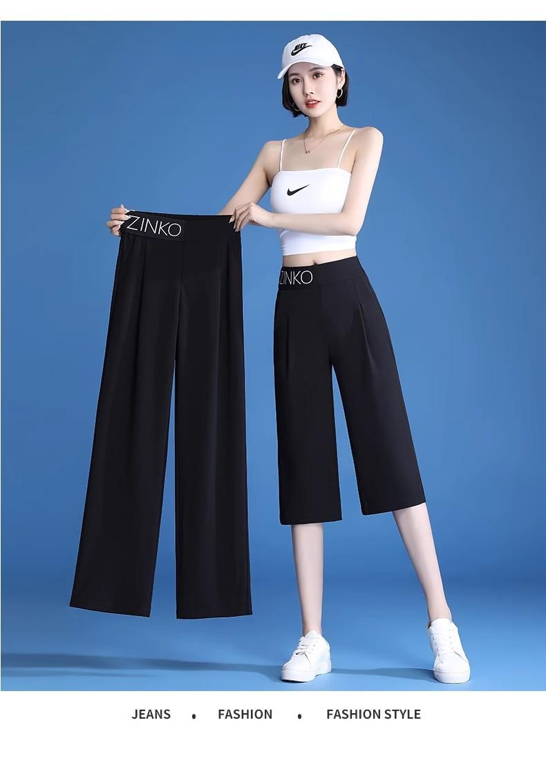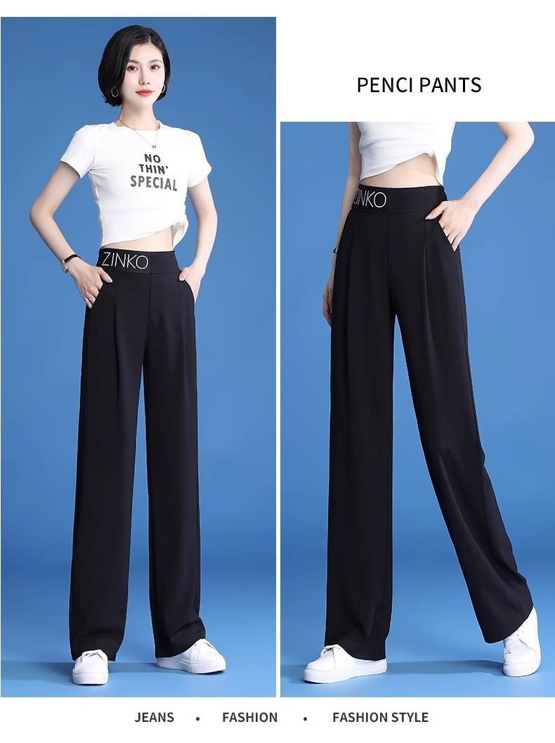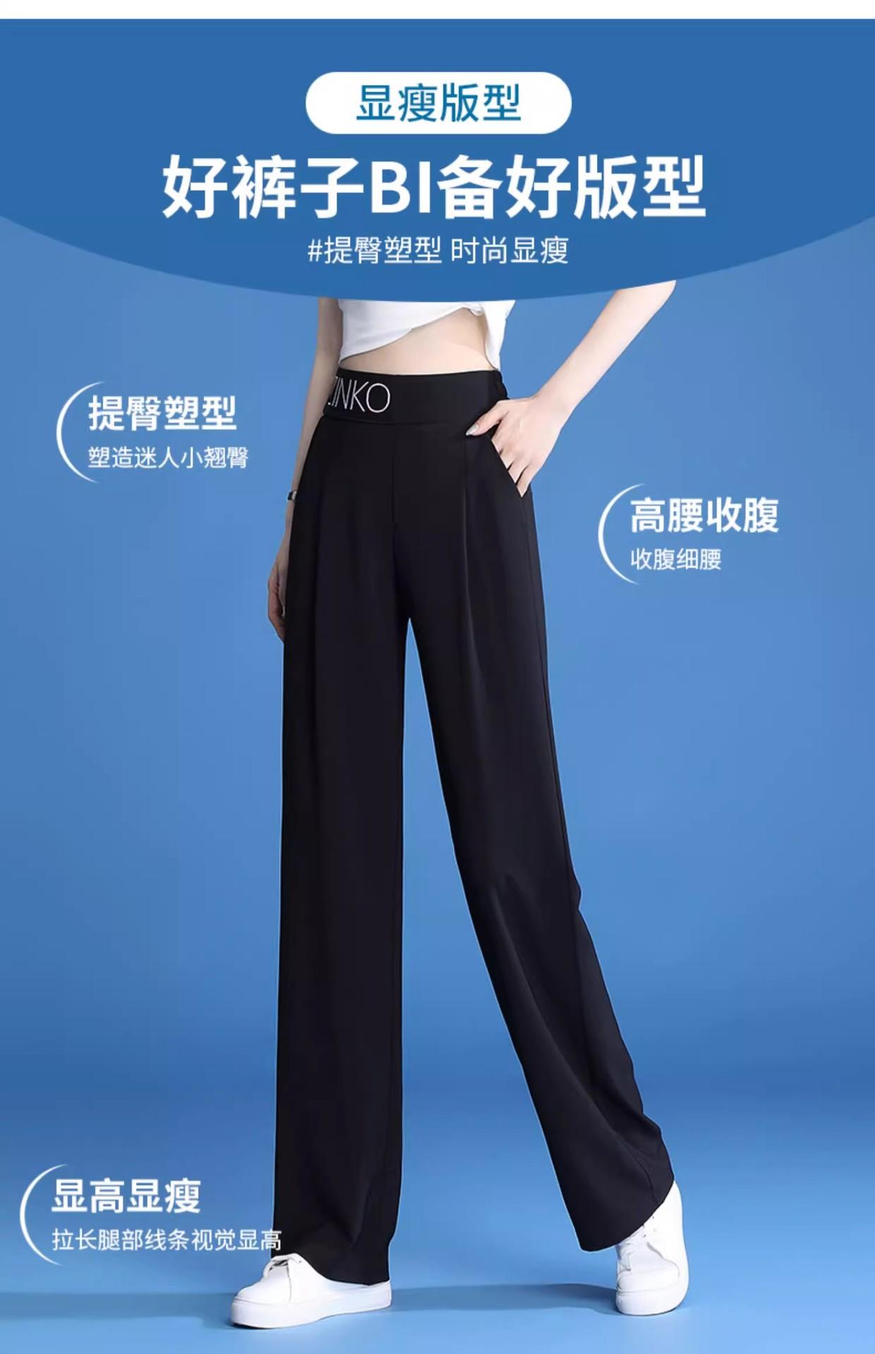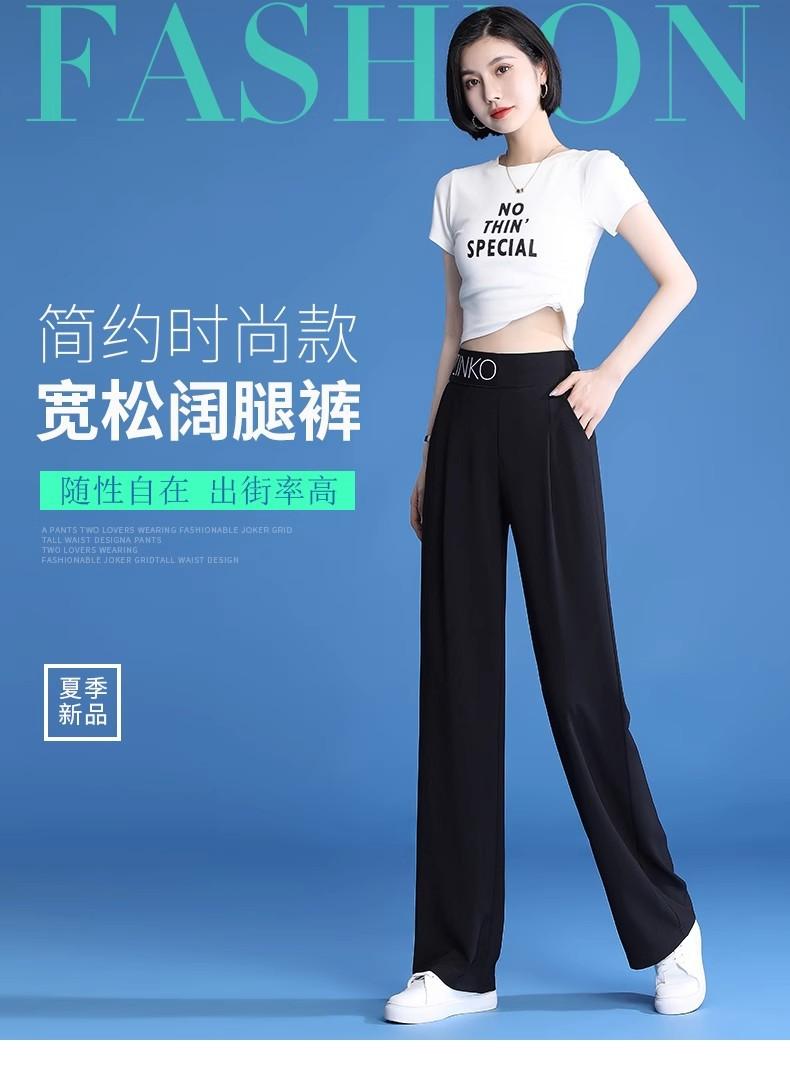 Pantalones de Pierna Ancha Mujer Verano Delgados Seda Helada Pantalones de Mujer 2024 Nuevo Verano Cintura Alta Caída Casual Pierna Recta Pantalones de Traje