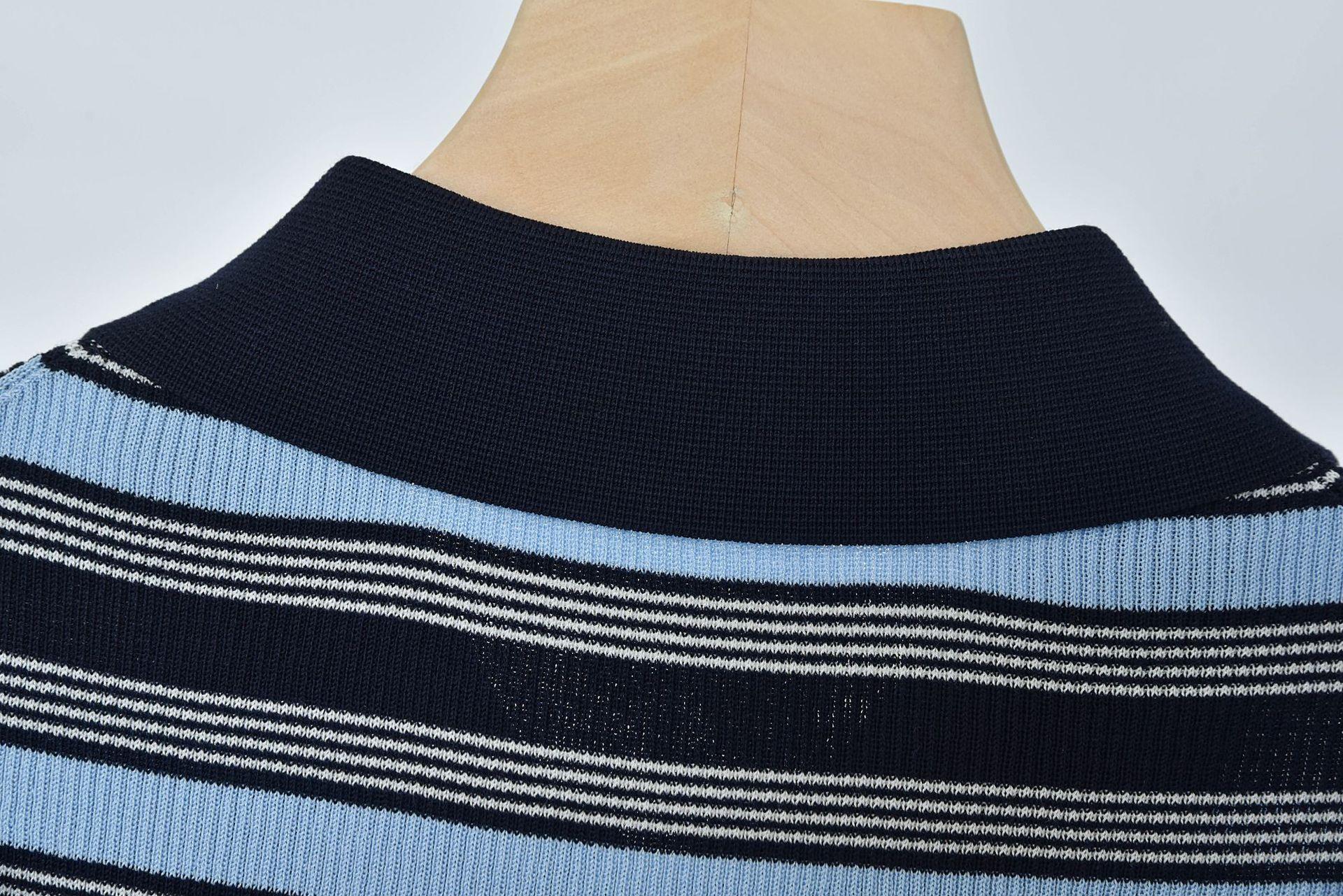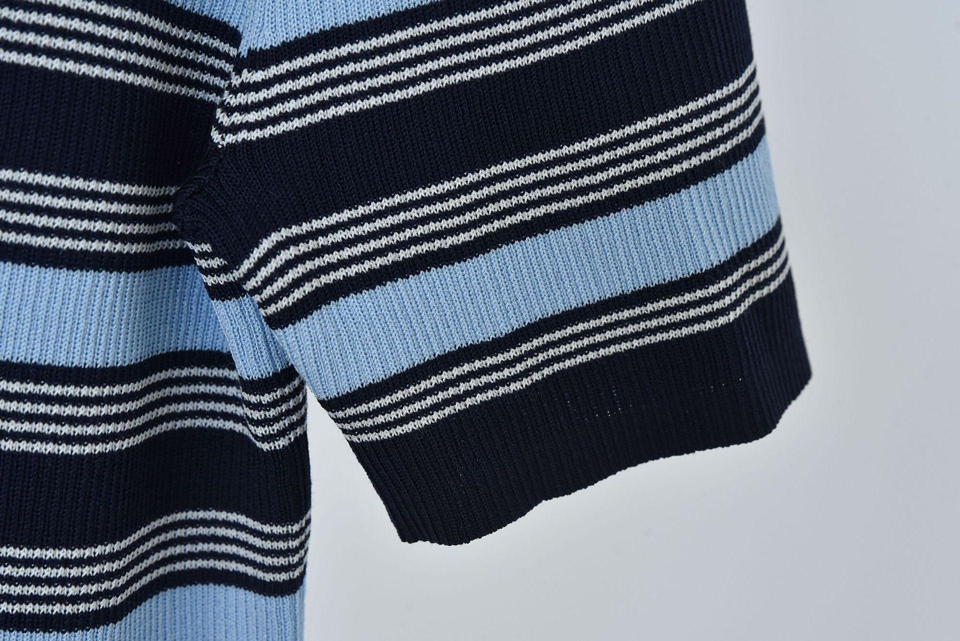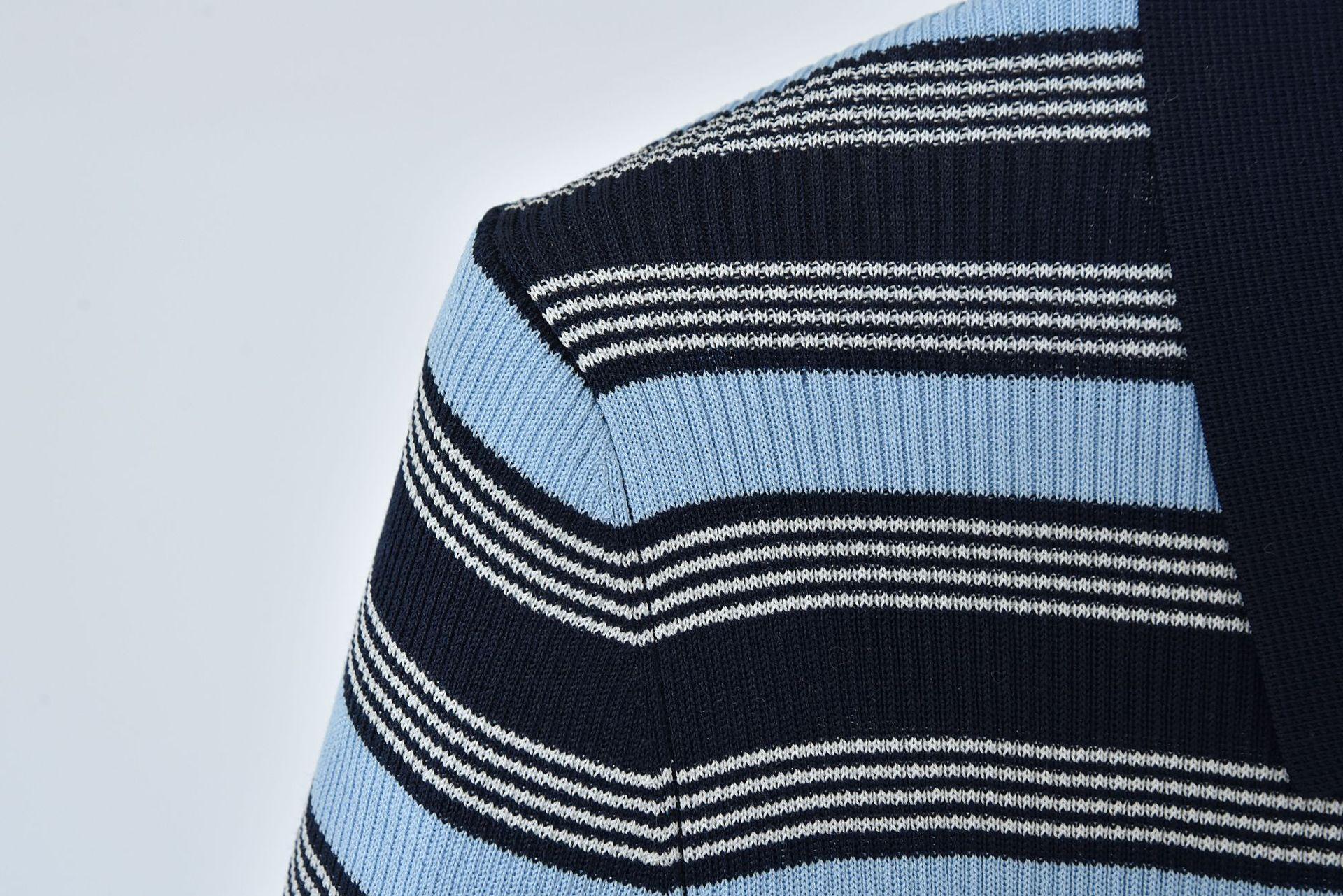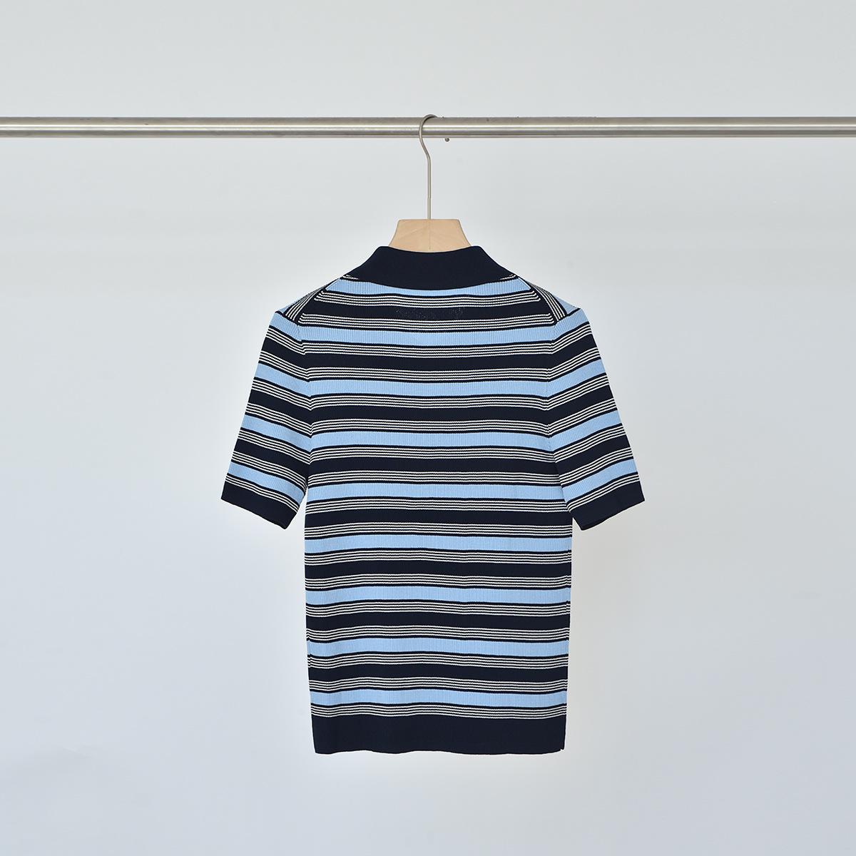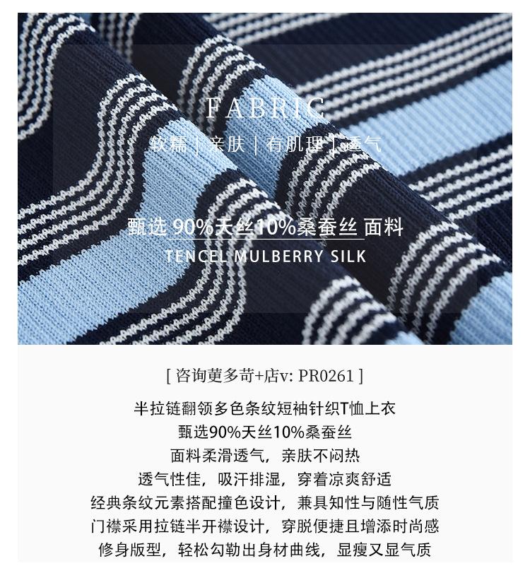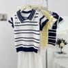 Primavera/Verano Estilo Coreano Moda Bloque de Color Rayado Media Abertura con Botones Diseño de Solapa Ajustado Manga Corta Delgado Casual Top de Punto