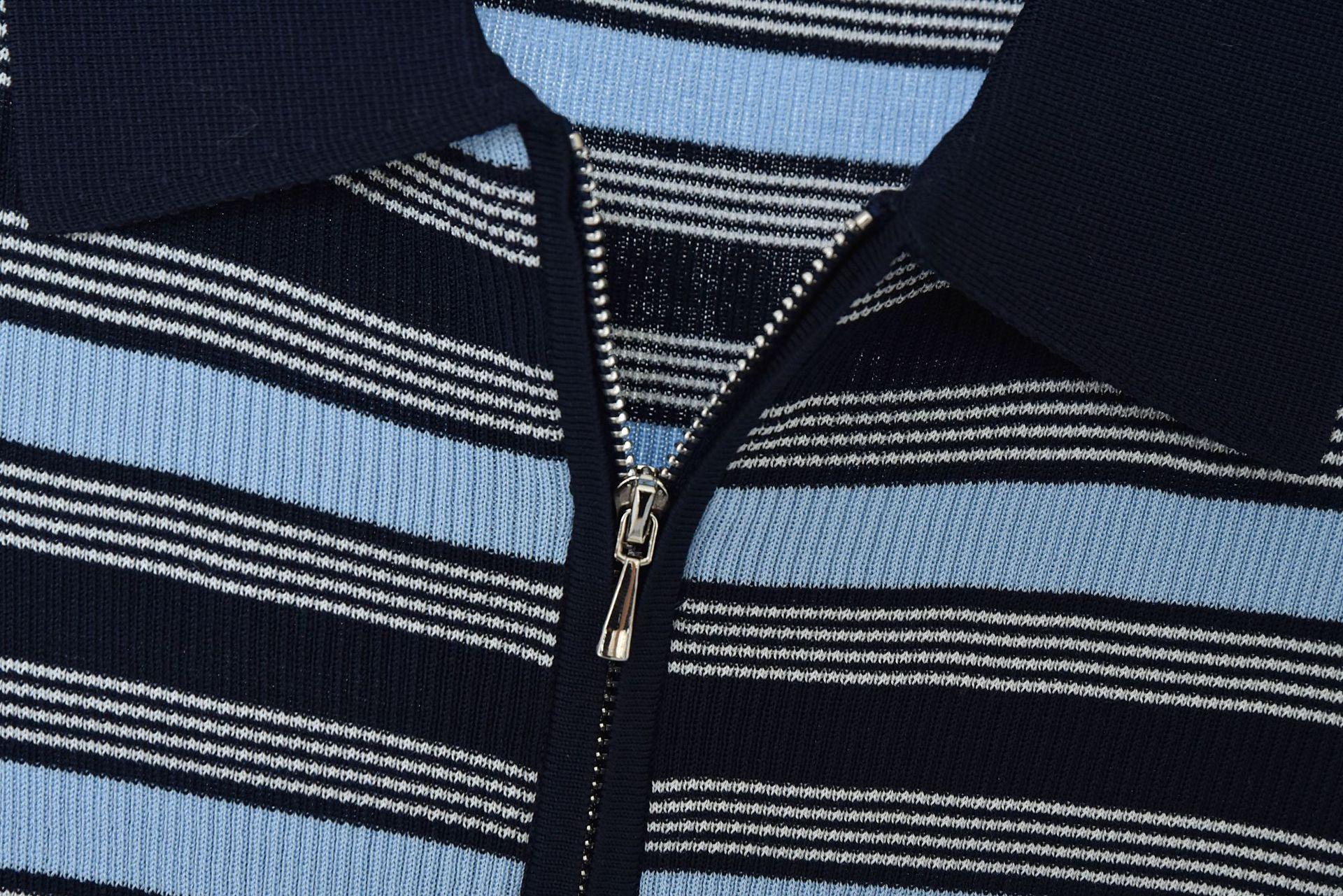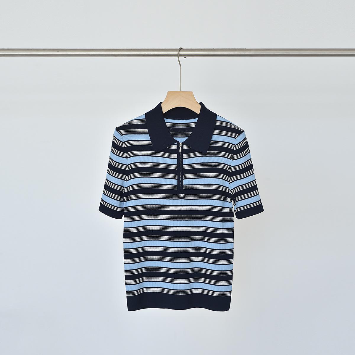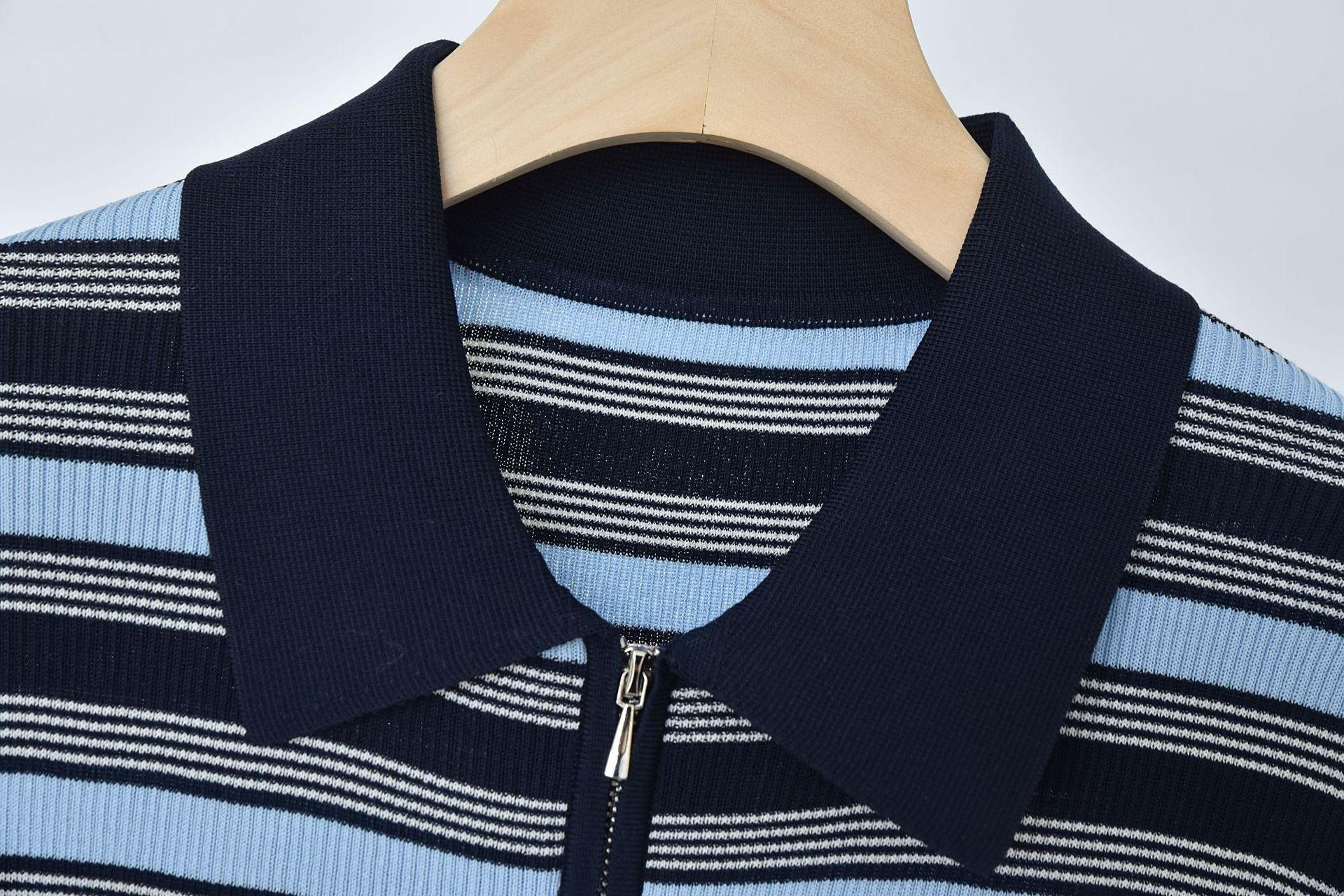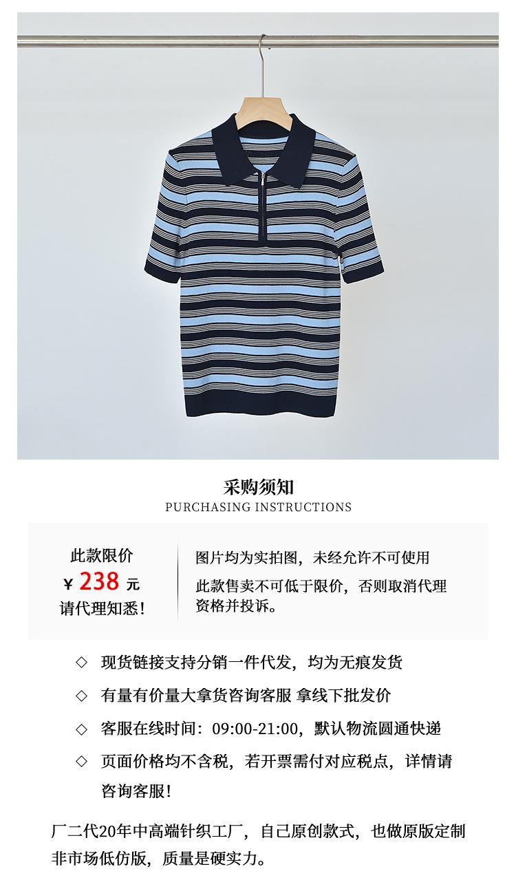 Primavera/Verano Estilo Coreano Moda Bloque de Color Rayado Media Abertura con Botones Diseño de Solapa Ajustado Manga Corta Delgado Casual Top de Punto