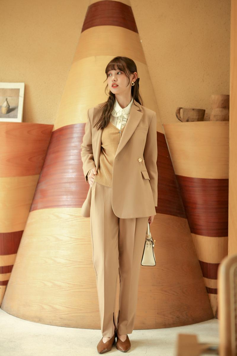 Traje Elegante de Color Puro con Solapa Apilada de Moda 2025 de Otoño Nuevo para Mujer al Por Mayor