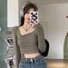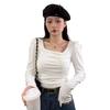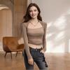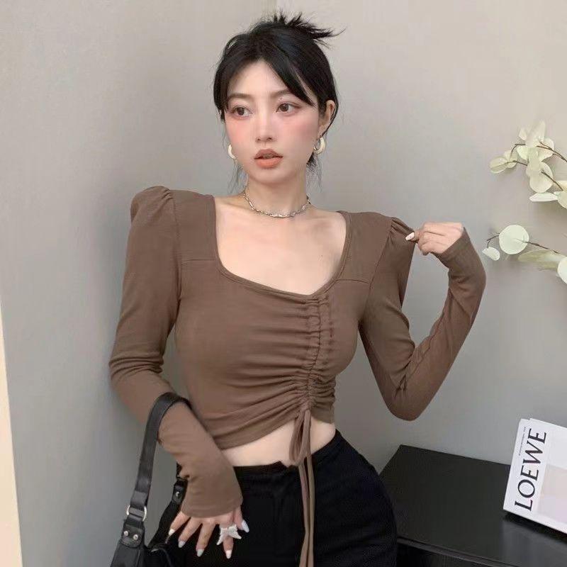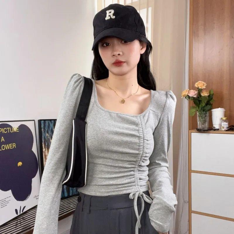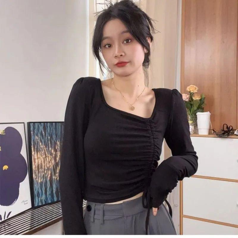 Otoño irregular delgado delgado cordón manga larga camiseta chicas calientes sexy nicho moda pura top único
