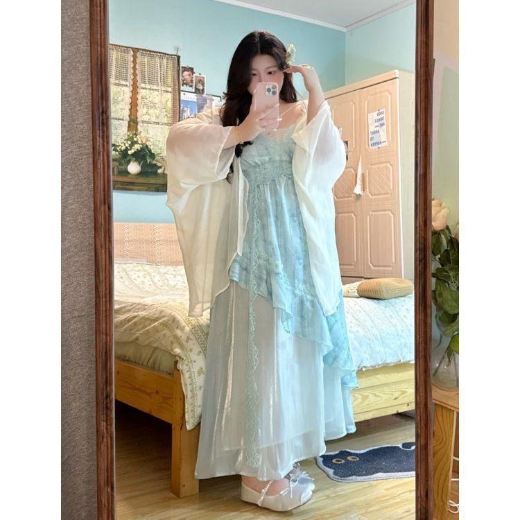 Sunscreen Cardigan + Slip Dress, Sun protection cardigan, Suspender dress