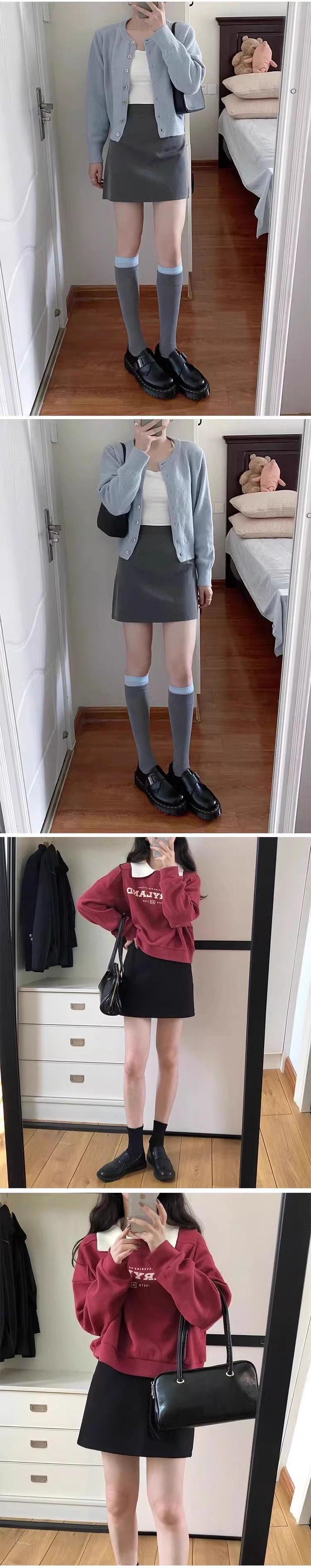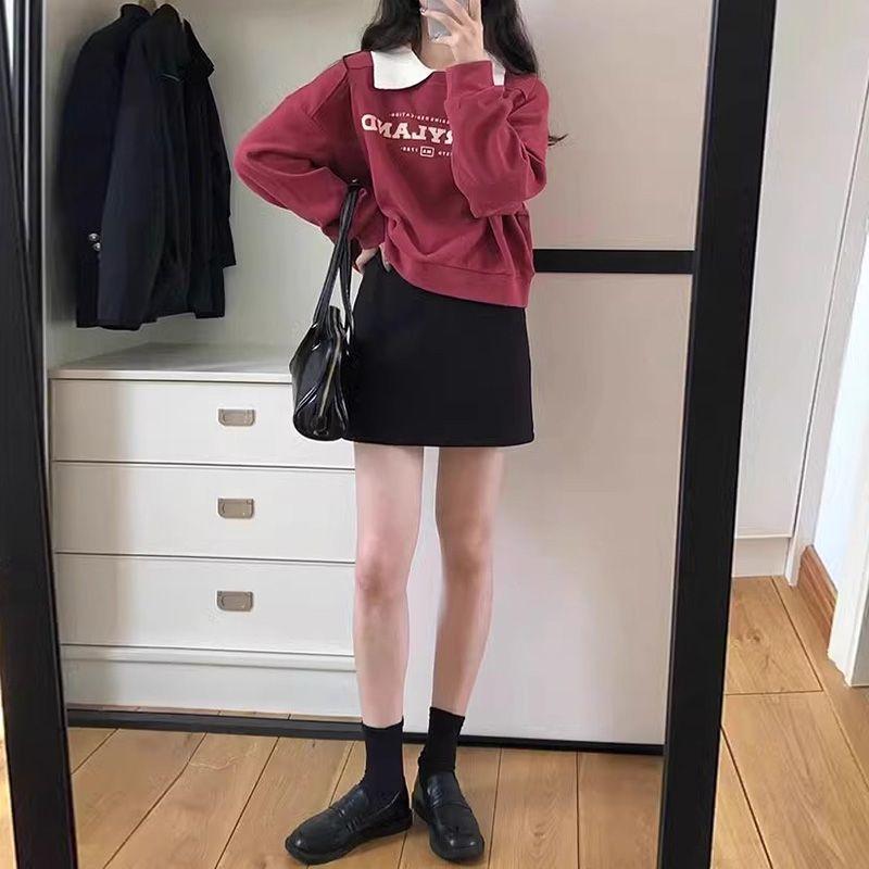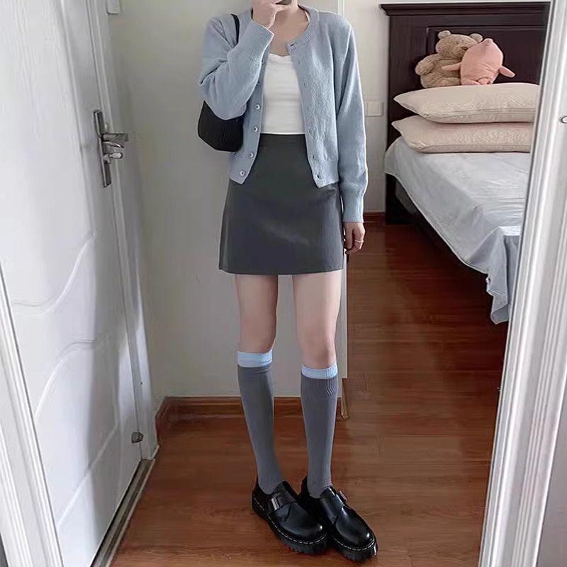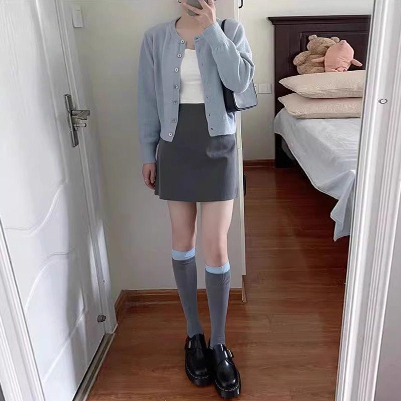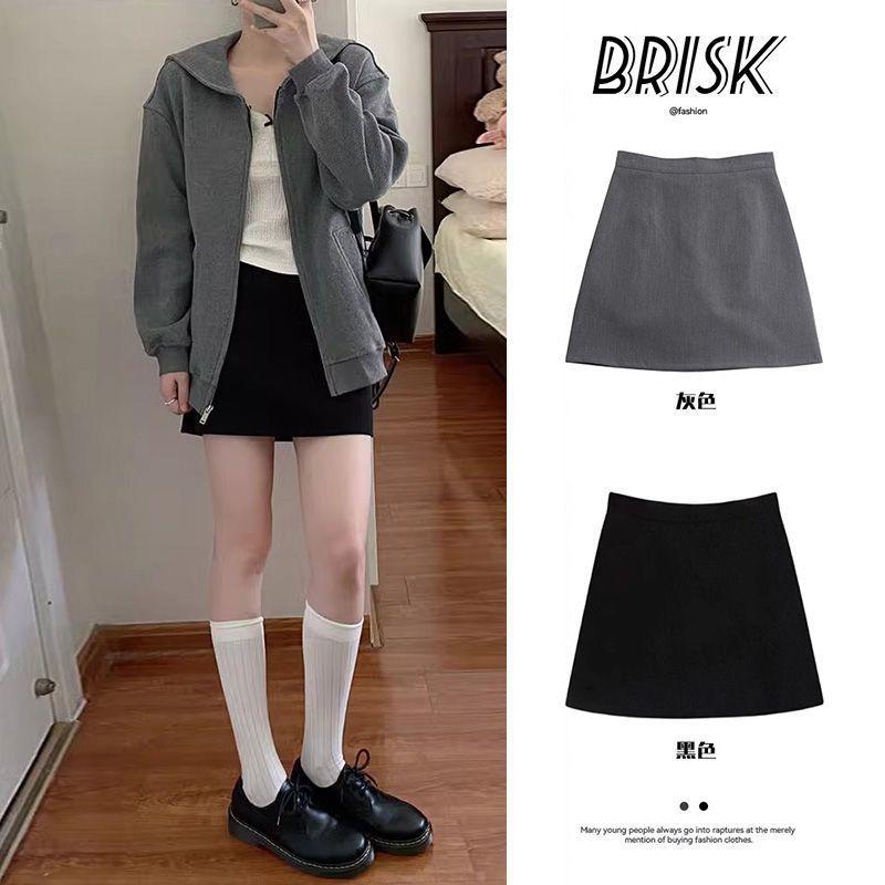 Falda Línea A de Cintura Alta para Mujer Primavera y Verano 2025 Nuevo Estilo Coreano Estilo Preppy Slim Color Sólido Traje Falda Corta