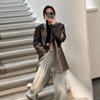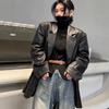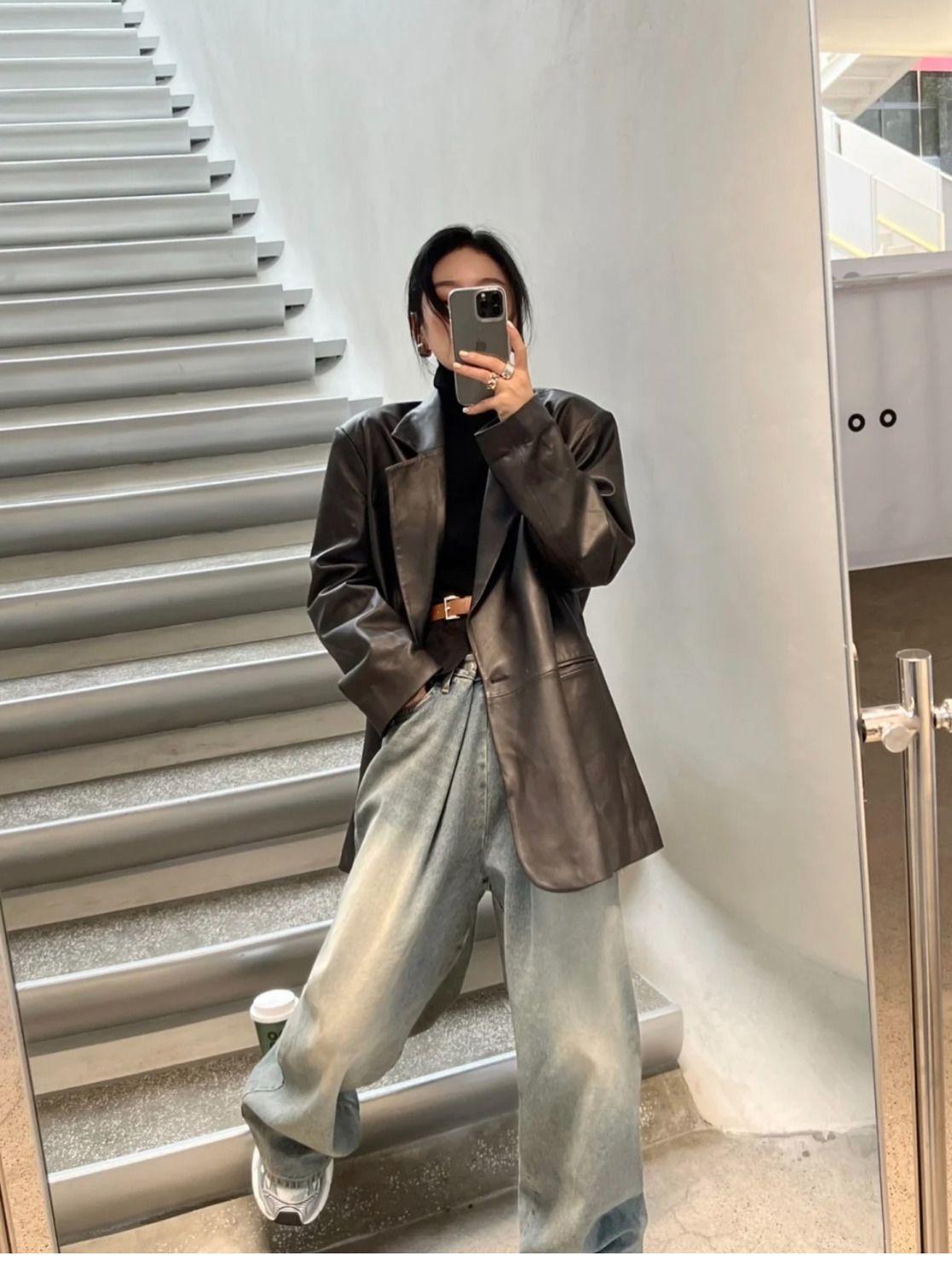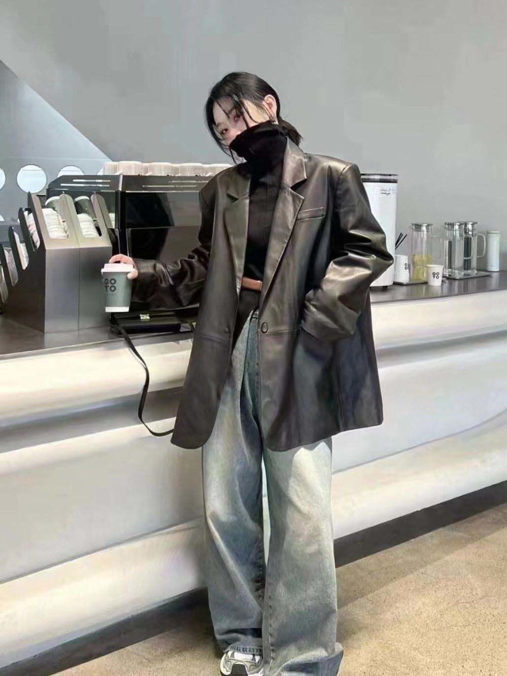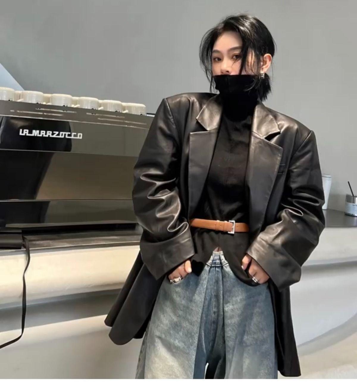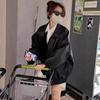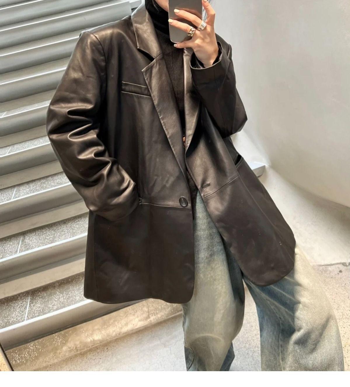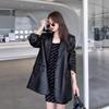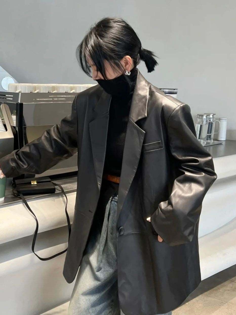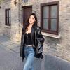 Traje Negro de Moda Simple de Alta Gama Chaqueta de Cuero para Mujer 2025 Otoño Nuevo Versátil Adelgazante Pu Traje Pequeño
