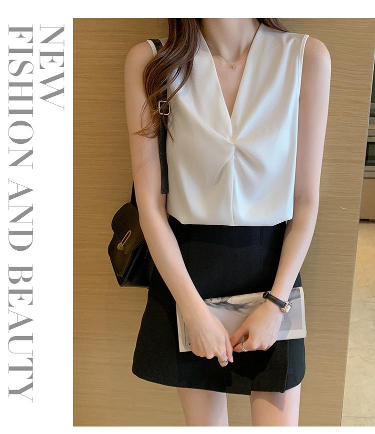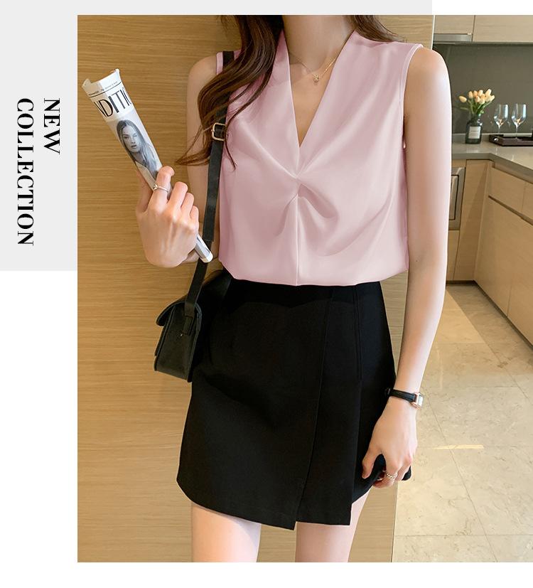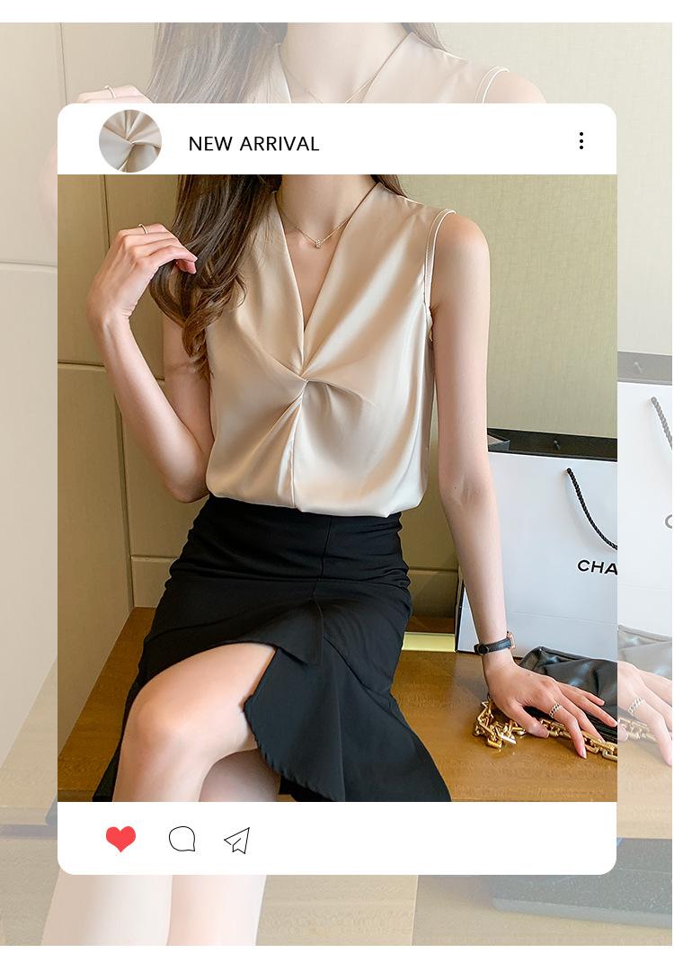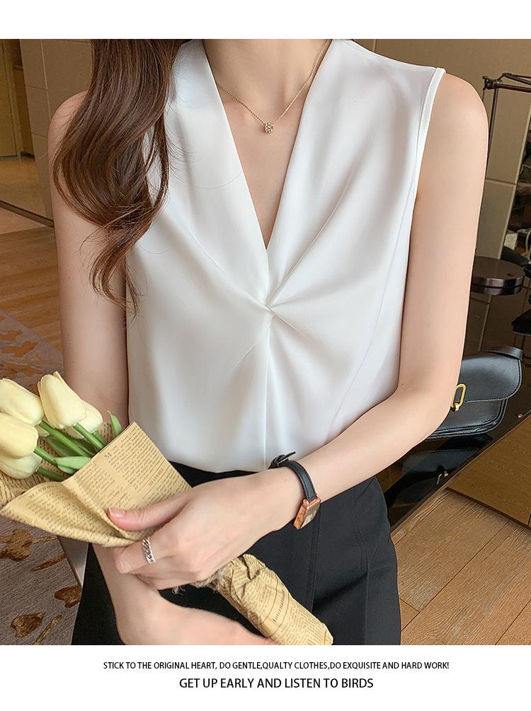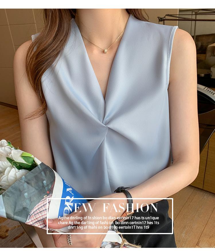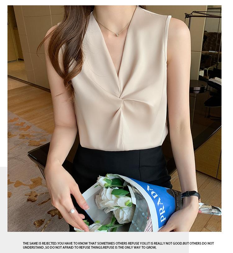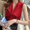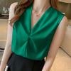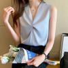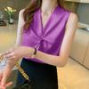 Top de Satén sin Mangas para Mujer Verano Nuevo Estilo Cruzado Cuello en V Suelto, Elegante y Ajustado Estilo Coreano Camisa de Gasa