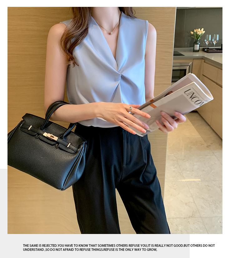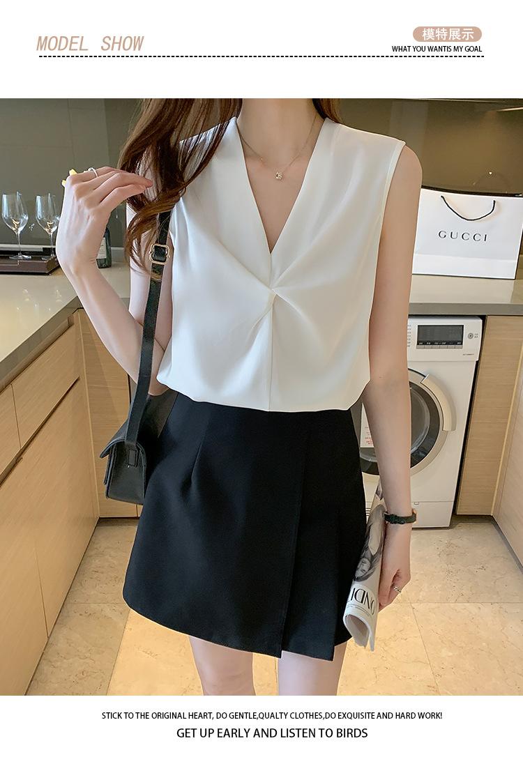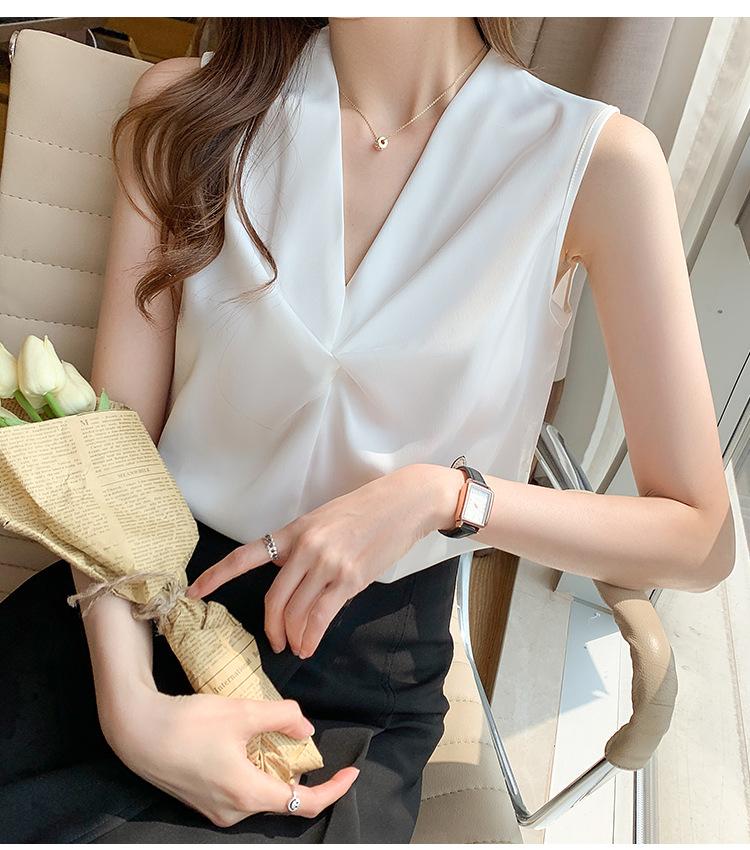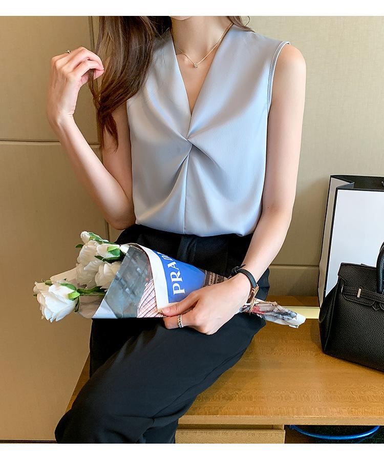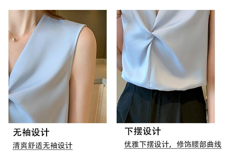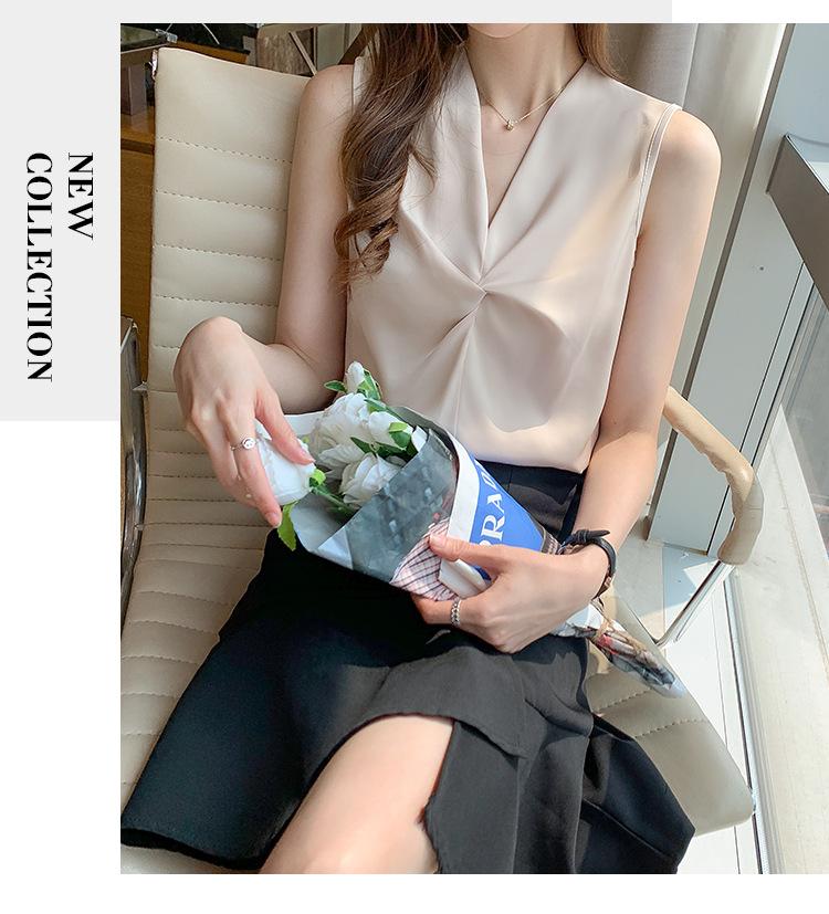 Top de Satén sin Mangas para Mujer Verano Nuevo Estilo Cruzado Cuello en V Suelto, Elegante y Ajustado Estilo Coreano Camisa de Gasa