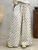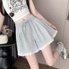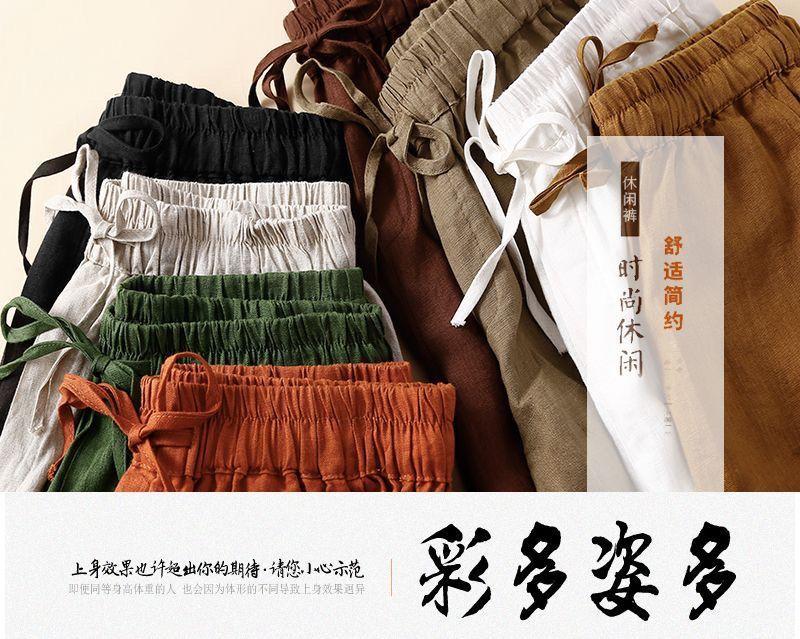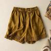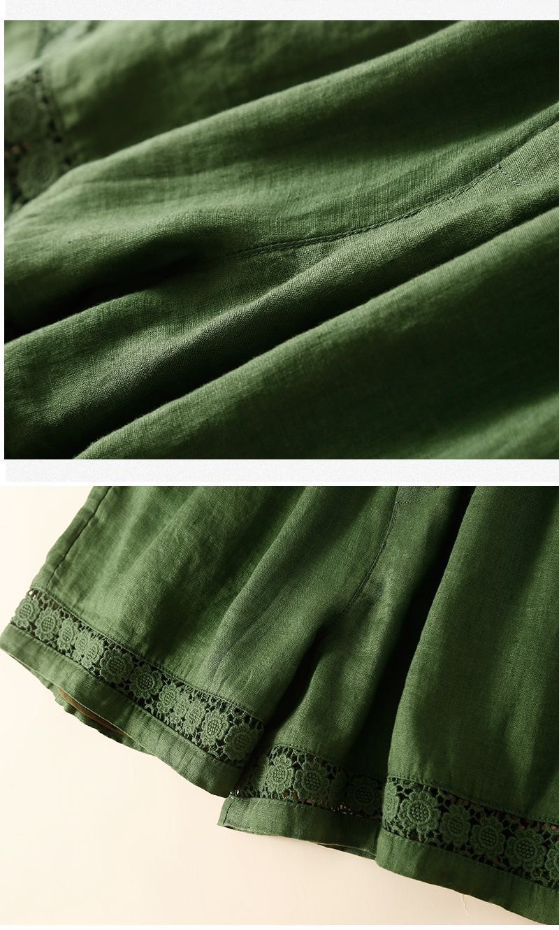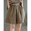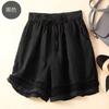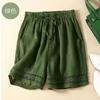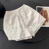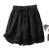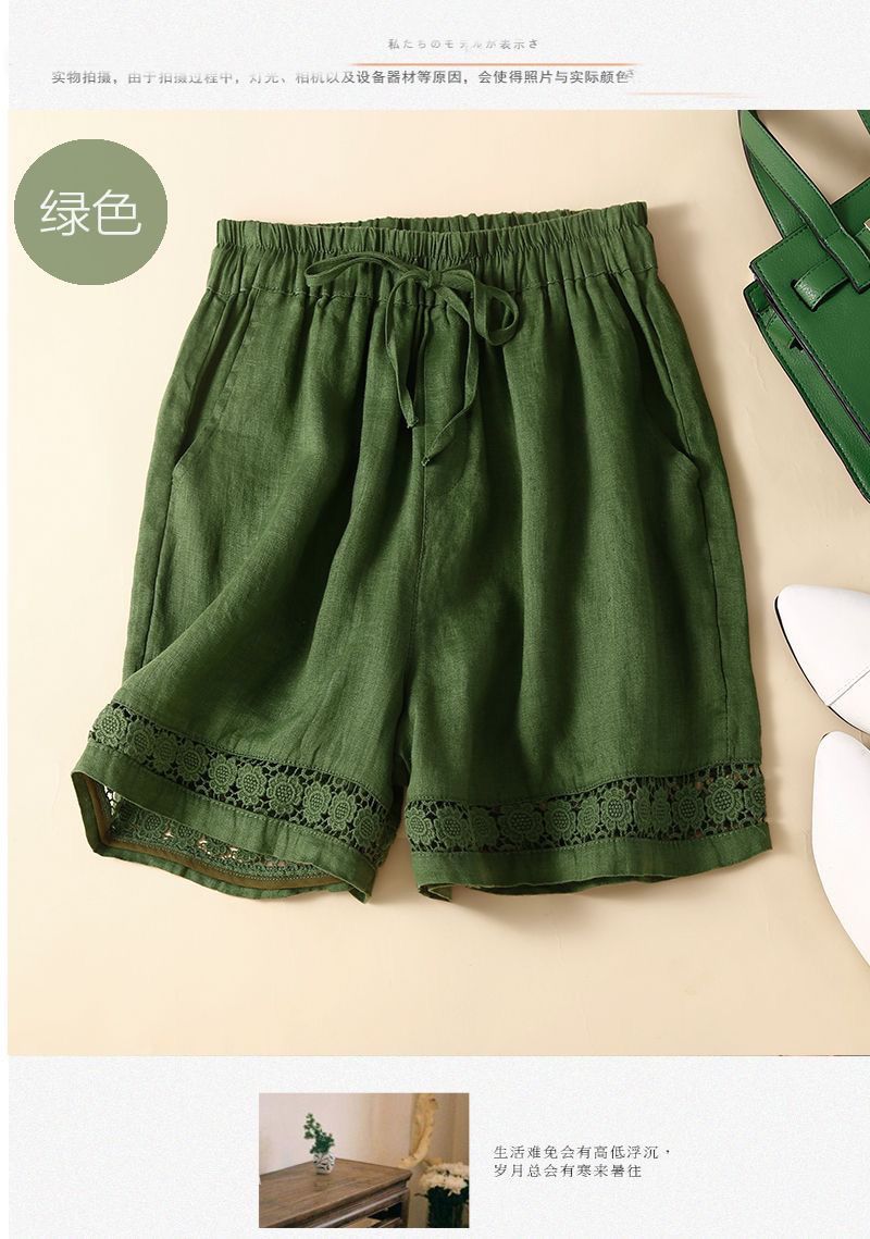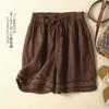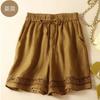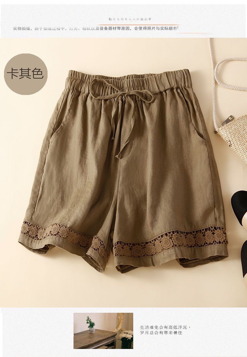 Shorts de Verano de Algodón y Lino para Mujer Retro Encaje Calado Cintura Alta Sueltos Pierna Ancha Cintura Elástica con Lazo Tendencia Casual