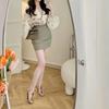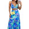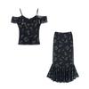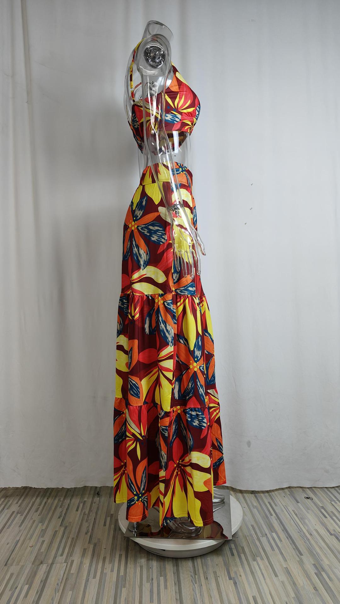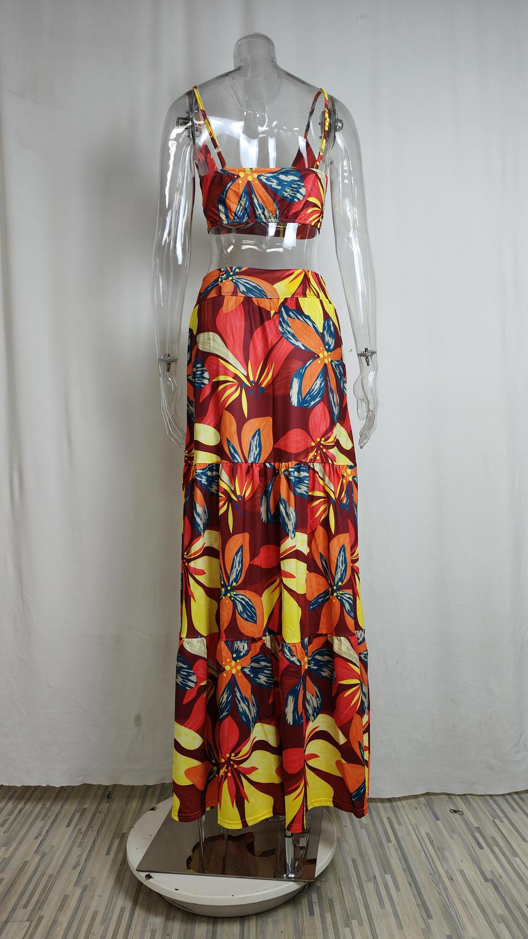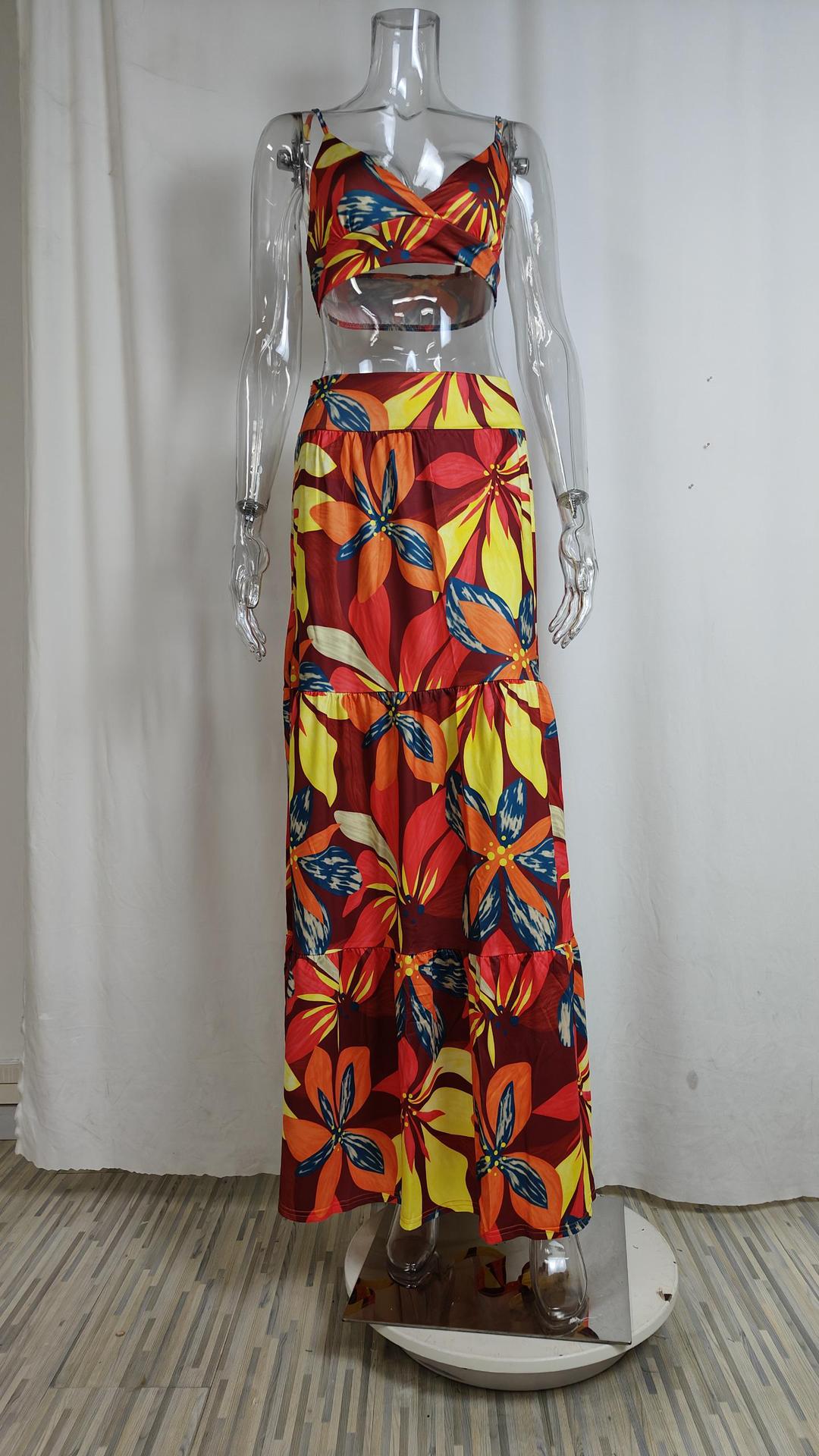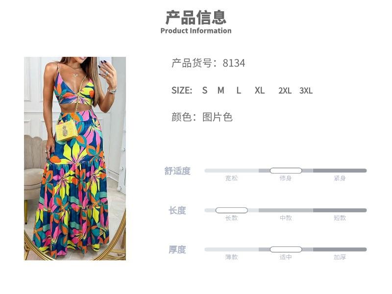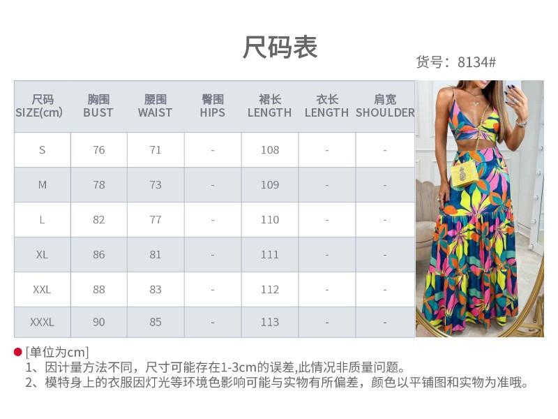 Traje de Falda Larga Acampanada de Media Cuerpo con Tirantes y Cuello en V Estampado para Mujer de Moda Europea y Americana 2025 Temperamento Elegante Commuter 661