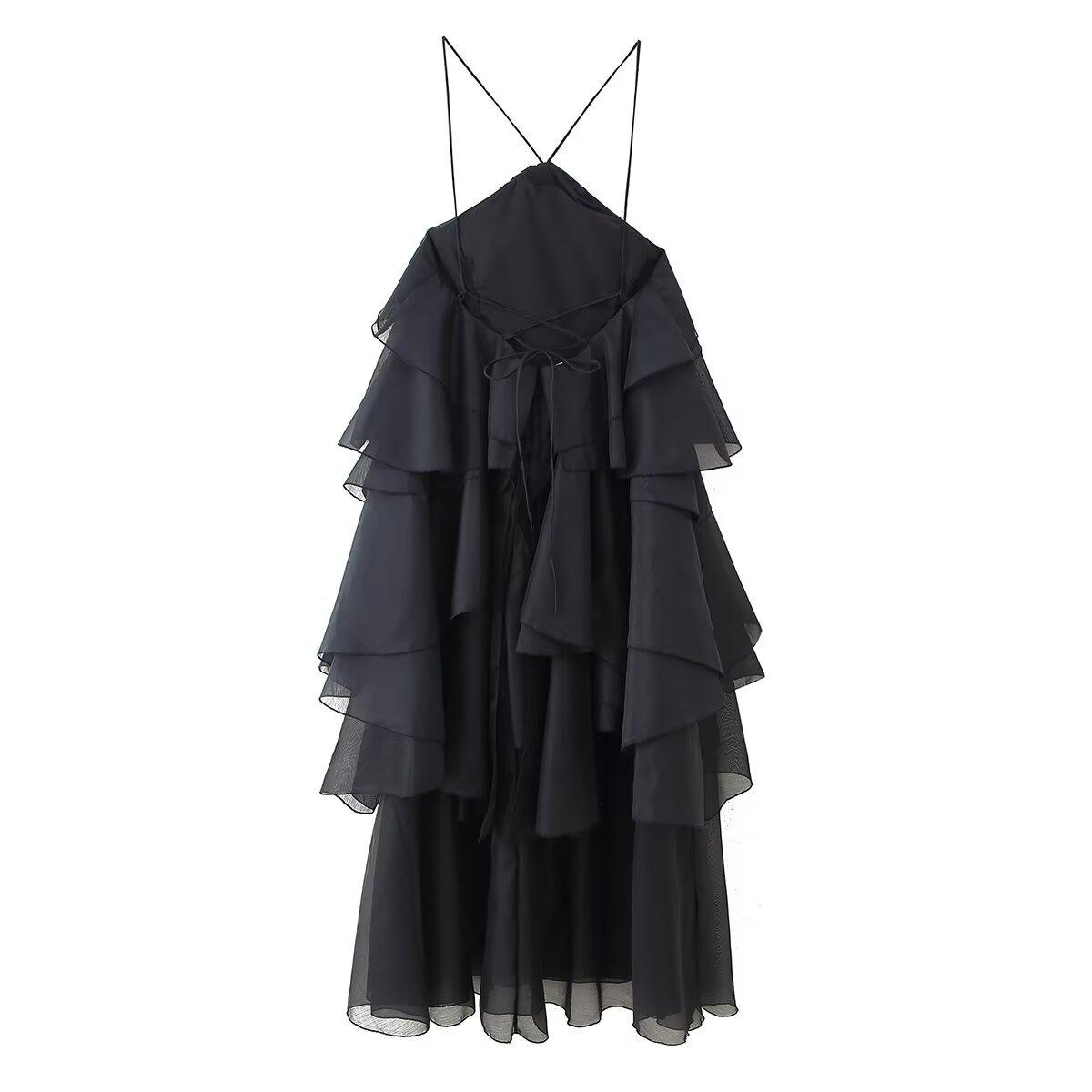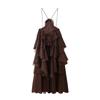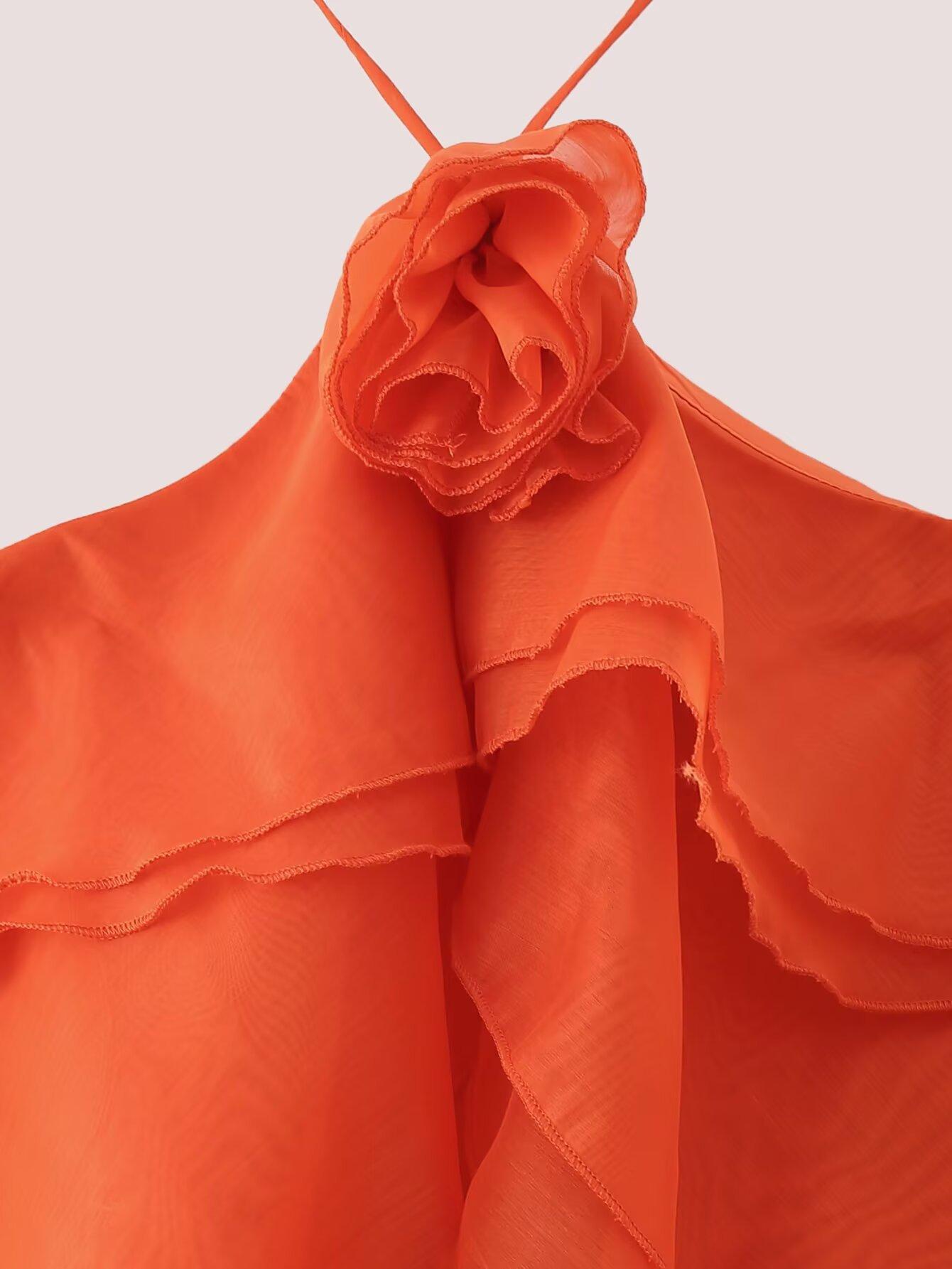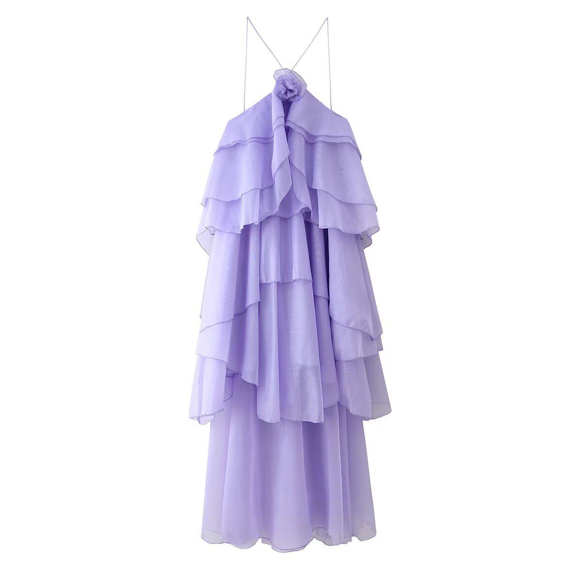Ropa de Verano para Mujer 2025 Nuevo Estilo Europeo y Americano Moda Sencillo Casual Vestido Decorativo en Capas de Flores Estéreo