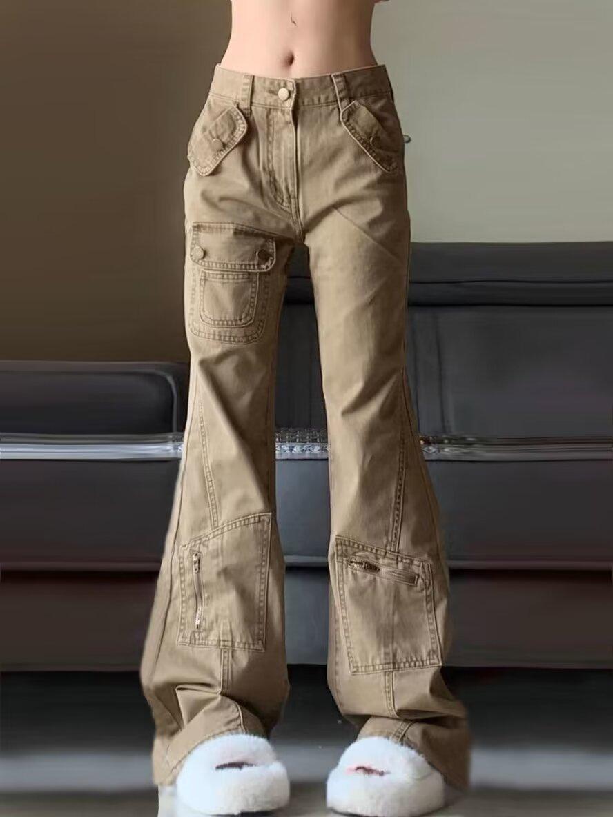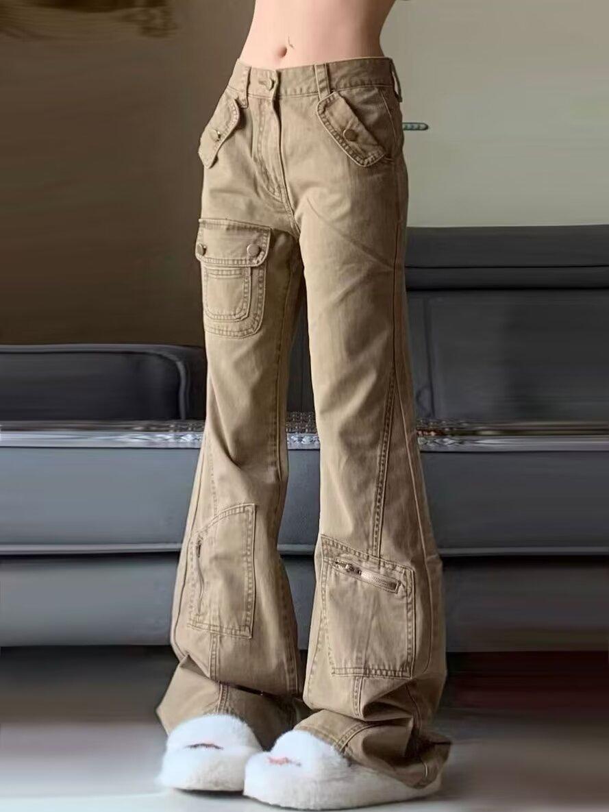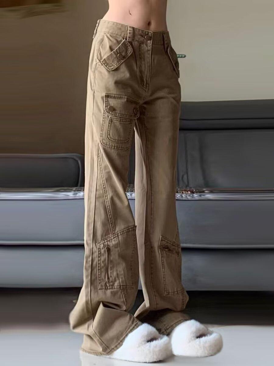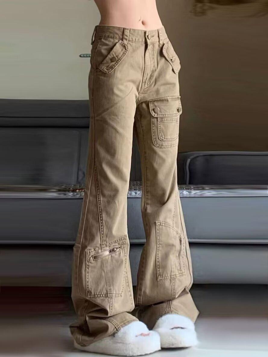 Pantalones caqui estilo americano Jeans Pantalones acampanados Pantalones casuales de cintura alta para mujer Primavera temprana Pantalones largos rectos
