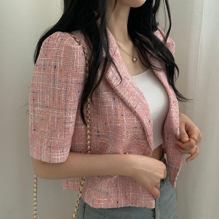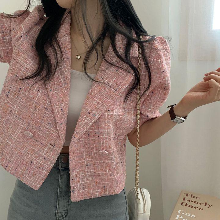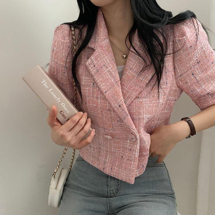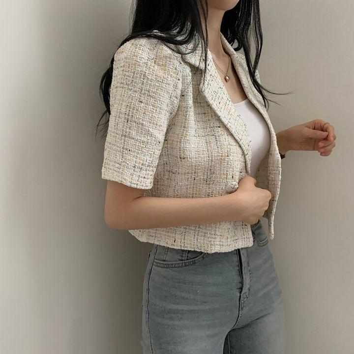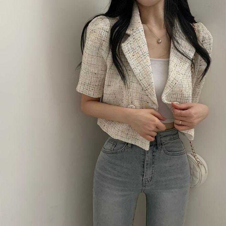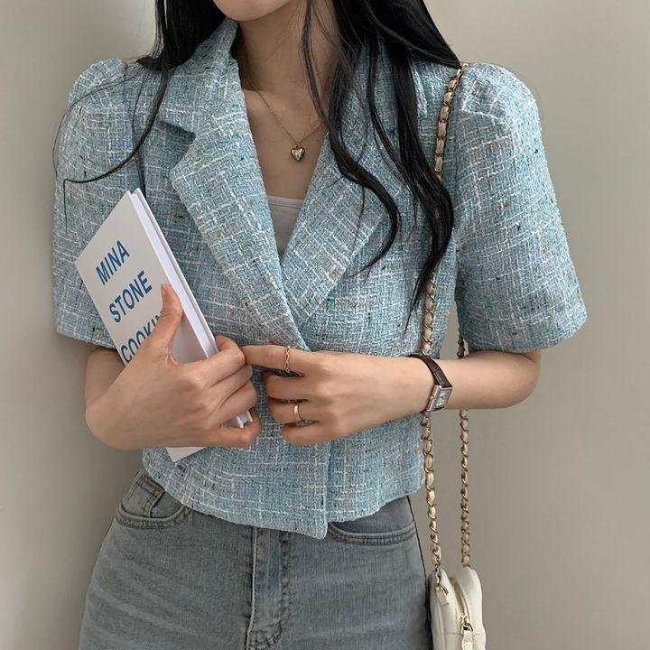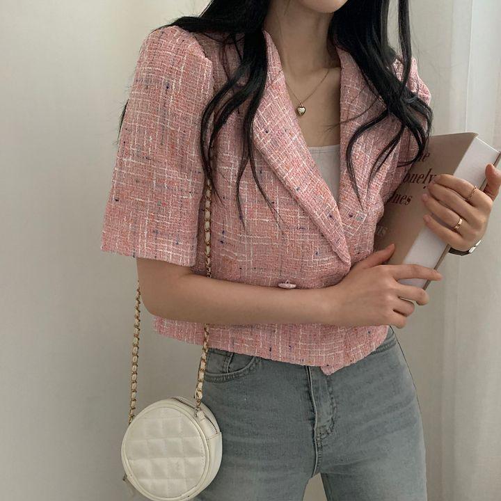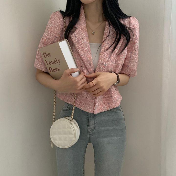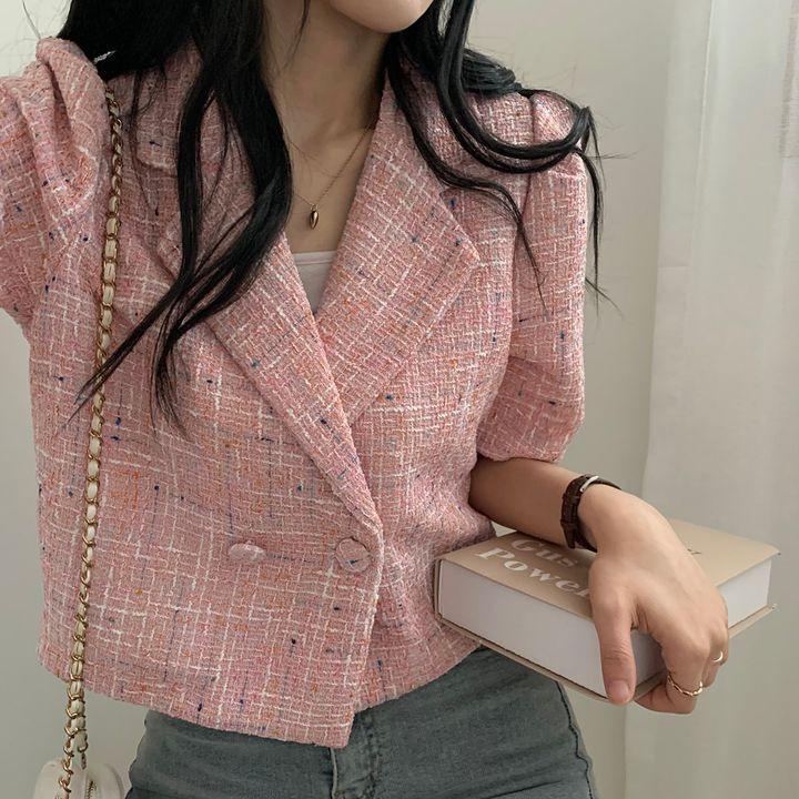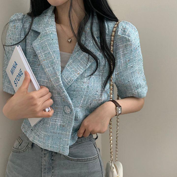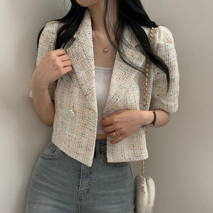 Chaqueta Corta Holgada de Lana Estilo Retro con Solapa y Dos Botones