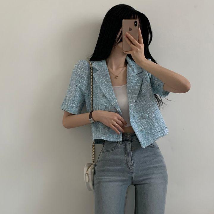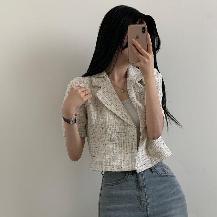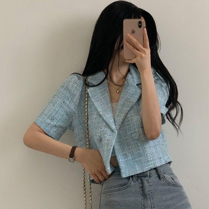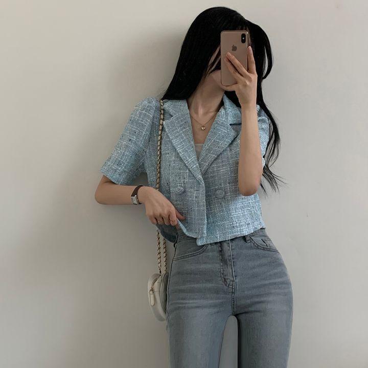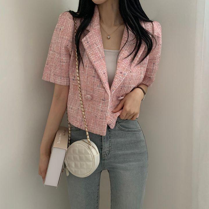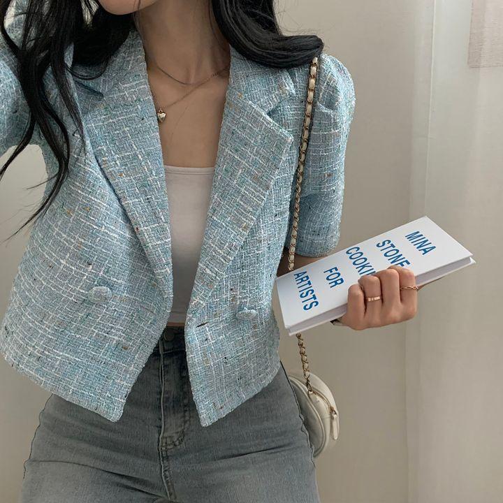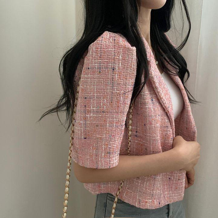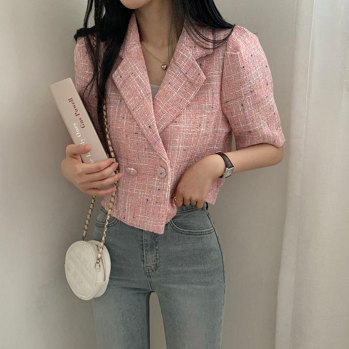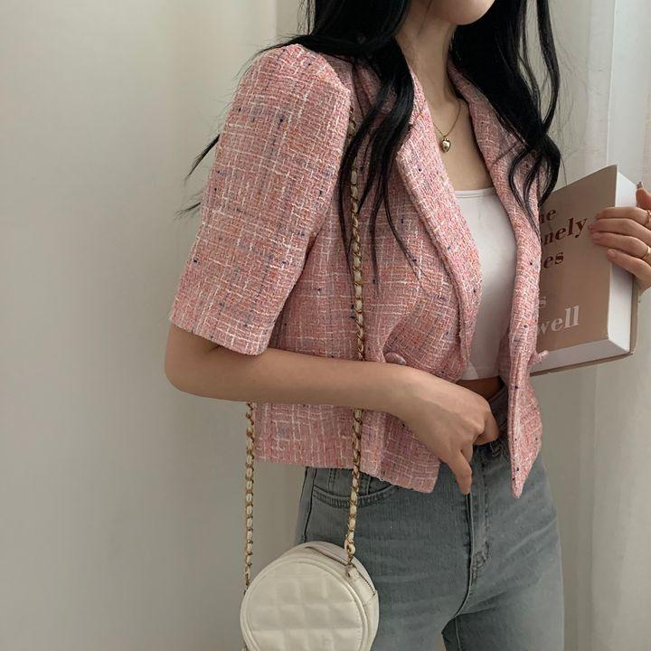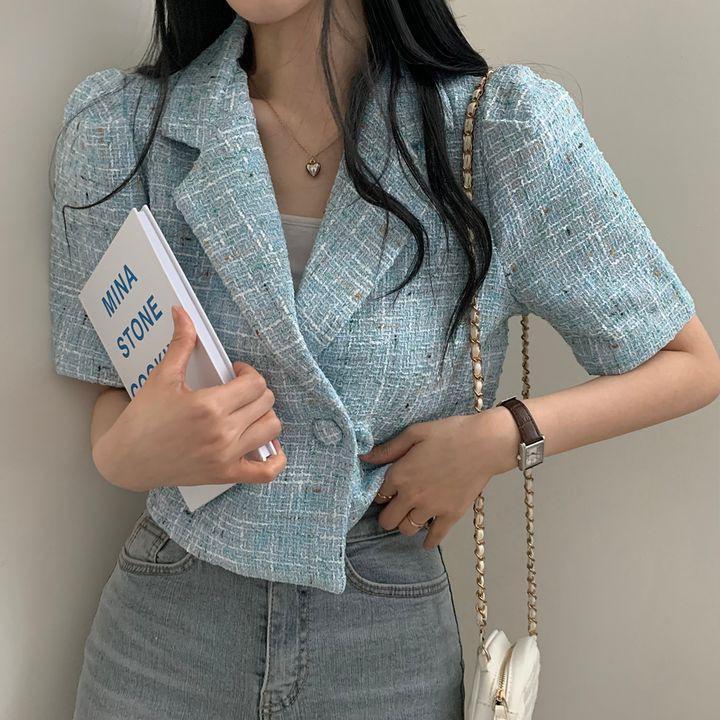 Chaqueta Corta Holgada de Lana Estilo Retro con Solapa y Dos Botones