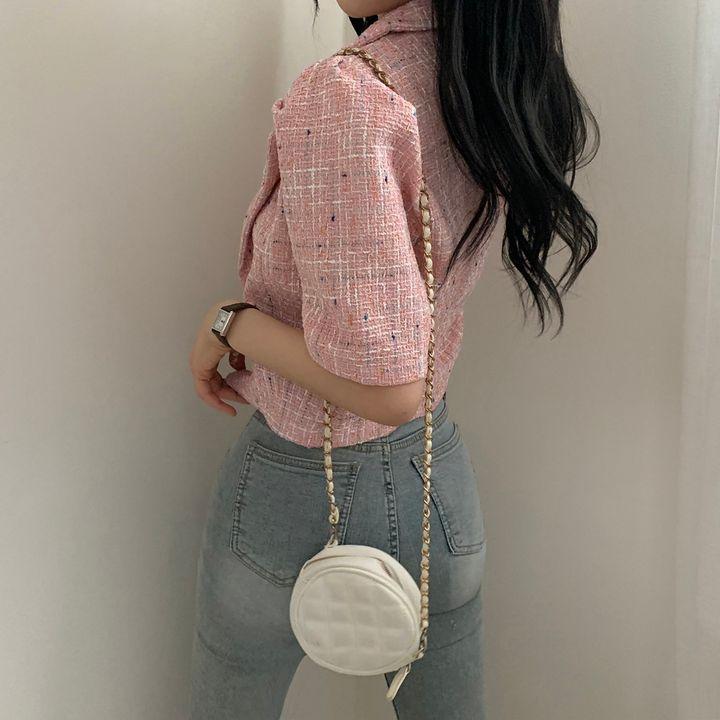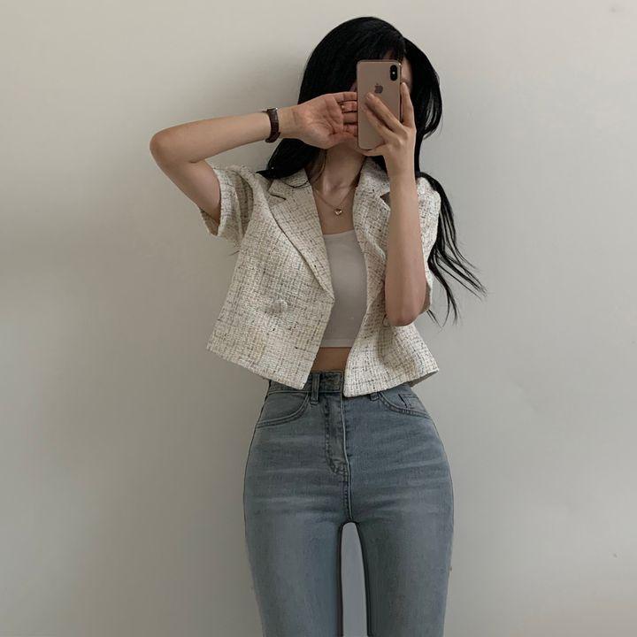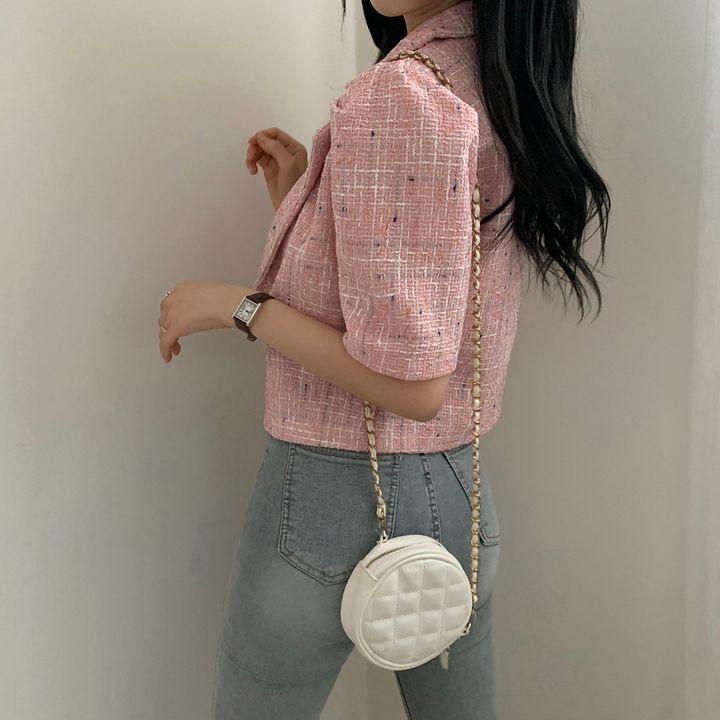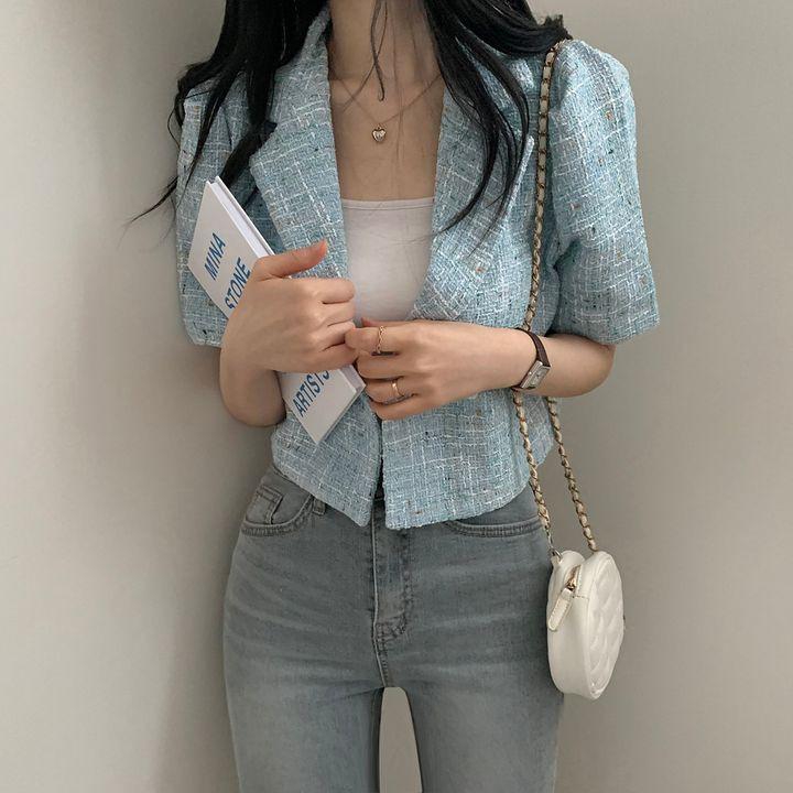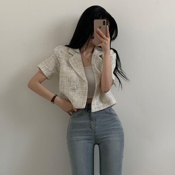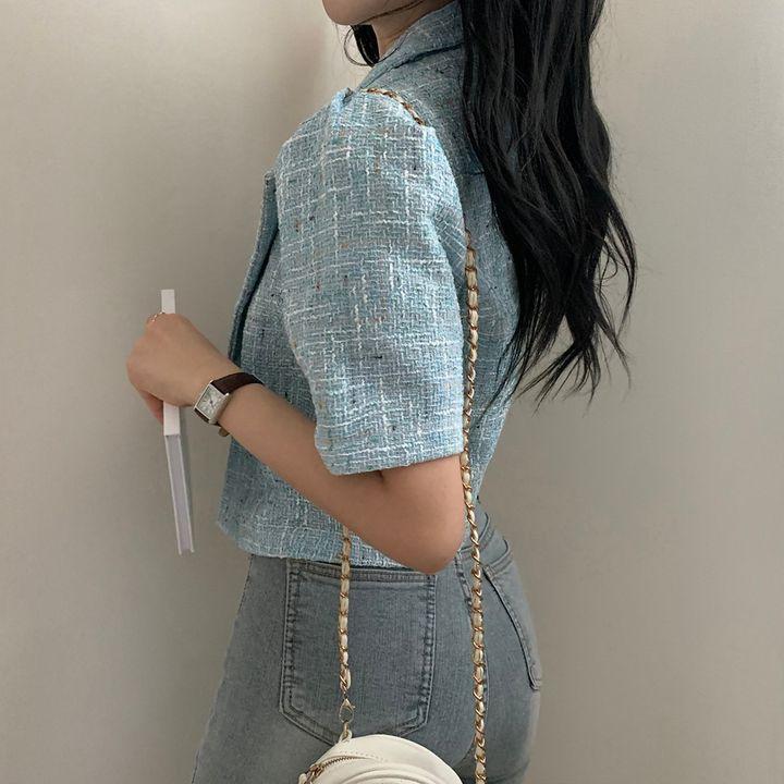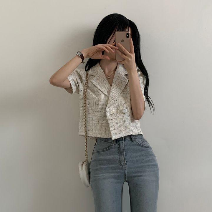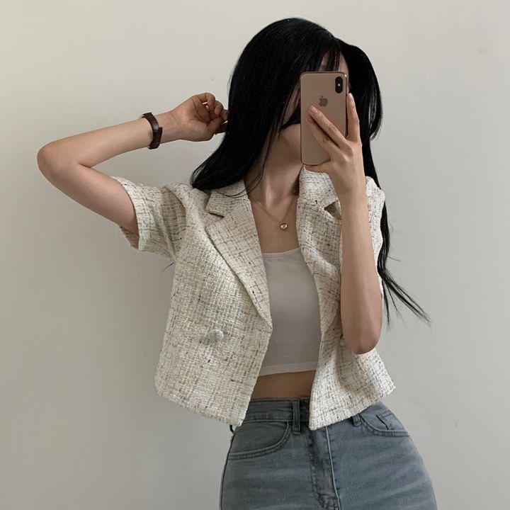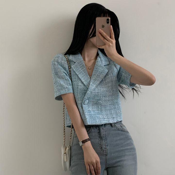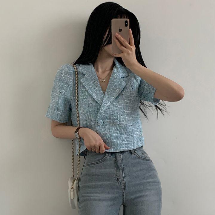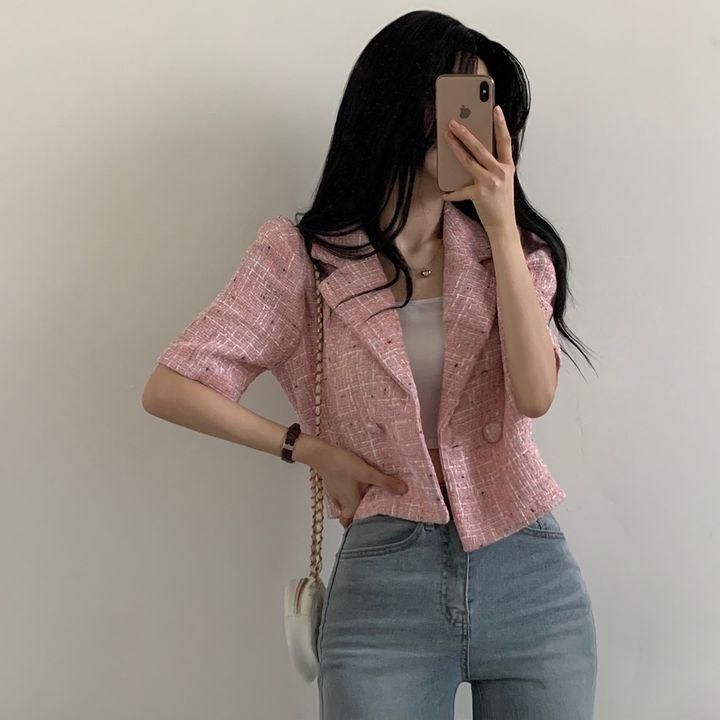 Chaqueta Corta Holgada de Lana Estilo Retro con Solapa y Dos Botones