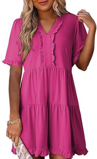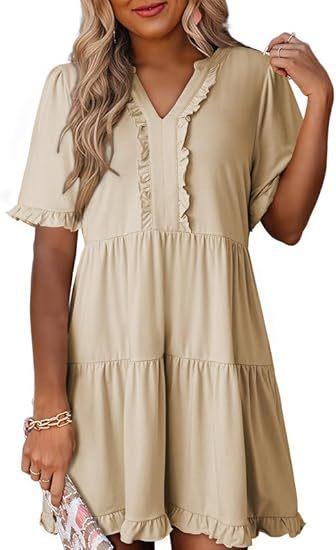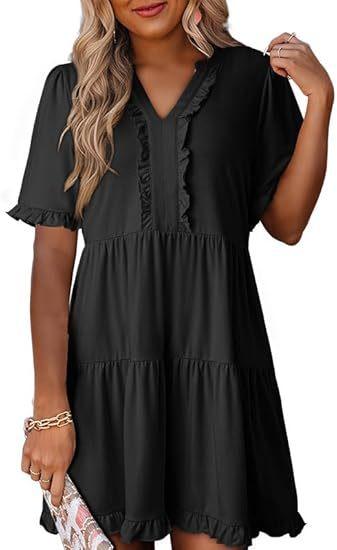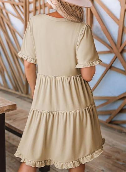 Vestido de moda para mujer de primavera y verano 2025, nuevo, transfronterizo, europeo y americano, de manga corta con volantes, cuello en V de cuatro lados