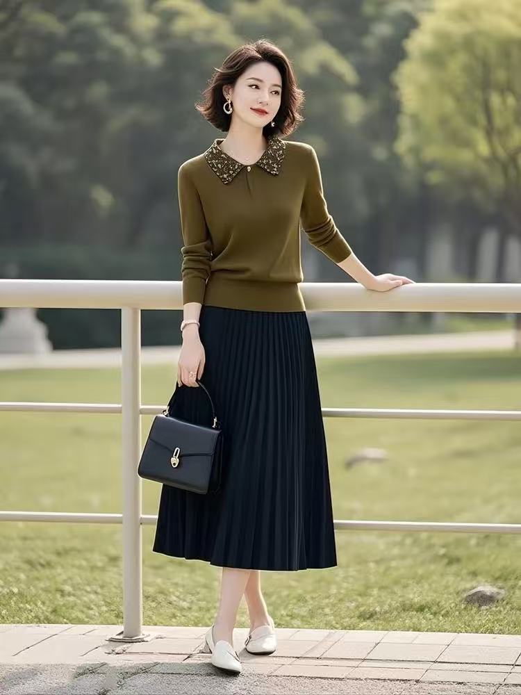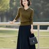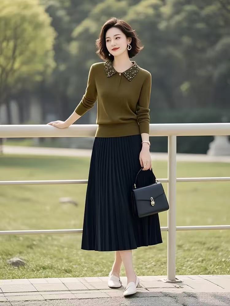 Temperamento de estilo perezoso hermoso suéter pequeño verde oliva falda 2025 nuevo traje de mujer