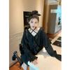 Diseño de cuello en V estilo francés pollae falda pequeña negra con volantes vestido de primavera nuevo dulce y picante cintura manga larga para mujer