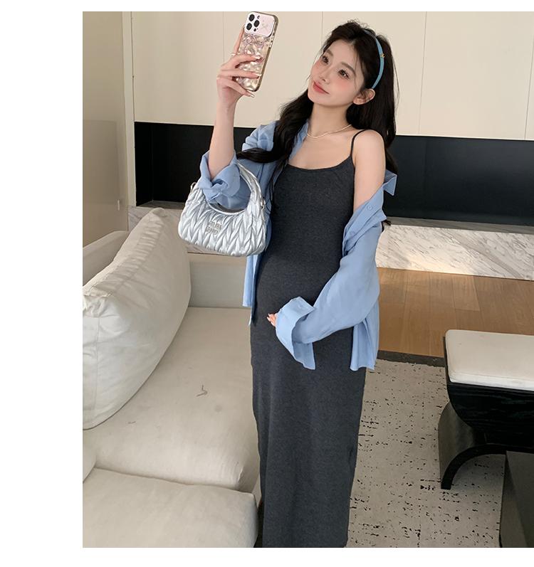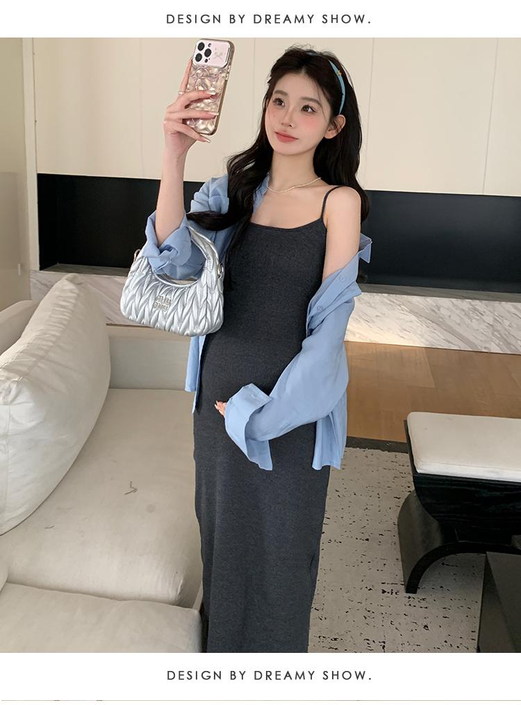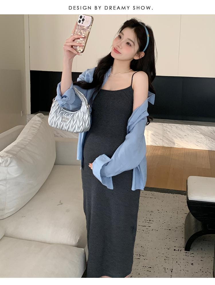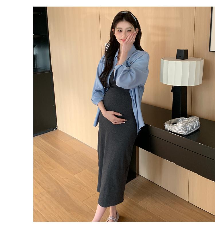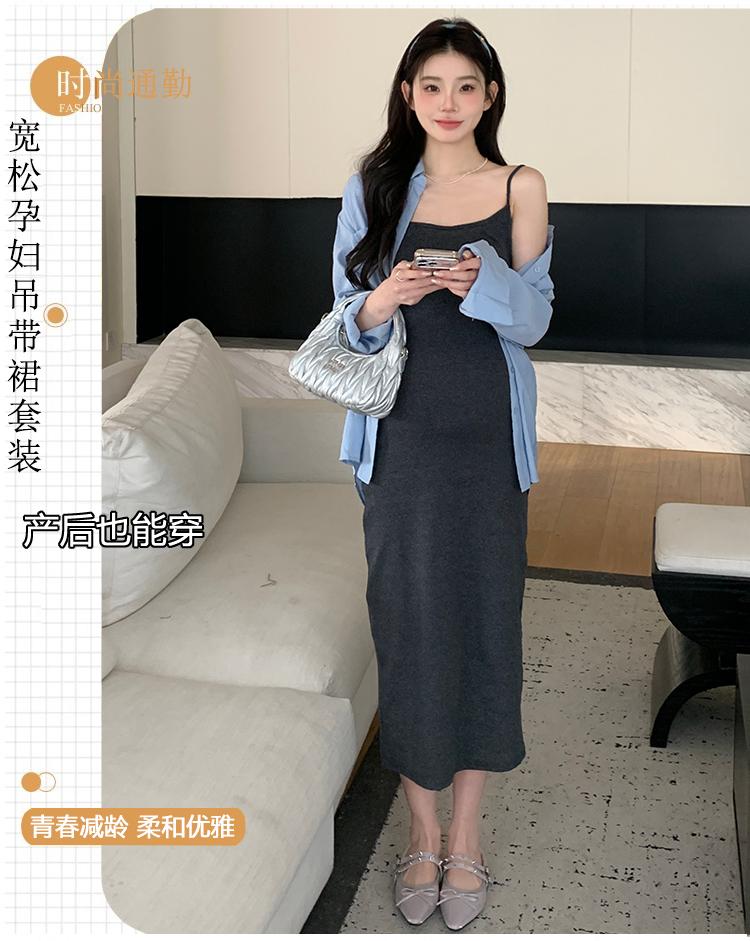 Ropa de Maternidad Traje de Verano Vestido 2025 Nuevo Verano Ropa de Madre Embarazada Falda de Tirantes Estilo Verano a la Moda