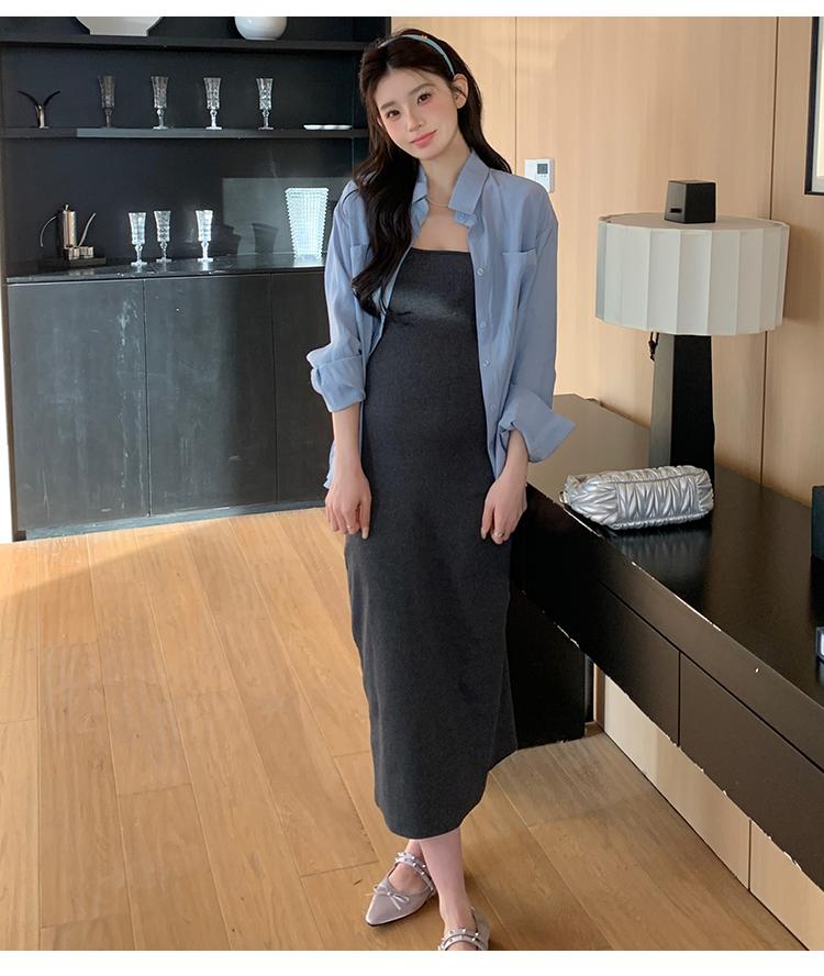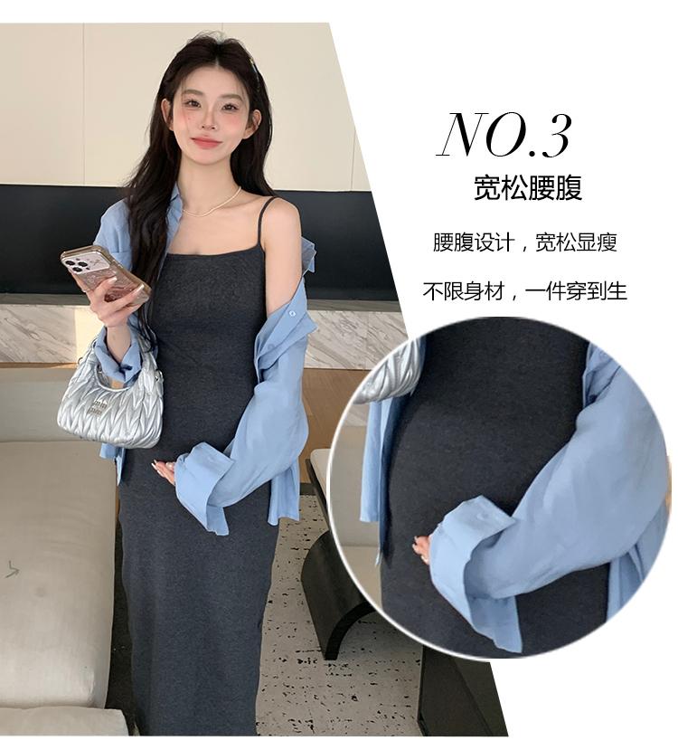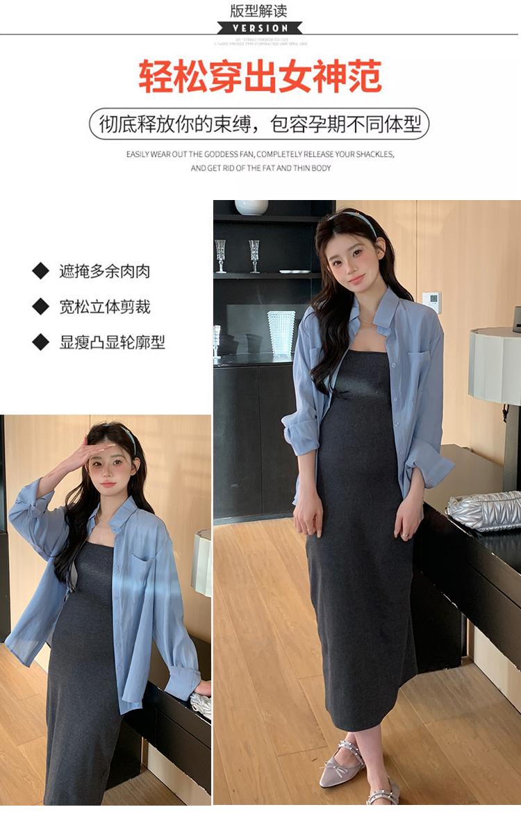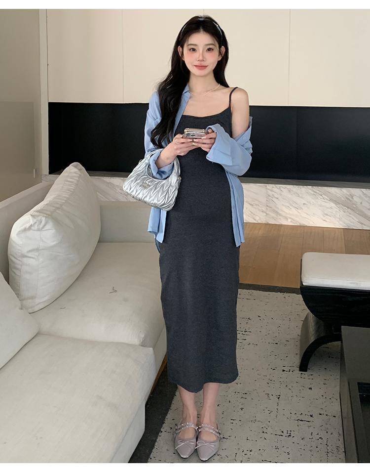 Ropa de Maternidad Traje de Verano Vestido 2025 Nuevo Verano Ropa de Madre Embarazada Falda de Tirantes Estilo Verano a la Moda
