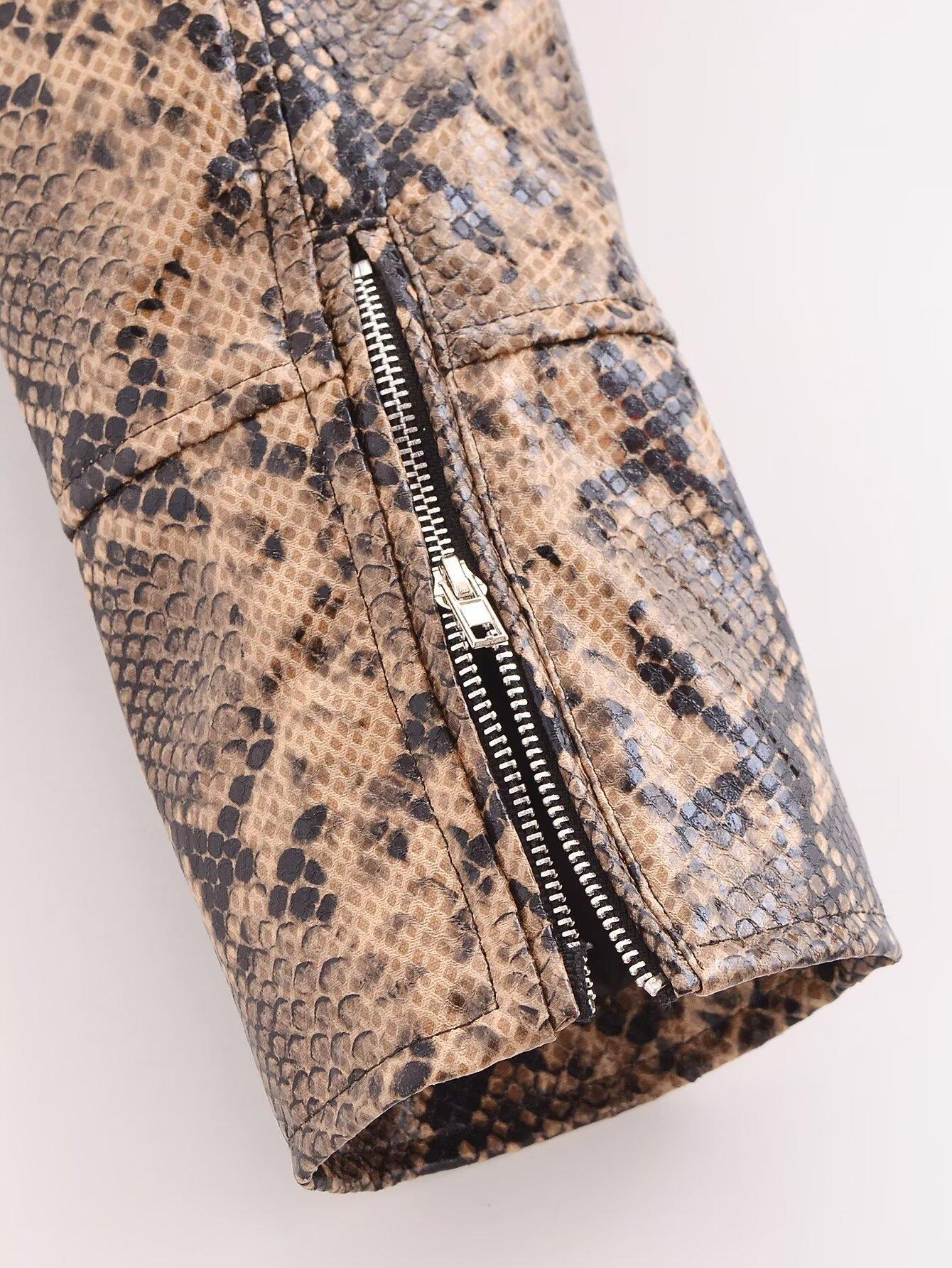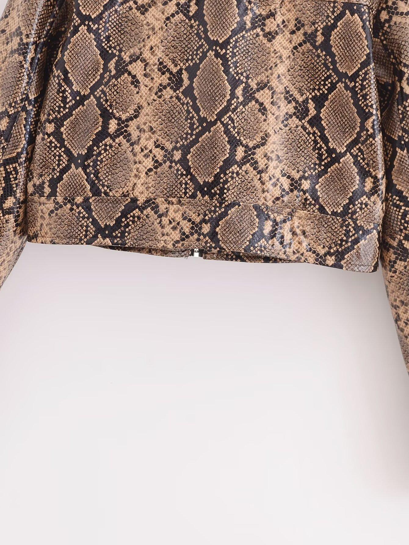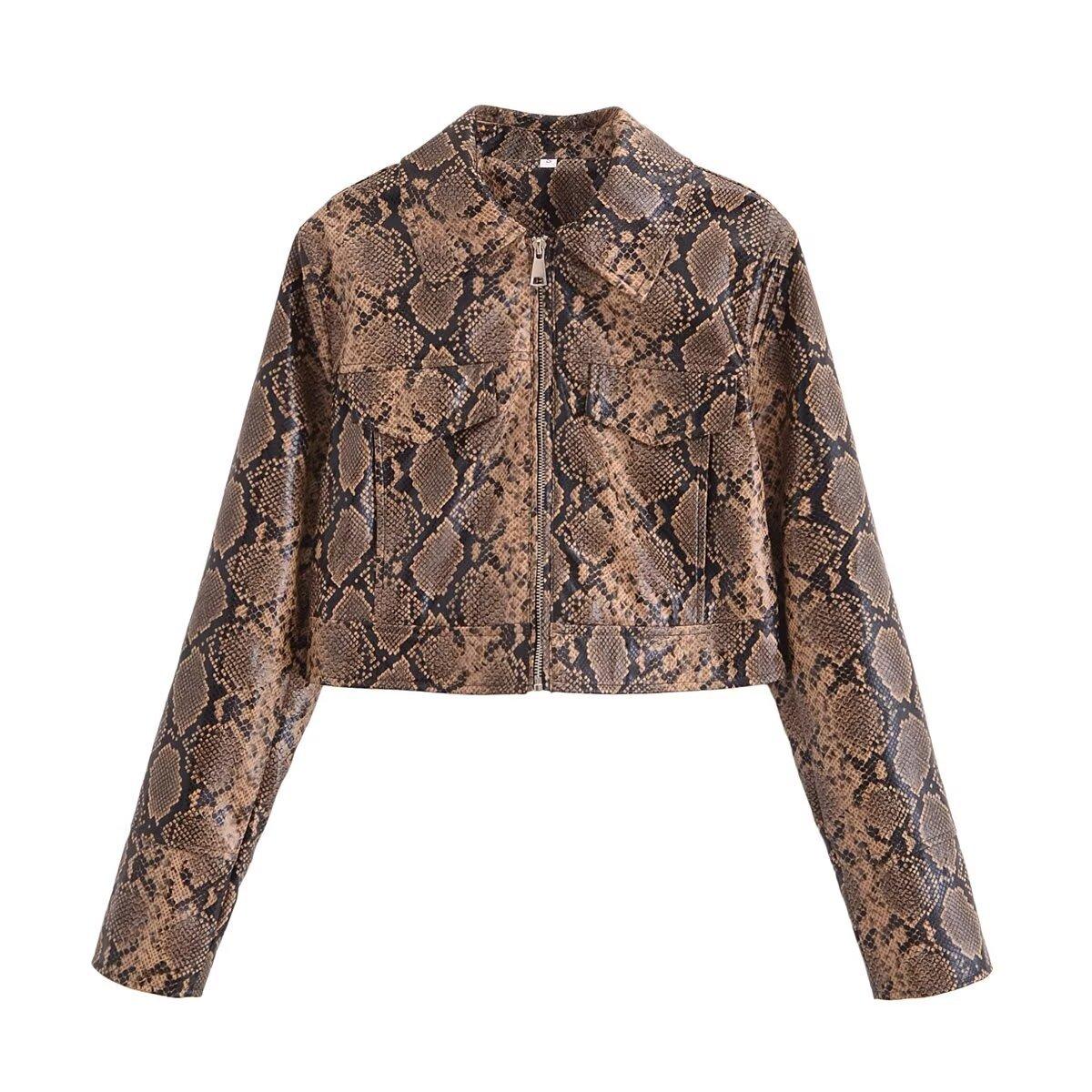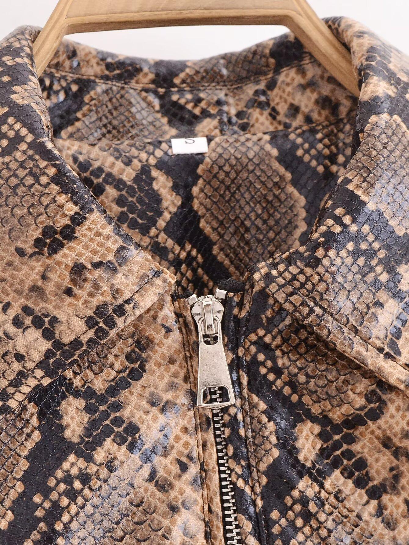 Venta al por Mayor Transfronteriza Amazon Estilo Europeo y Americano para Mujer Nueva Moda Francesa Patrón de Serpiente Chaqueta de Imitación Cuero