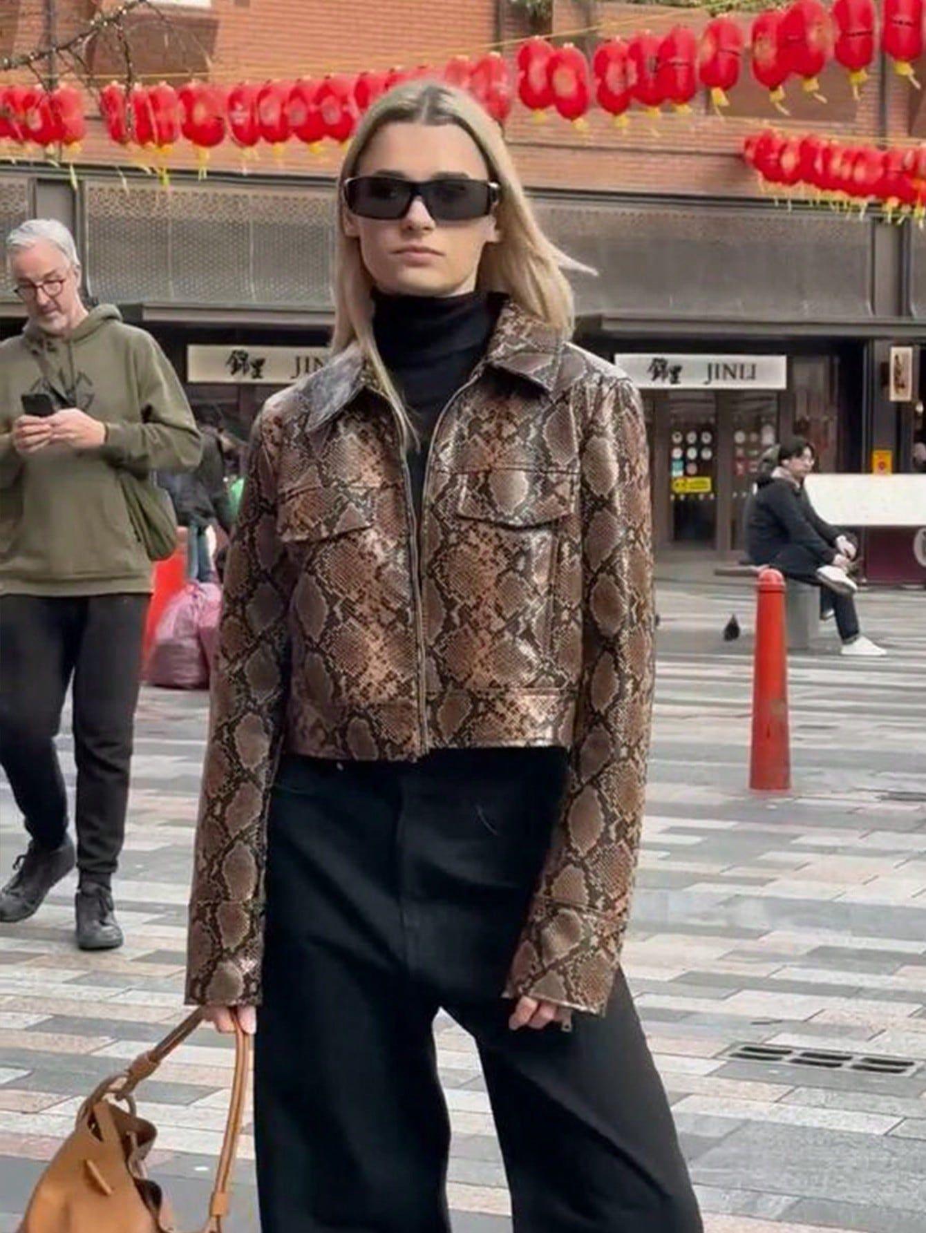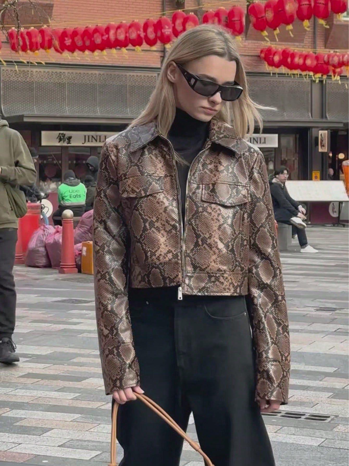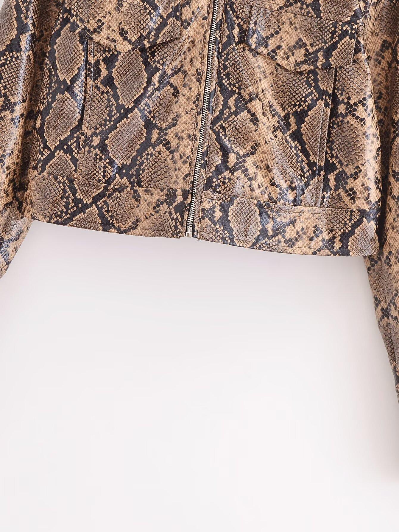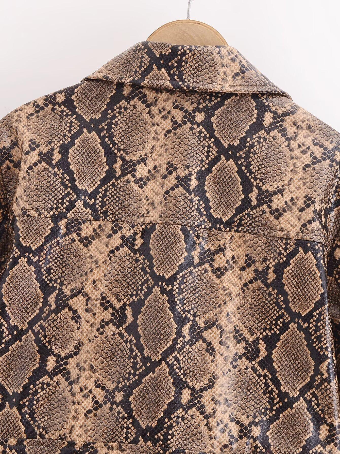 Venta al por Mayor Transfronteriza Amazon Estilo Europeo y Americano para Mujer Nueva Moda Francesa Patrón de Serpiente Chaqueta de Imitación Cuero