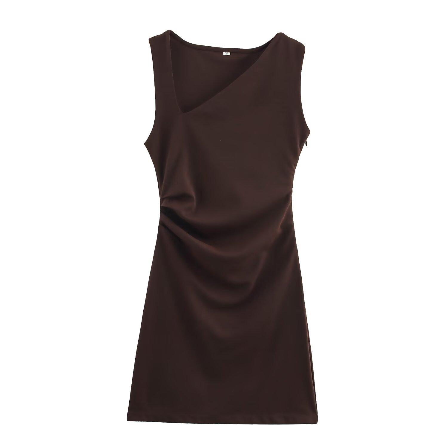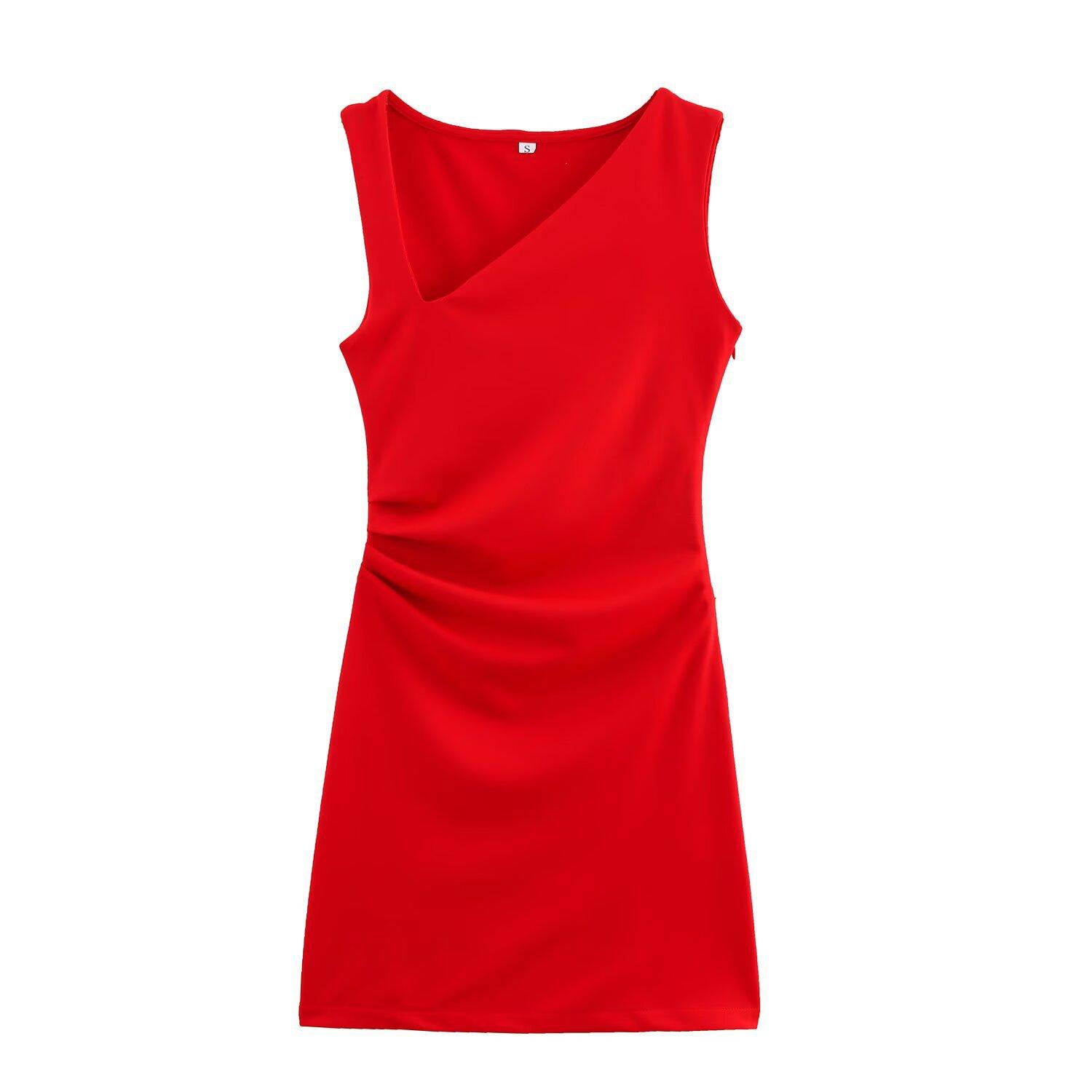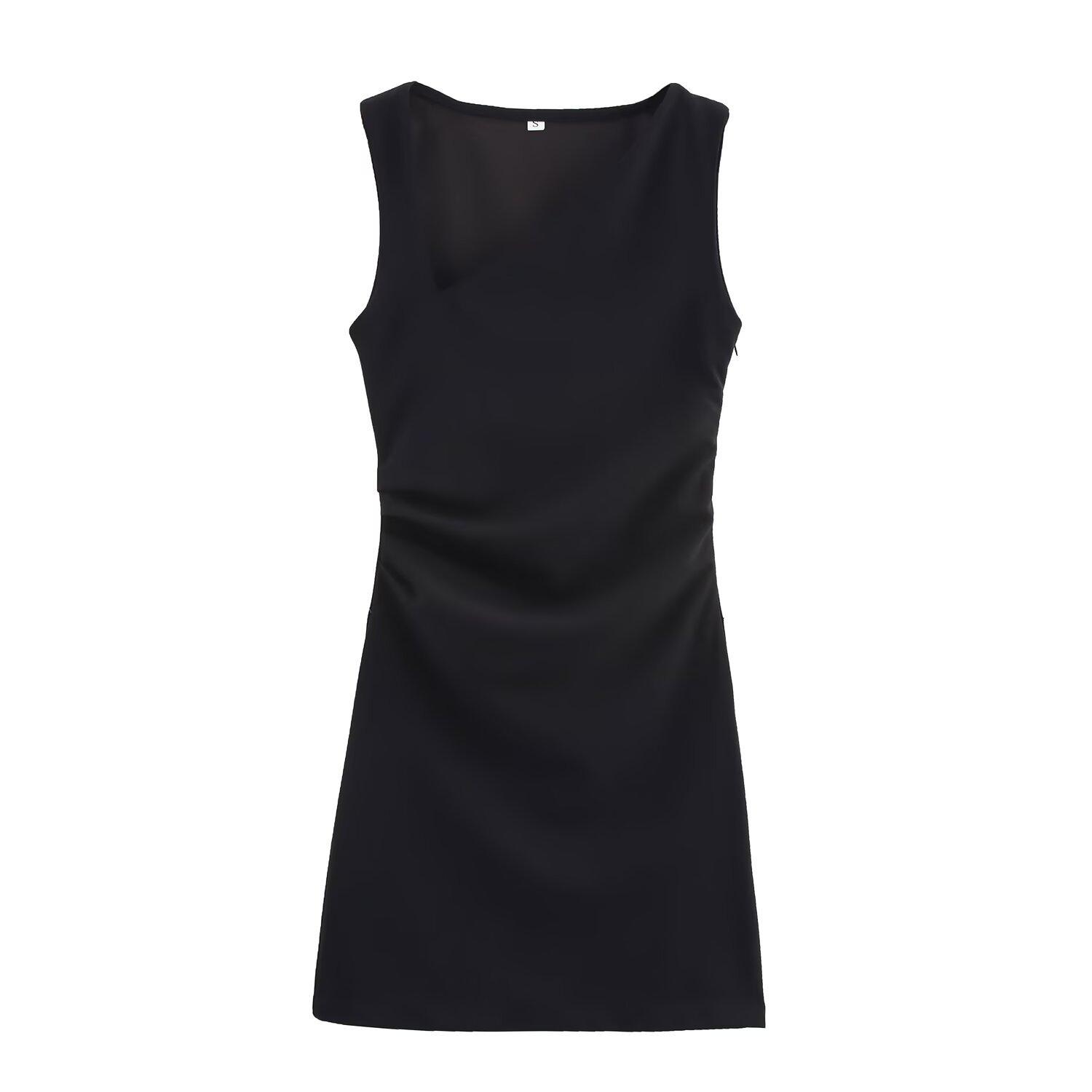 Venta al por Mayor Transfronteriza Estilo Europeo y Americano 2025 Moda Elegante Cuello Inclinado Ajustado Plisado Decorativo Vestido Corto B482292