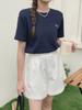 2026 Verano Cintura Alta Casual Blancos Holgados Petite Algodón Puro Ribeteados con Encaje Pantalones Cortos para Mujer Línea A Tres Cuartos Hot Pants