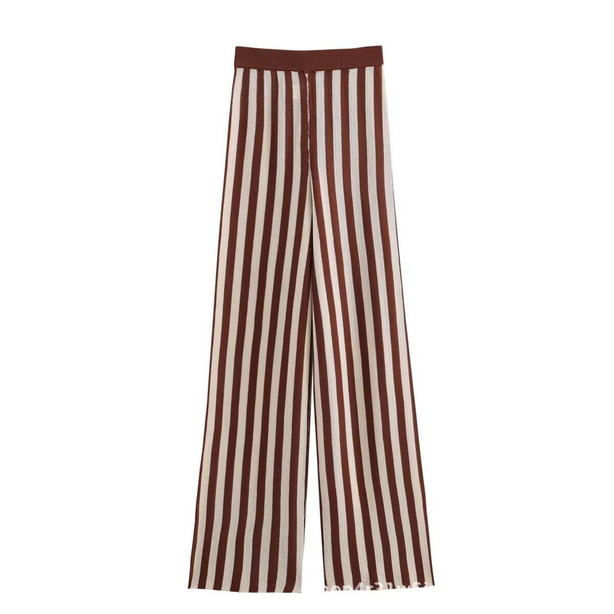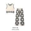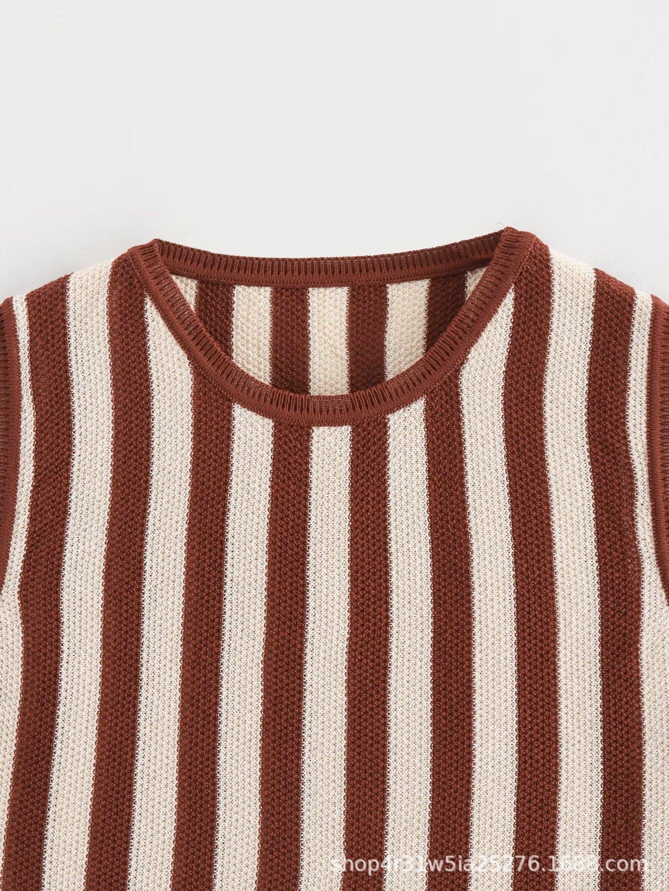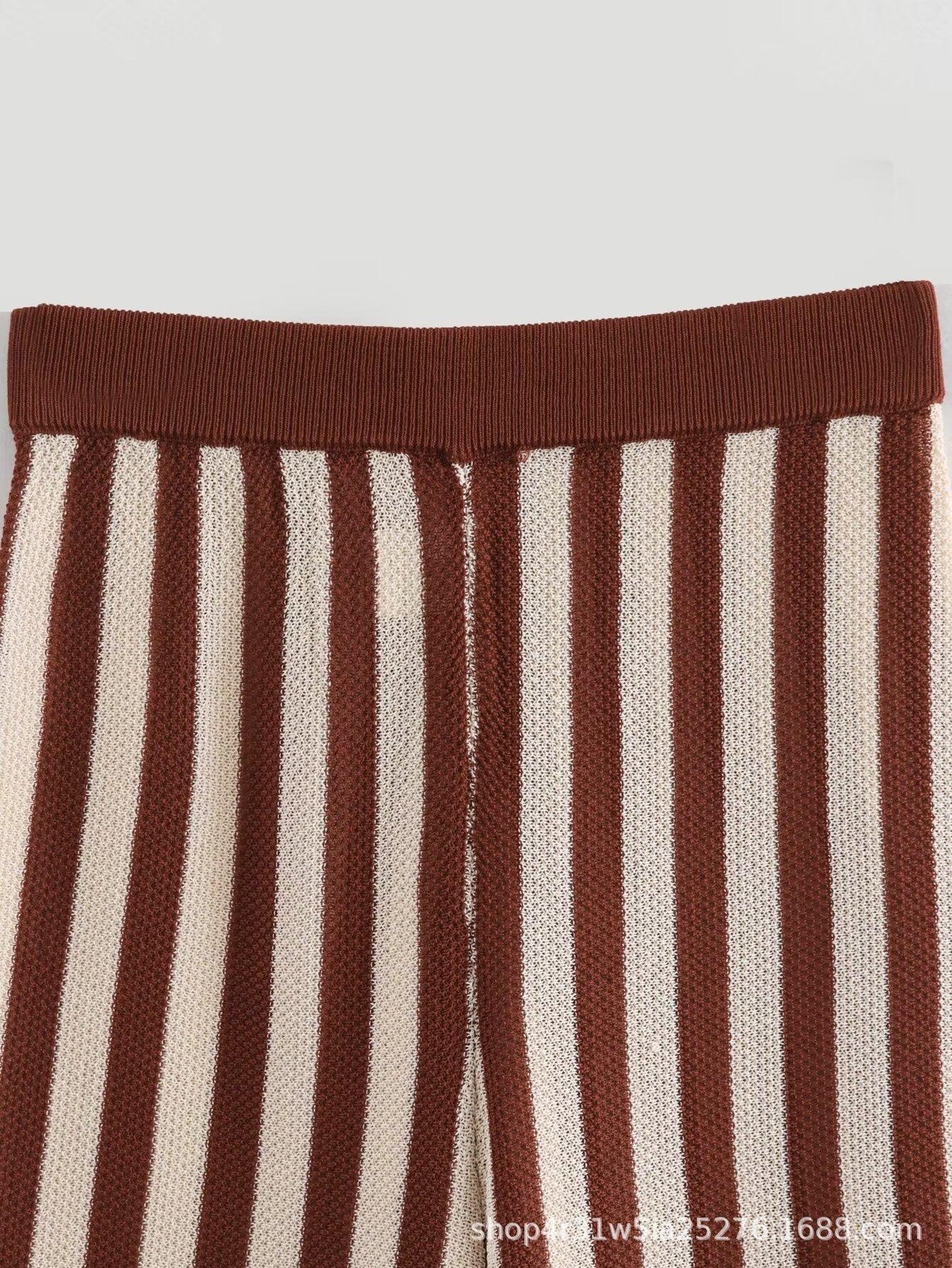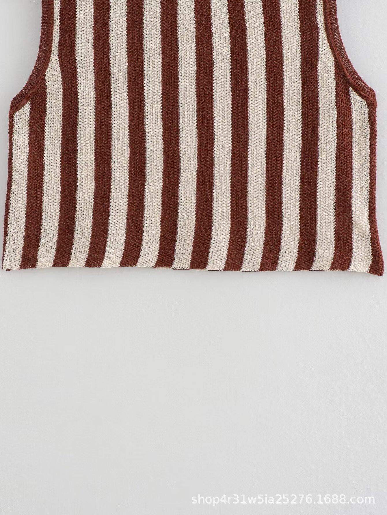 Europeo y Americano 2024 Verano Nueva Moda Cuello Redondo Sin Mangas Tejido a Rayas Tops y Pantalones Trajes Venta al por Mayor
