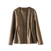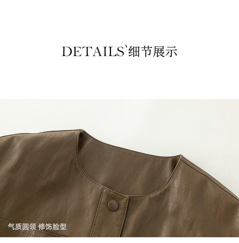 Chaqueta Corta para Mujer Xinge Retro Marrón de Cuero PU de Alta Gama Otoño 2025 Nueva Cuello Redondo Entallada Aspecto Elegante