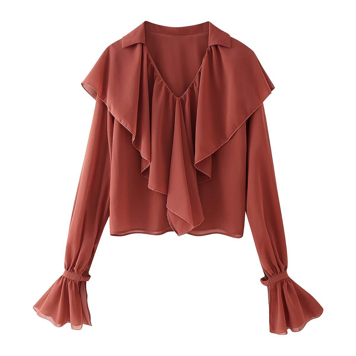 Ropa de Otoño para Mujer Nueva 2024 Estilo Europeo y Americano Moda Simple Versátil Tops de Gasa con Volantes de Manga Larga