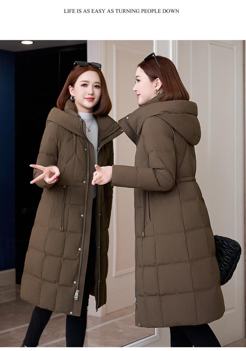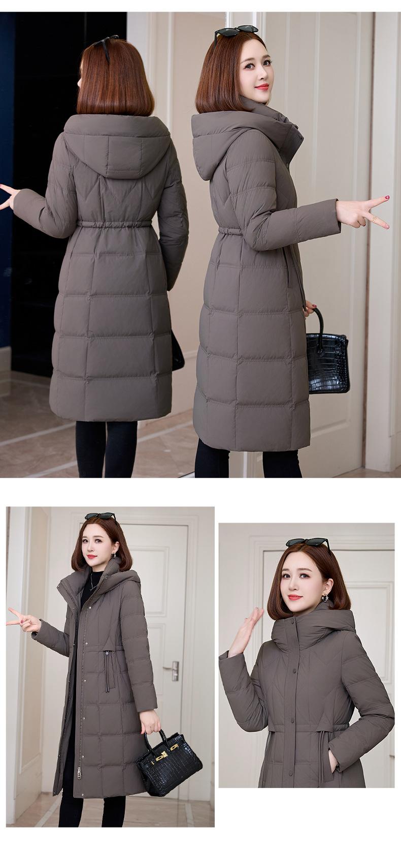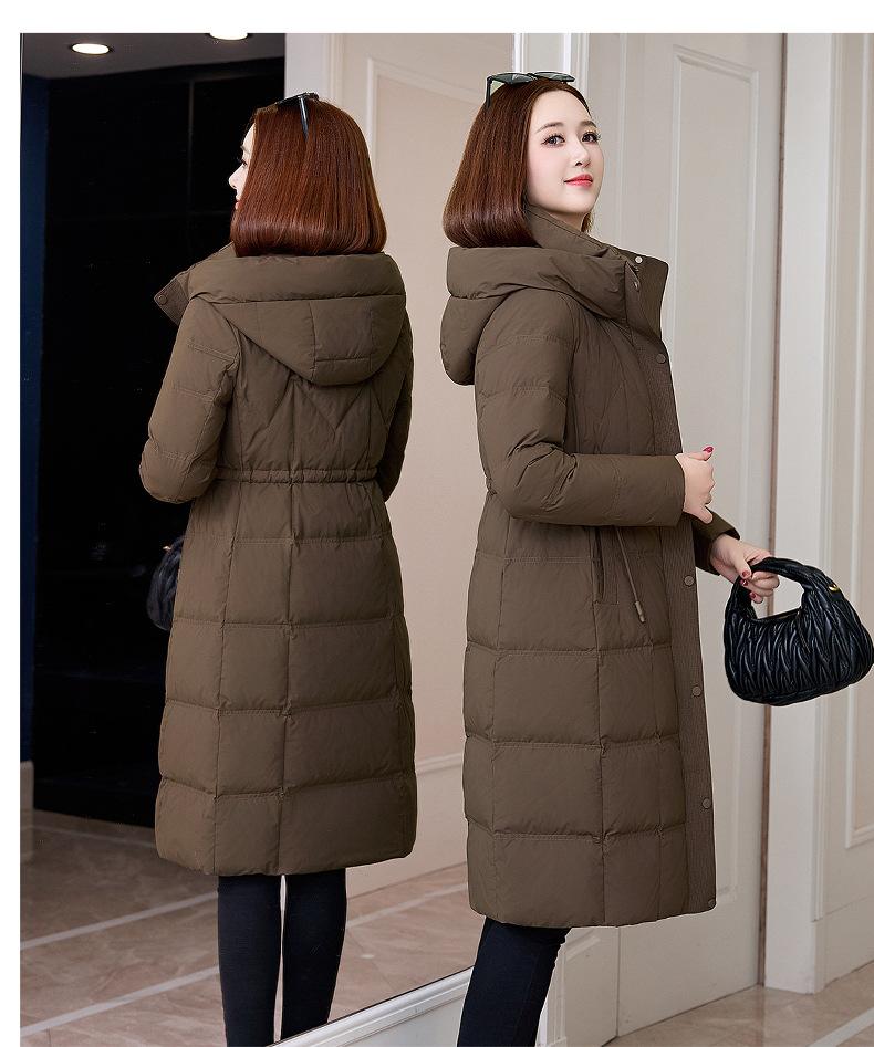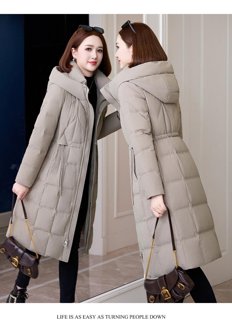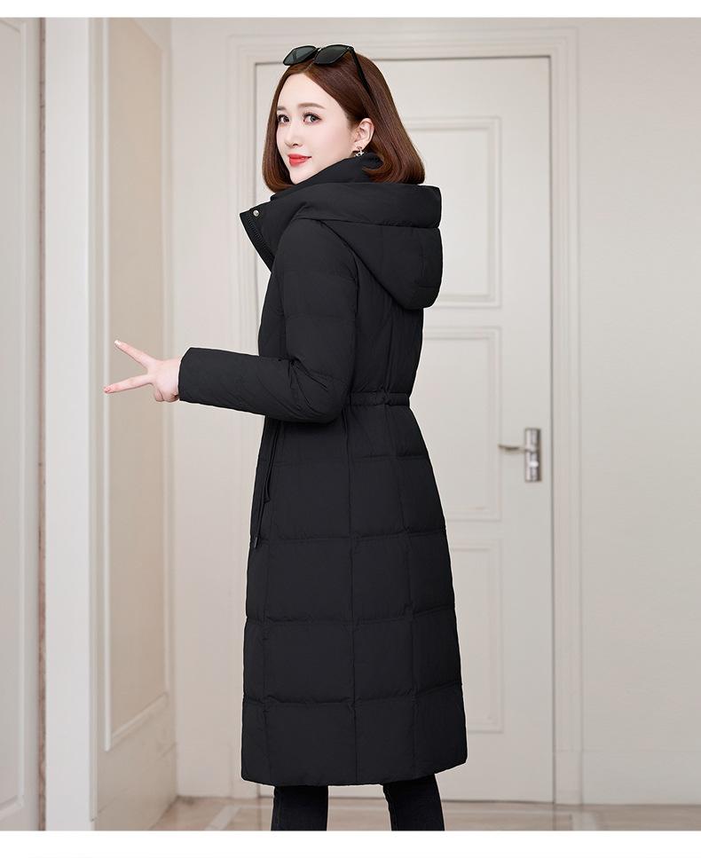 Volar en la Nieve Chaqueta Larga de Plumón para Mujer 2025 Nueva Hasta la Rodilla Cintura Chaqueta de Mamá Ropa de Invierno con Capucha para Mujeres de Mediana Edad y Mayores
