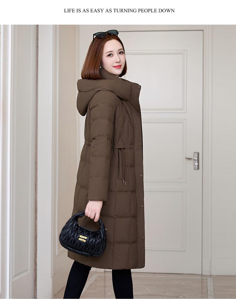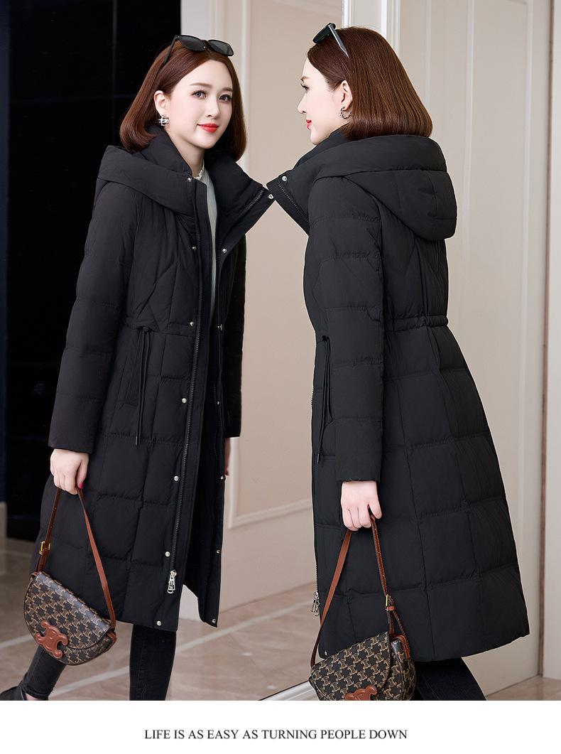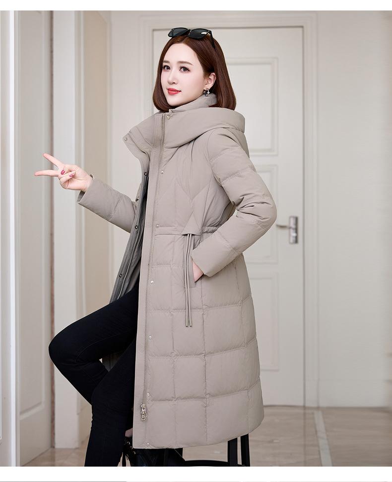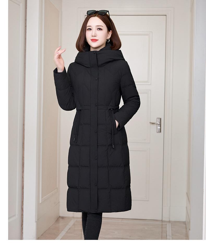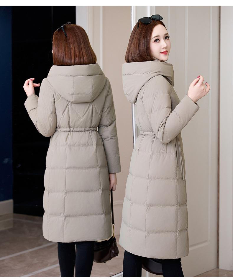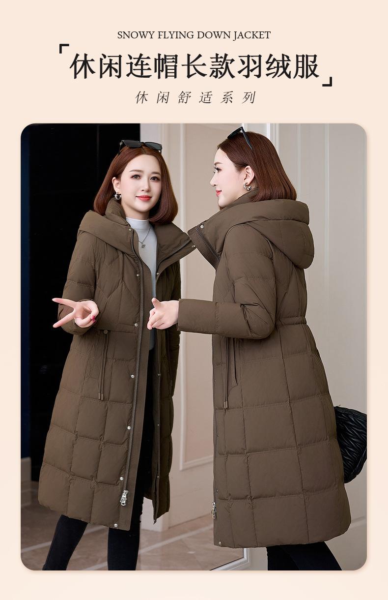 Volar en la Nieve Chaqueta Larga de Plumón para Mujer 2025 Nueva Hasta la Rodilla Cintura Chaqueta de Mamá Ropa de Invierno con Capucha para Mujeres de Mediana Edad y Mayores