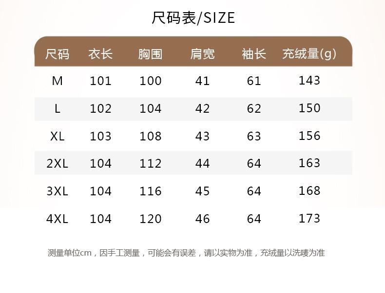 160/M, 165/L, 170/XL, 175/2XL, 180/3XL, 185/4XL