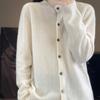Cárdigan de Punto de Lana Pura con Cuello Redondo Calado para Mujer Otoño e Invierno Nuevo Versátil Adelgazante Tejido Suave Base Abrigo de Manga Larga