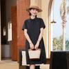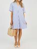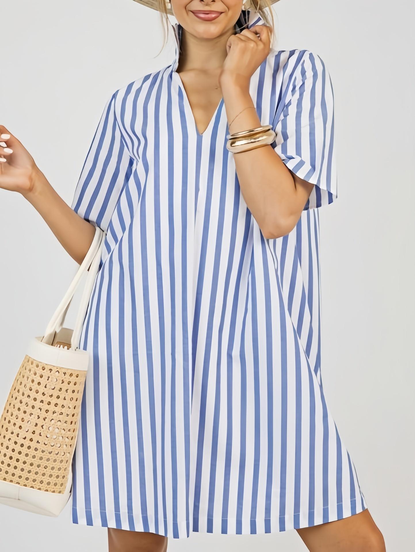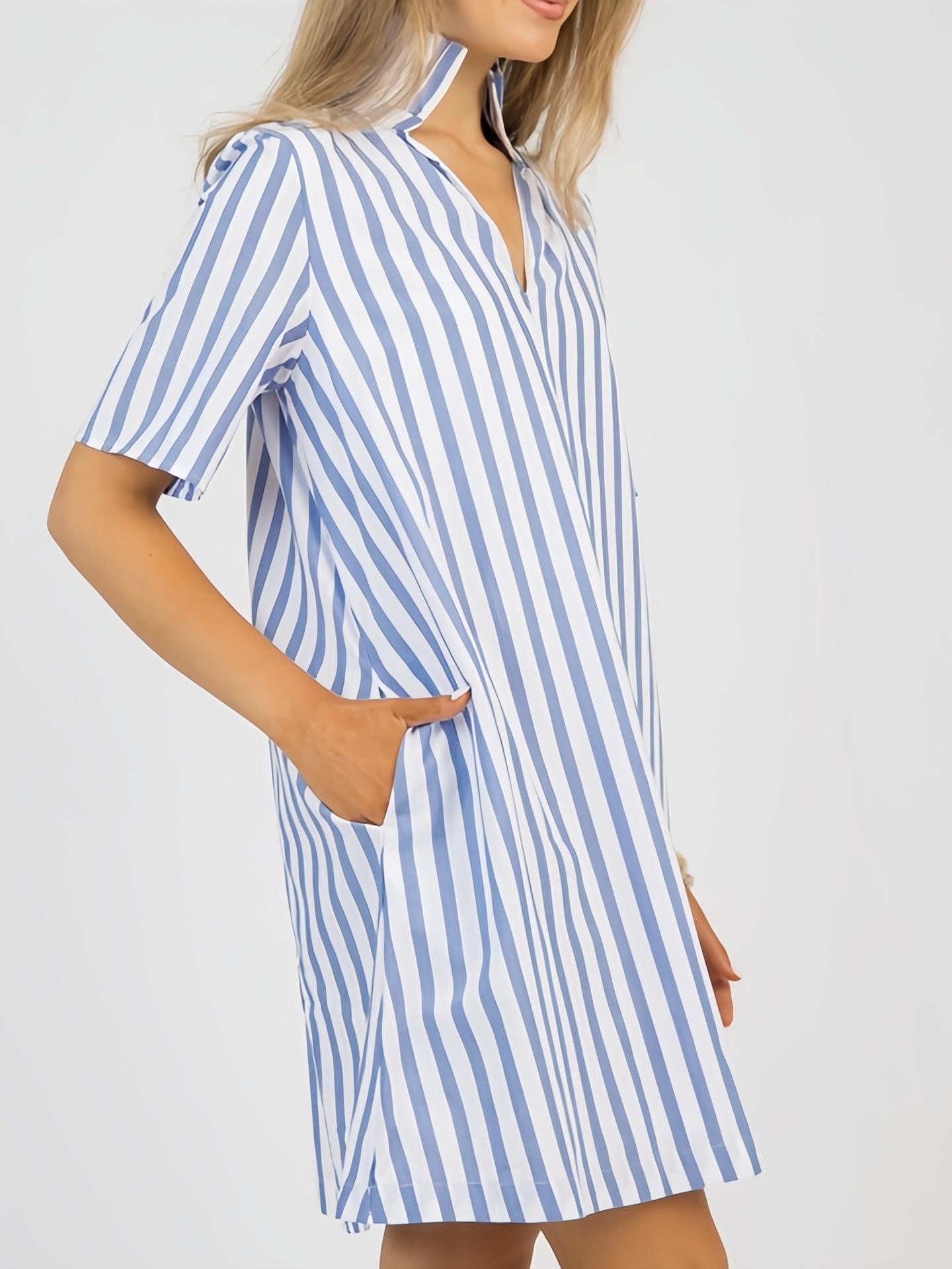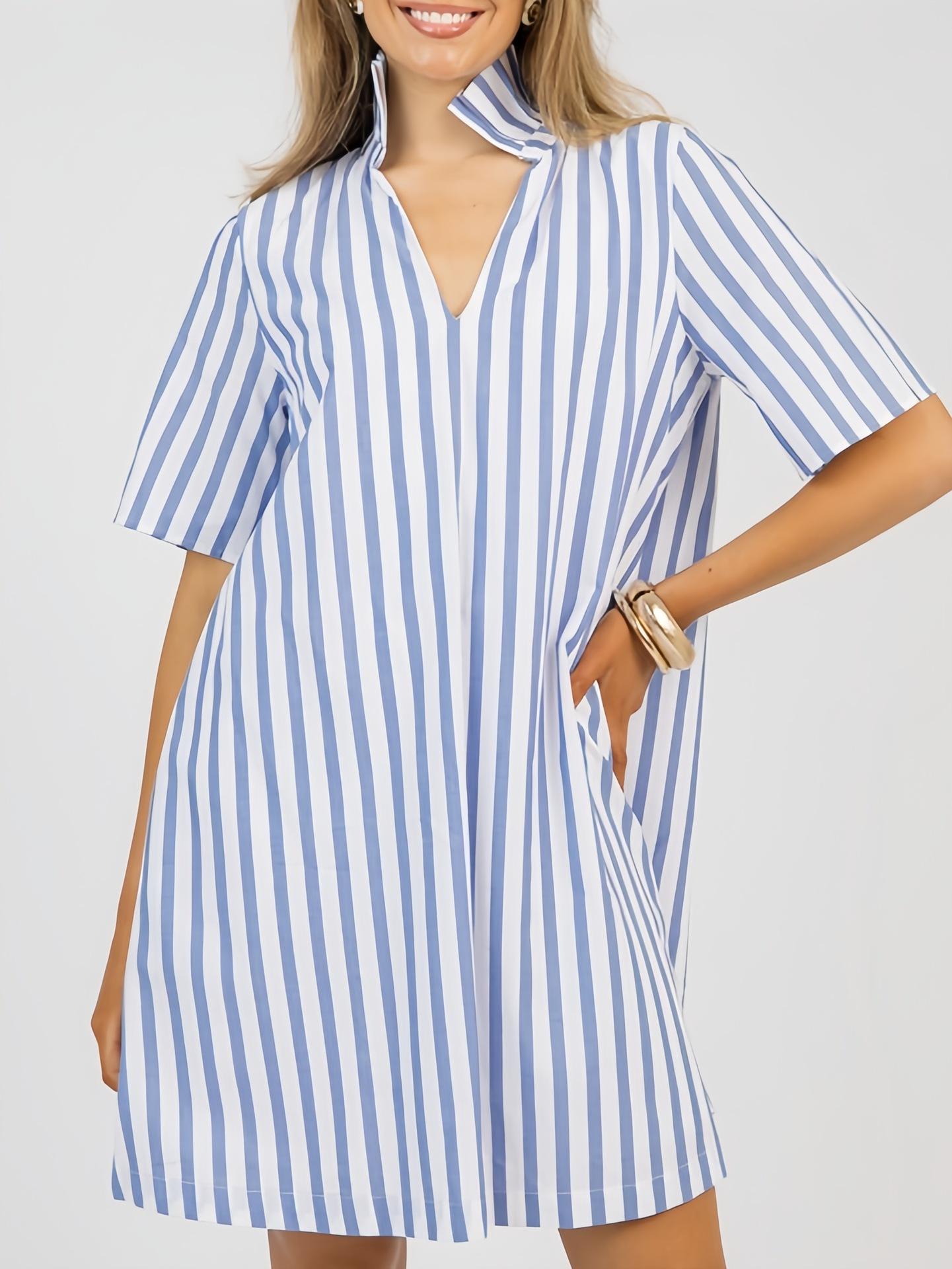 Nuevo Vestido Camisero Rayado de Cuello Medio Alto para Mujer, Estilo de Verano de Alta Gama 2025 Europeo y Americano Transfronterizo A-Line Elegante Vestido Corto