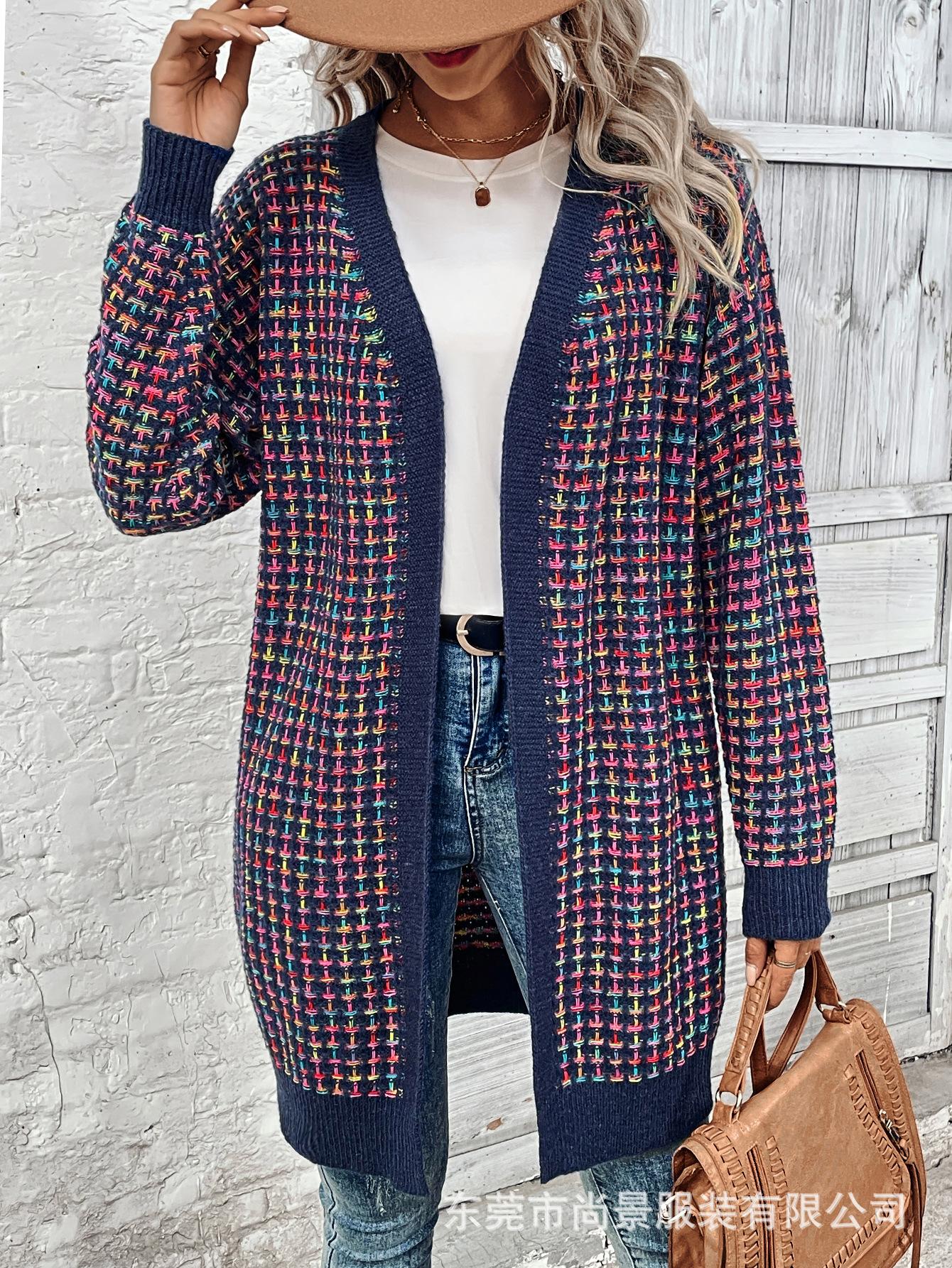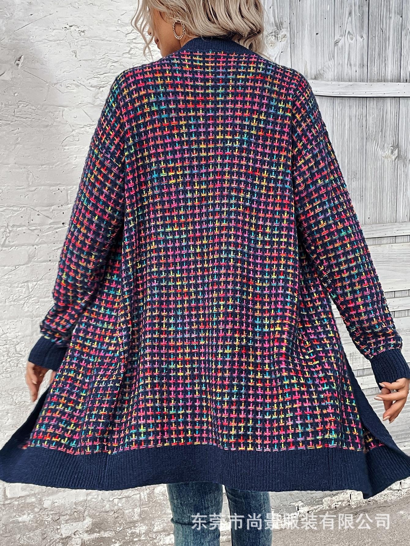 Exportación Transfronteriza Europea y Americana Otoño e Invierno Nuevo Tejido de Punto para Mujer Talla Grande Chaqueta Cárdigan Chaqueta Colorida de Moda Manga Larga
