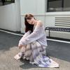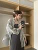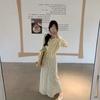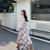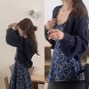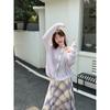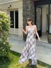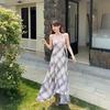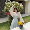 Foto real primavera y verano dulce viento suave rombo irregular vestido de tirantes cárdigan de punto fino traje de dos piezas