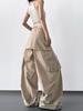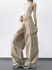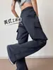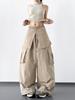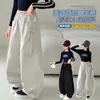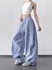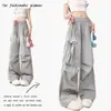 Pantalones Cargo Retro Americanos para Mujer 2025 Verano Nuevo Estilo Falda Cortina Cintura Alta Slim Suelto Estudiante Casual Pantalones de Pierna Ancha