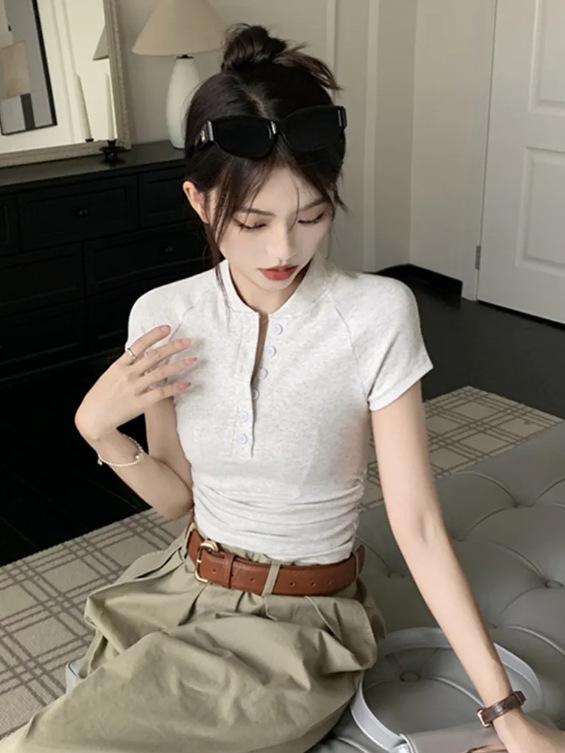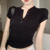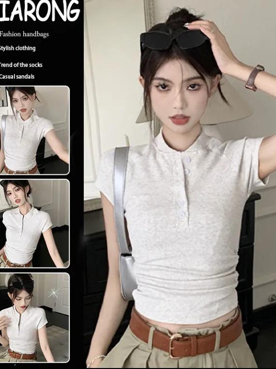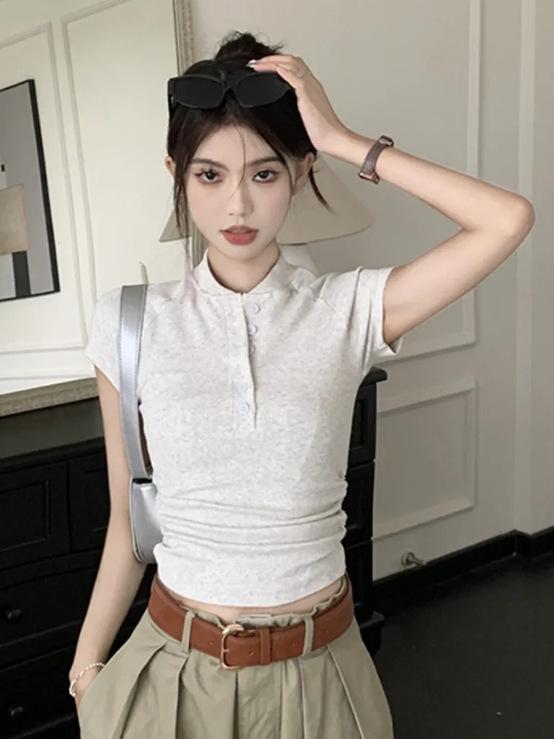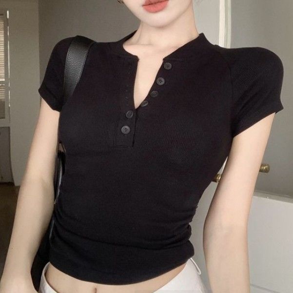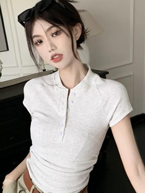 [Versión Coreana Color Puro] Camiseta de Manga Corta para Mujer Verano 2025 Nuevo Diseño Look Adelgazante Top Corto Sexy