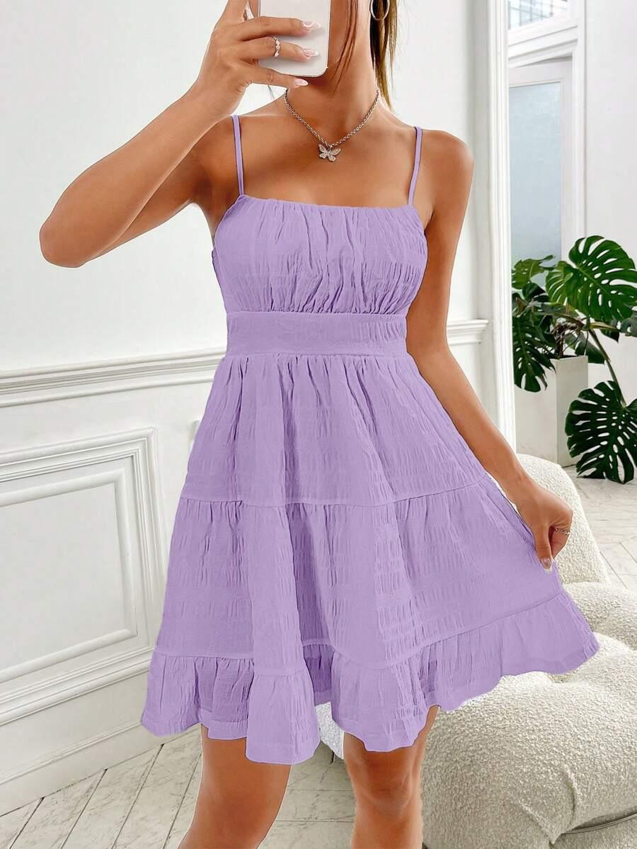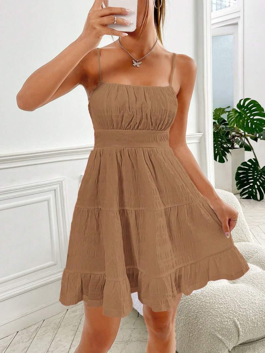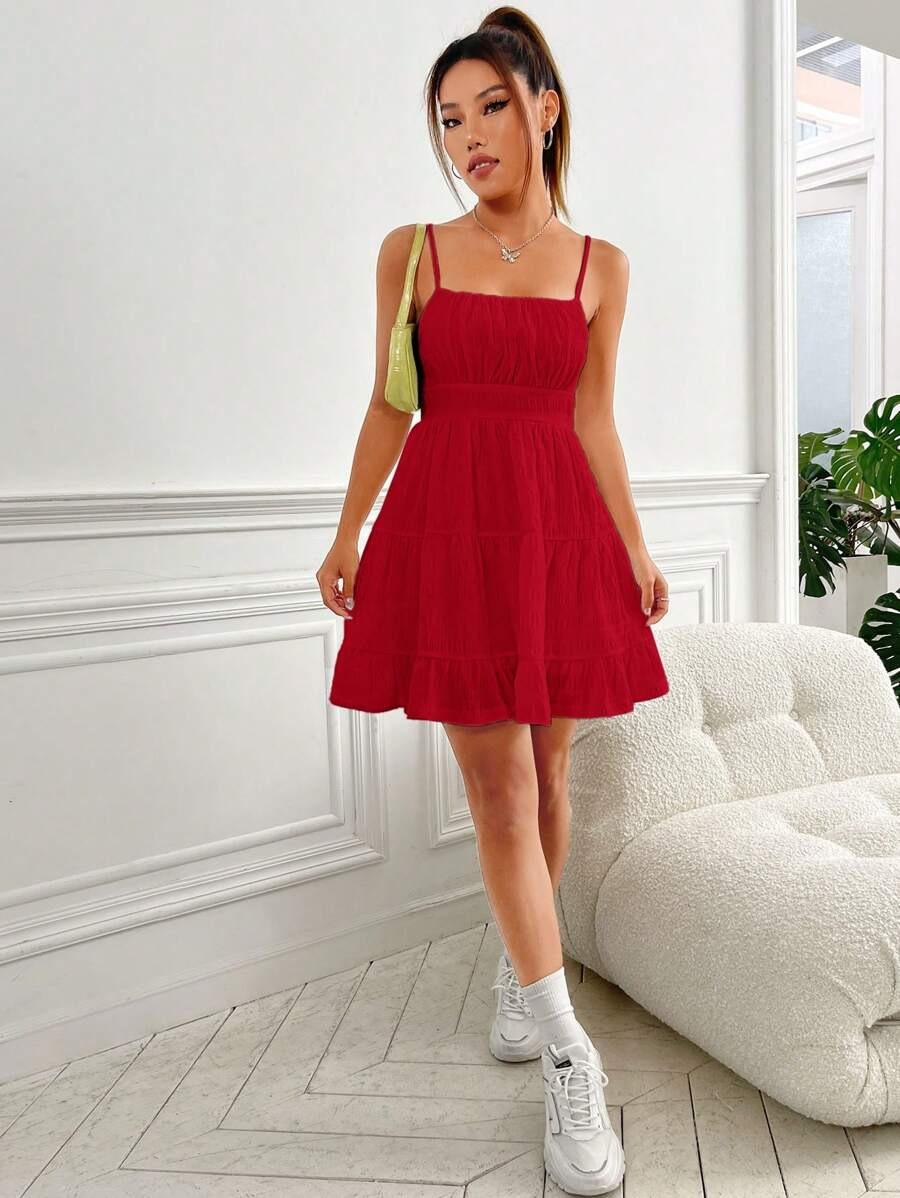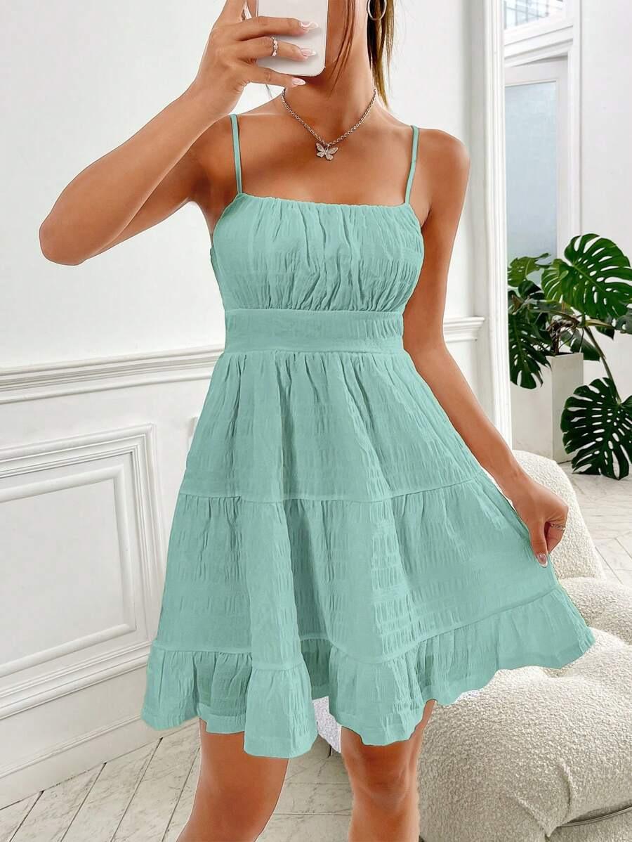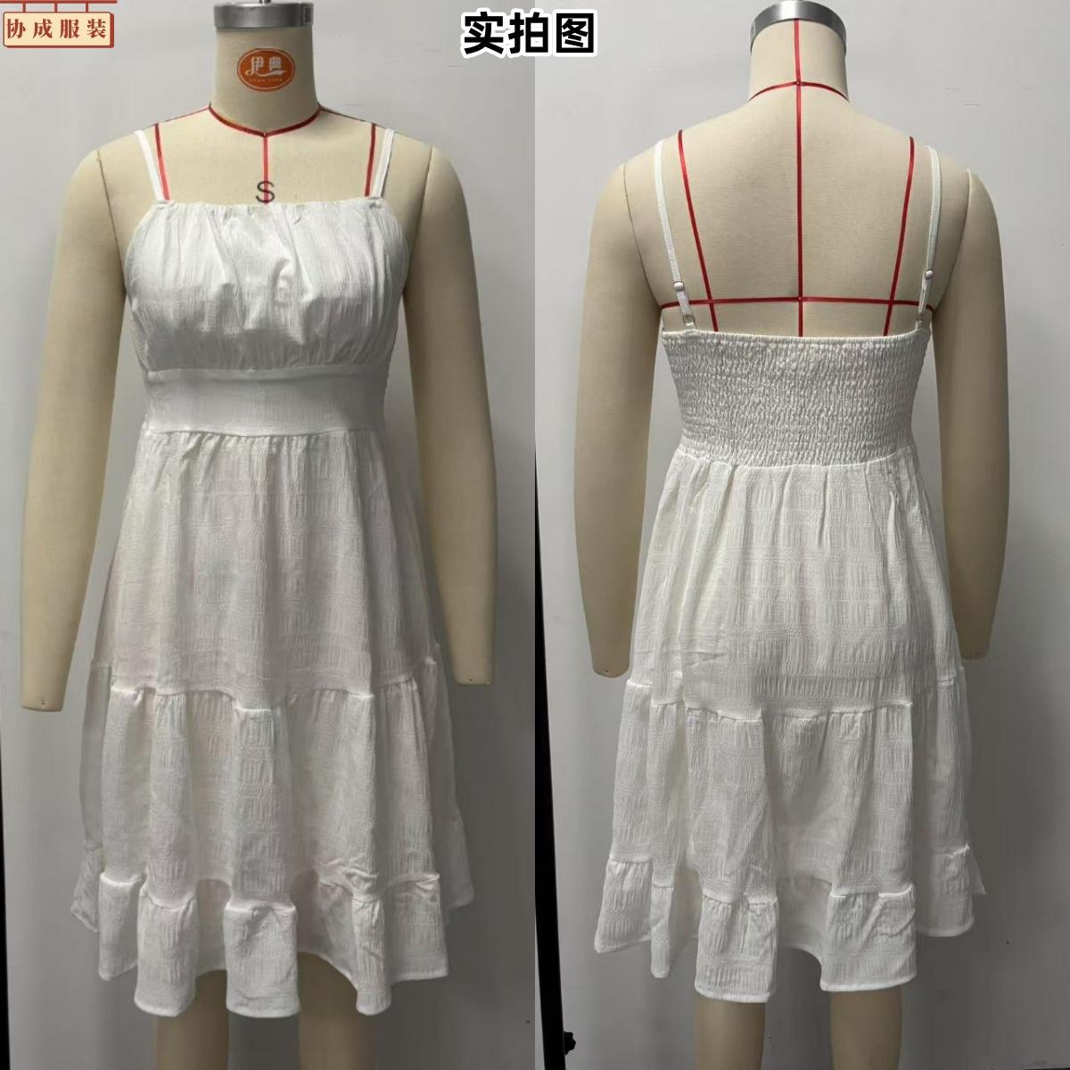 2025 Amazon Transfronterizo Nuevo Vestido Sexy de Verano Europeo y Americano Ajustado a la Cintura con Fruncidos Color Sólido sin Mangas con Tirantes Espagueti