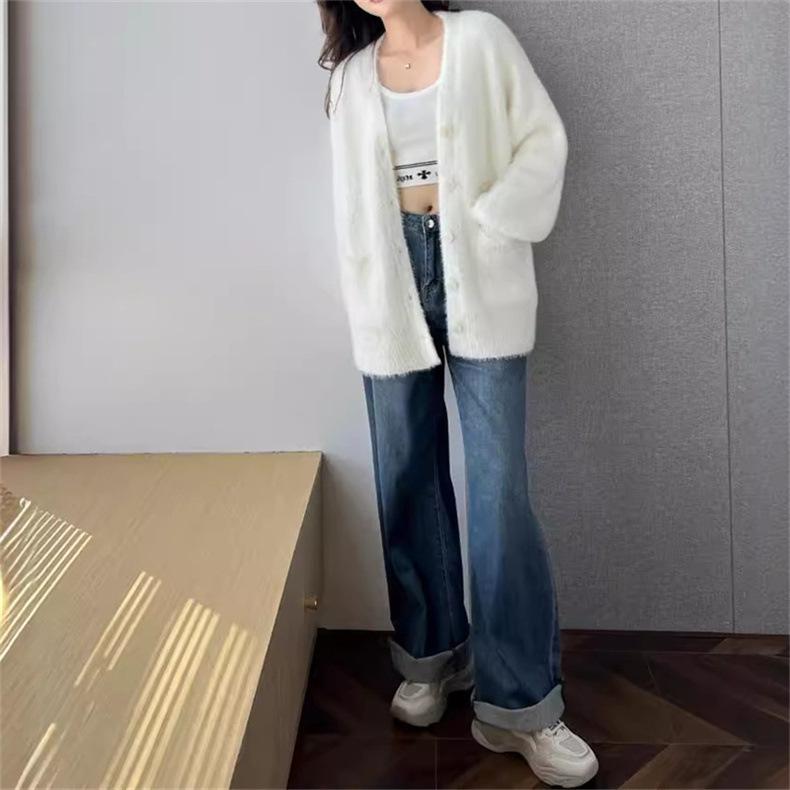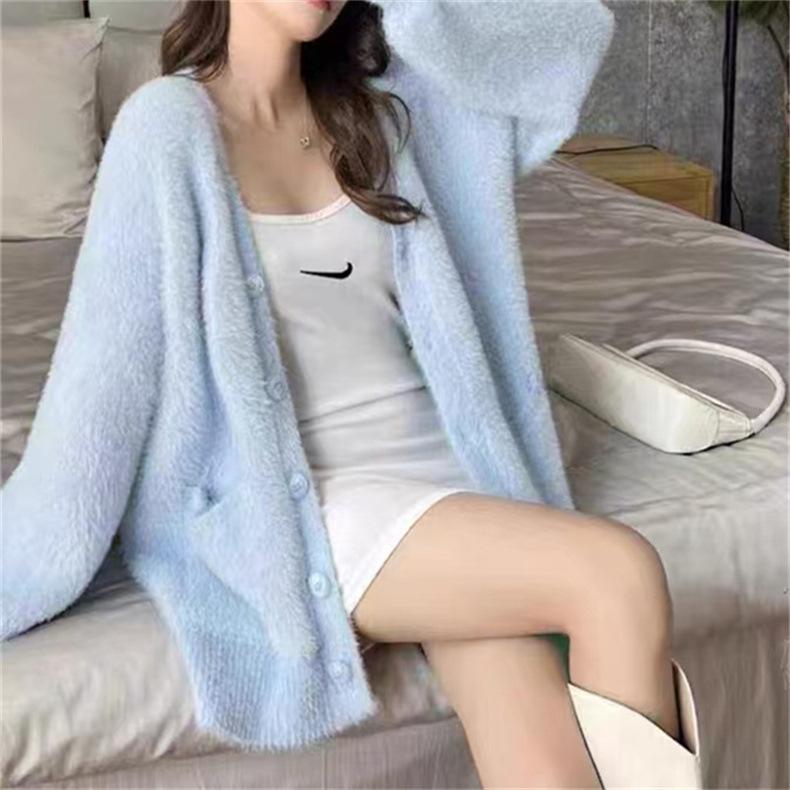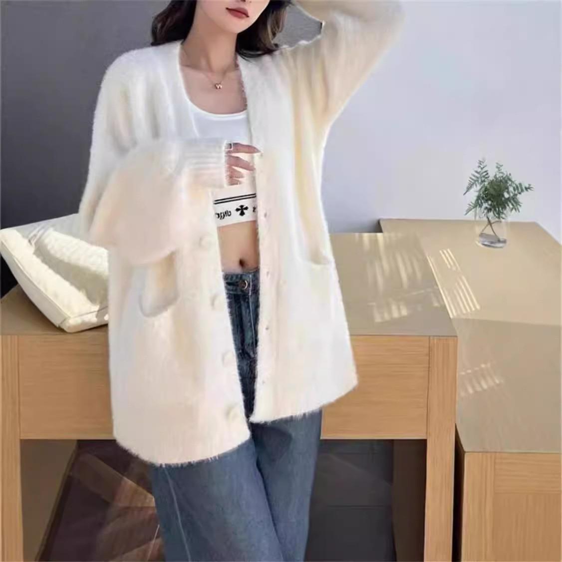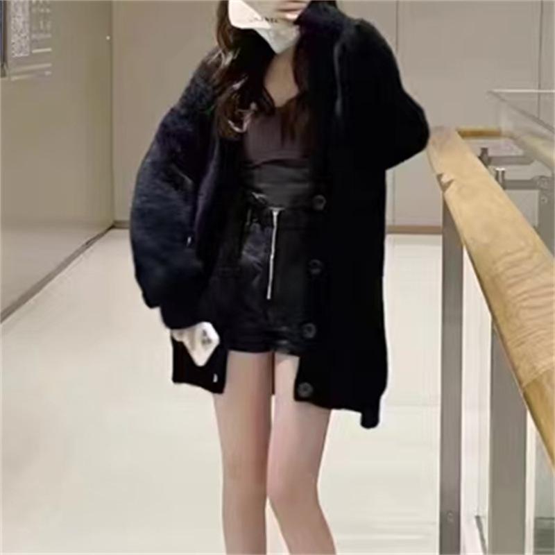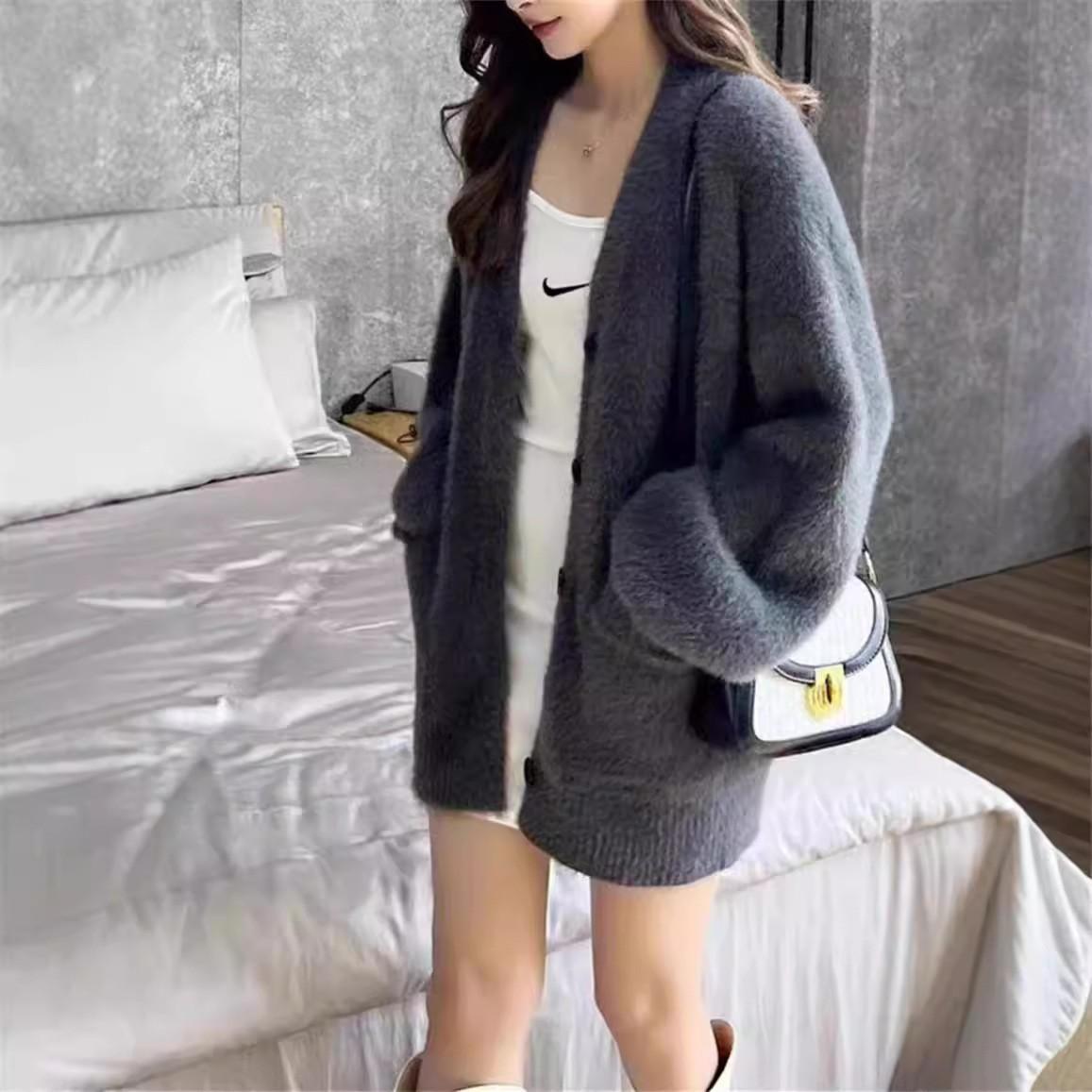 Cárdigan de Terciopelo de Visón para Mujer Primavera y Otoño Estilo Coreano Nuevo Estilo Lazy Suéter Suave Ceroso Engrosado Chaqueta Tejida Holgada de Largo Medio