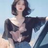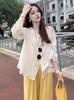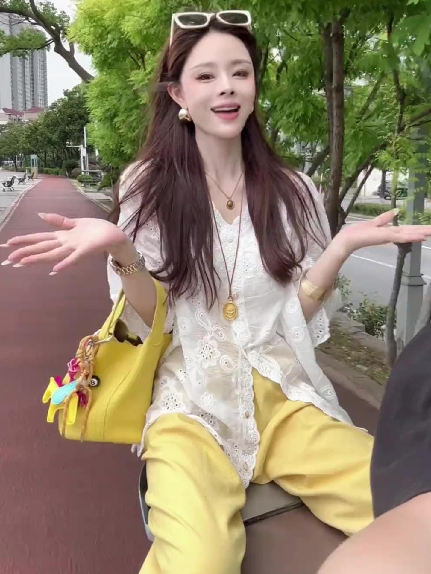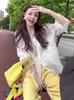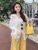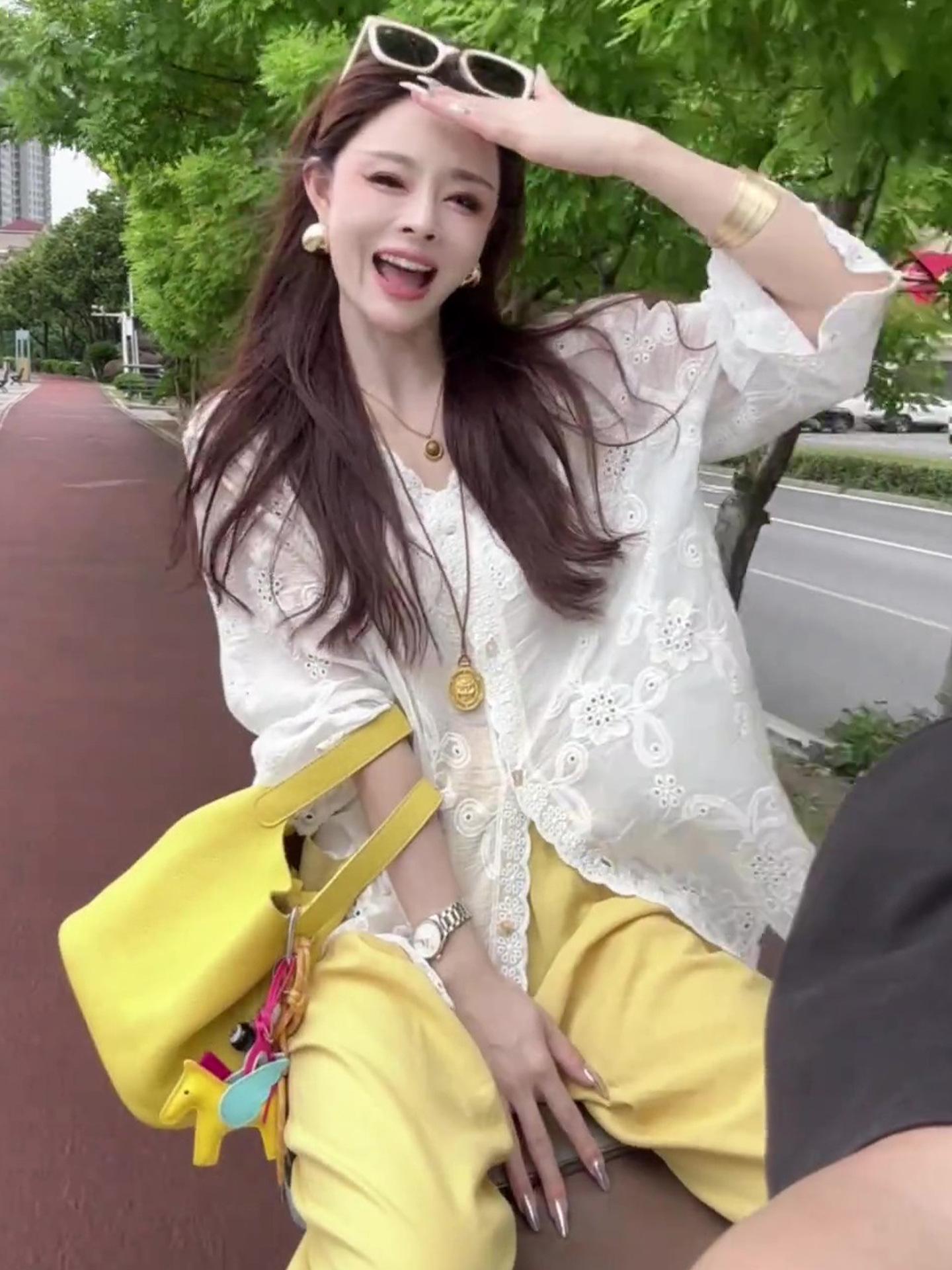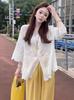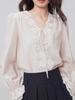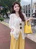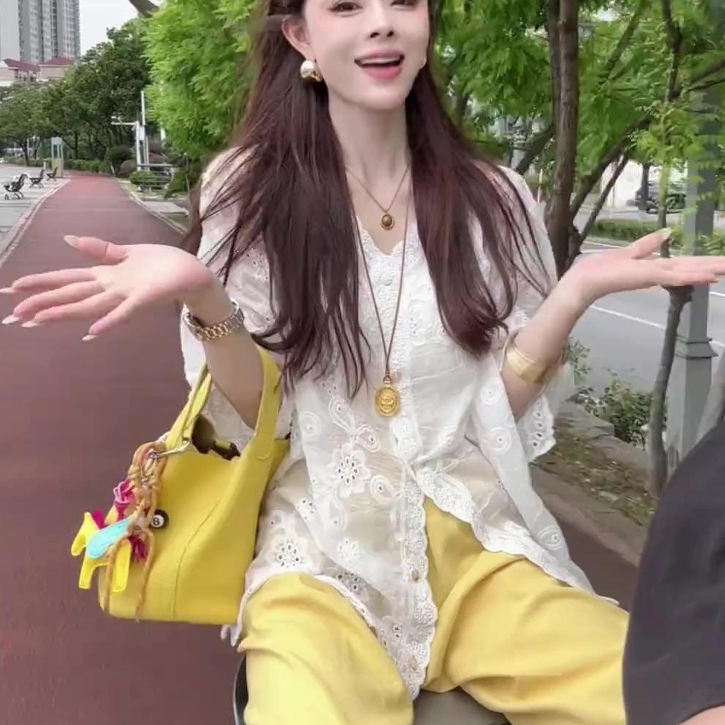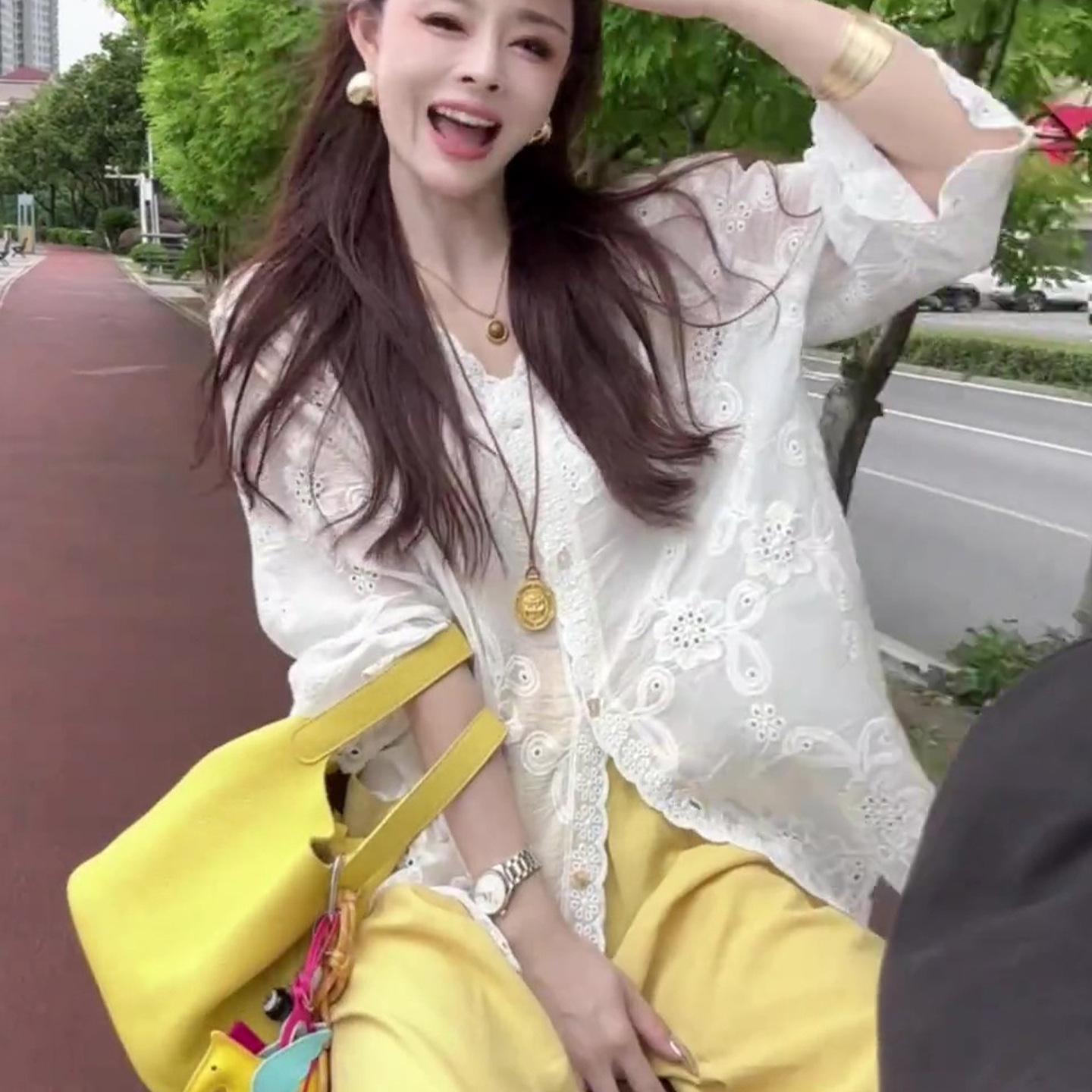 Chaqueta Camisa Fina de Protección Solar con Cuello en V Francés para Mujer 2025 Nuevo Verano Encaje de Alta Gama Ganchillo Recorte Top