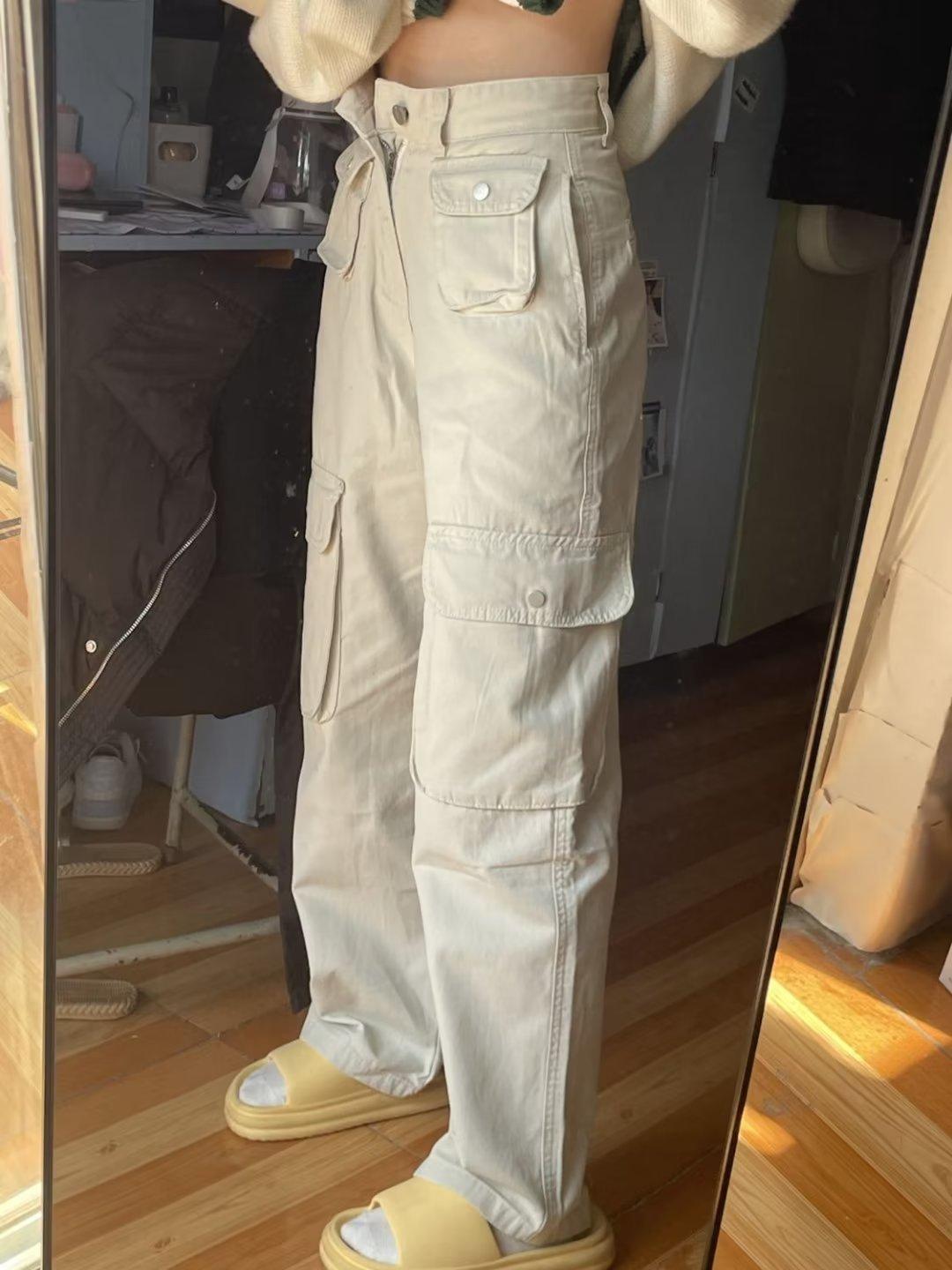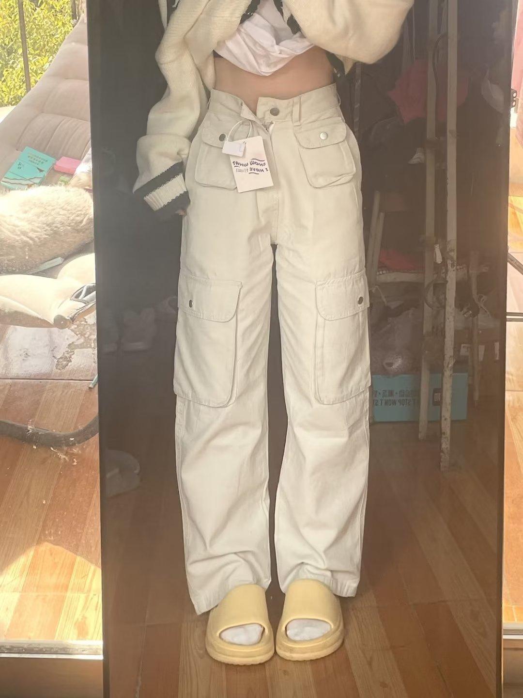 Jeans de Trabajo de Calle Diseño Americano Pantalones Rectos Sueltos de Pierna Ancha para Personas Pequeñas Verano 2025 Nuevo Estilo