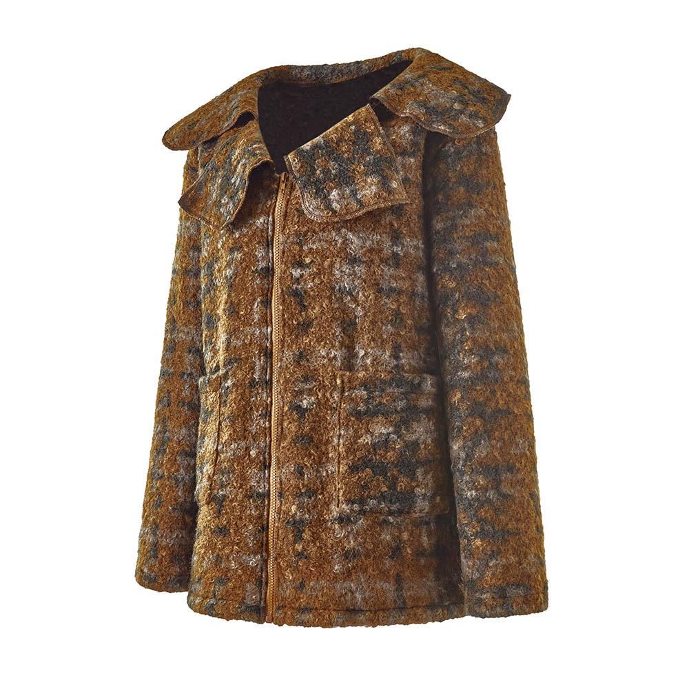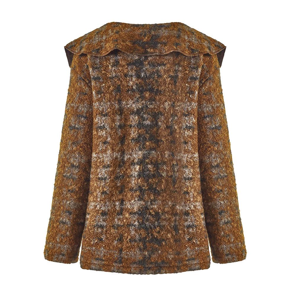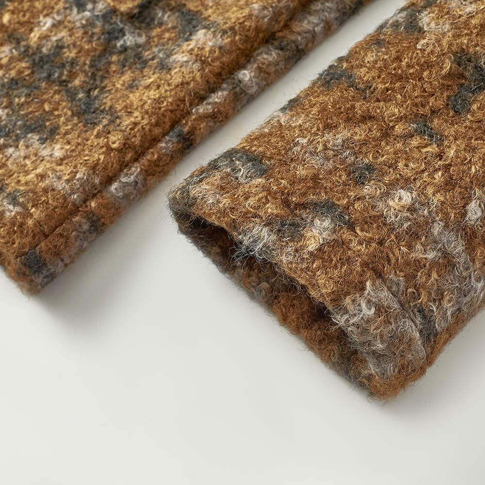 Abrigo Exterior con Cuello Pétalo para Mujer 2024 Otoño e Invierno Nuevo Popular Tweed de Cuadros Pequeños Suelto Lana Exterior Personalizado