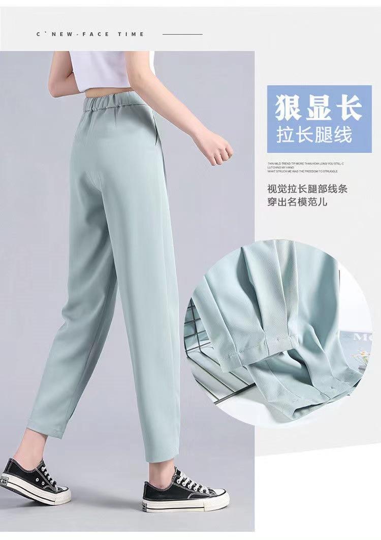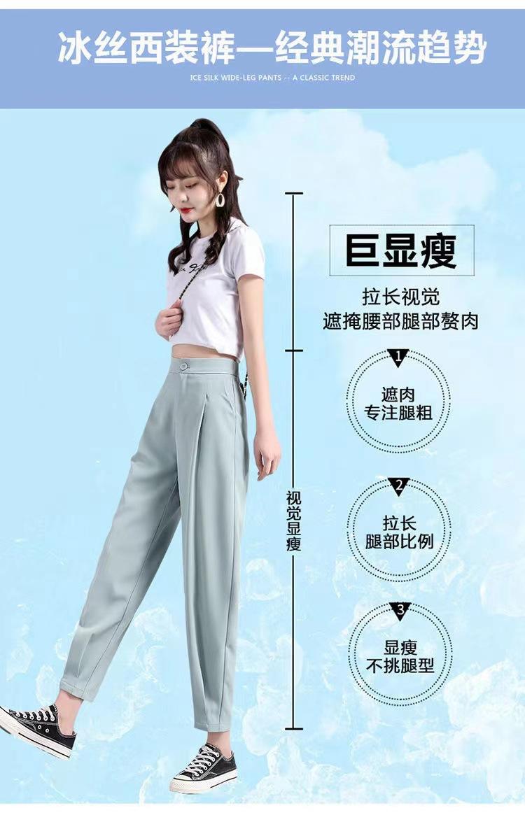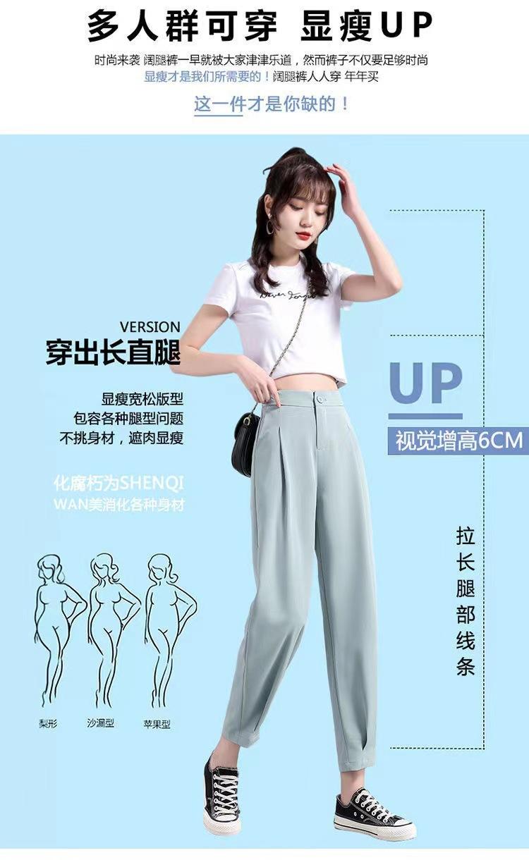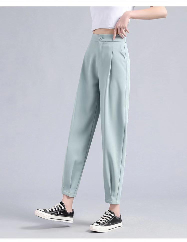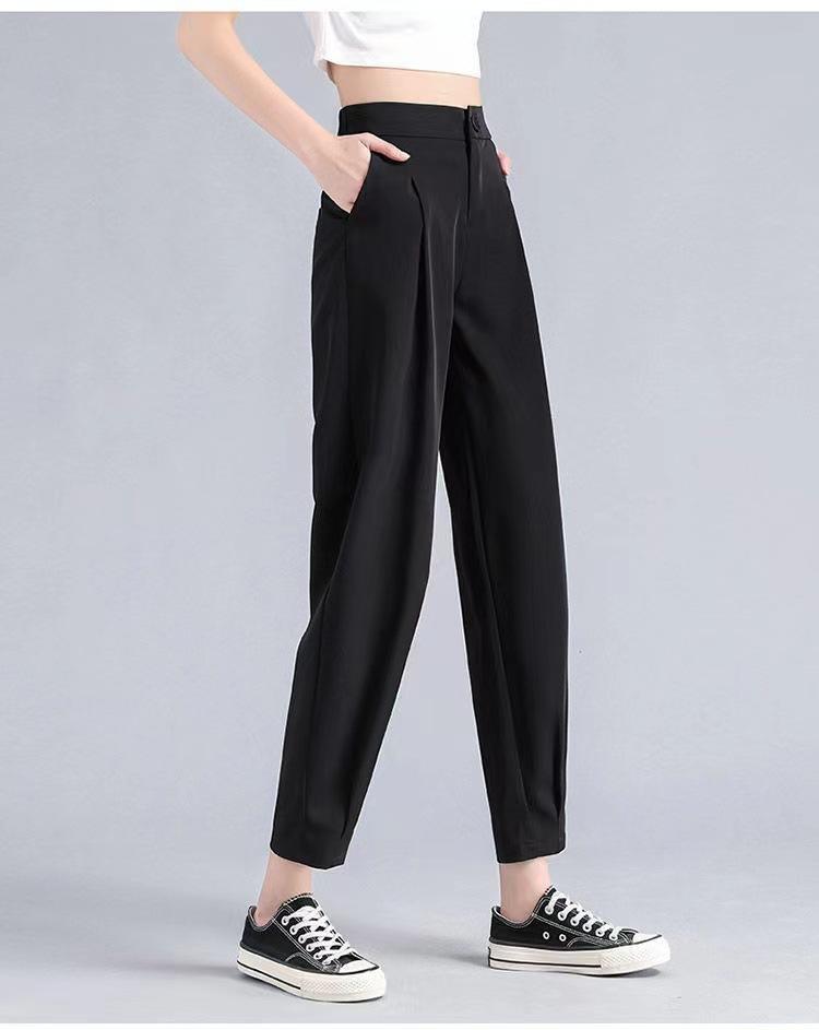 Pantalones de Traje Pequeños de Nueve Puntos con Textura de Seda de Hielo para Mujer Verano Delgados Sueltos con Caída Cintura Alta Casuales Tipo Nabo Harem