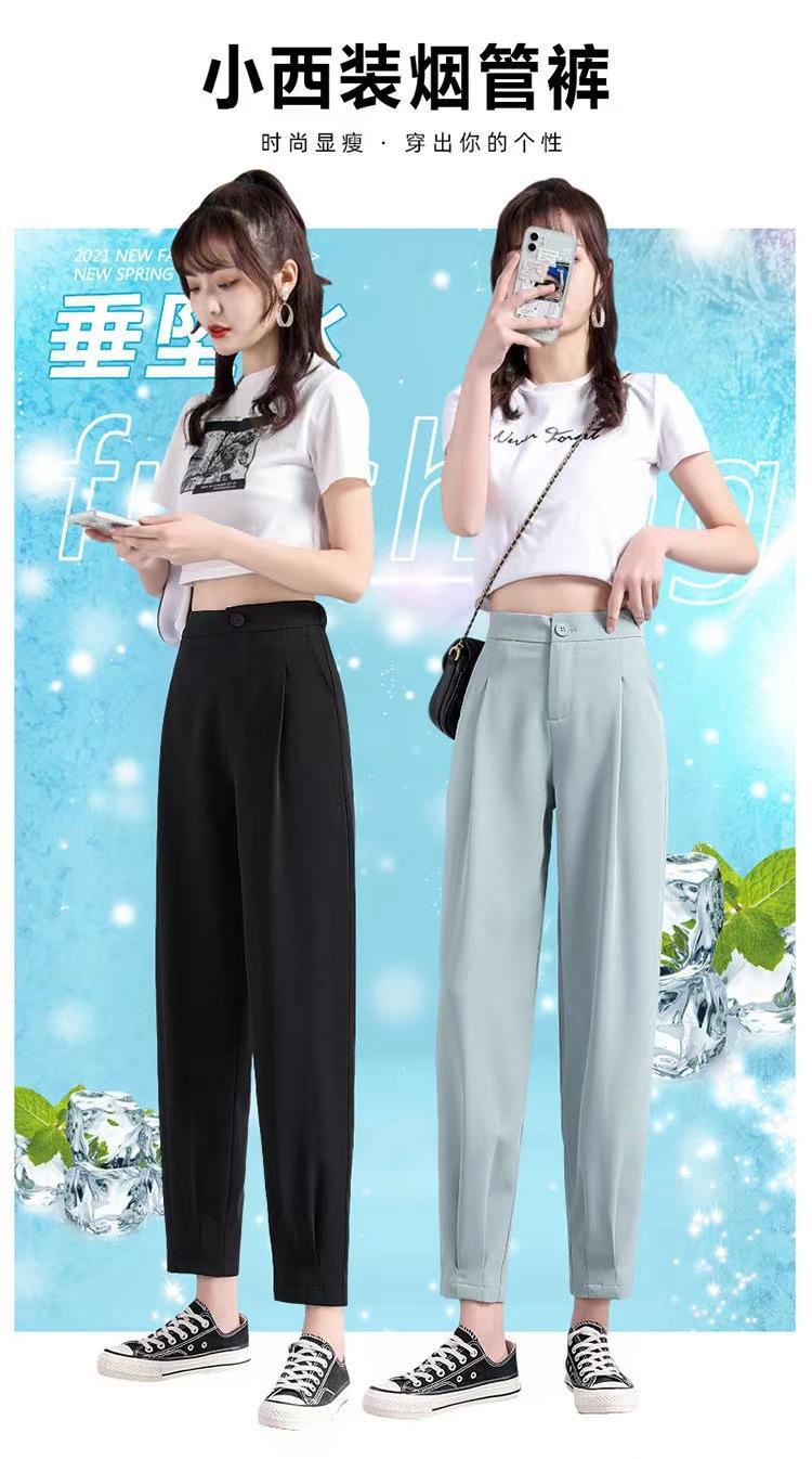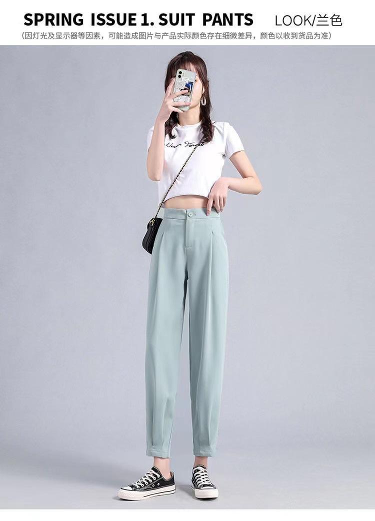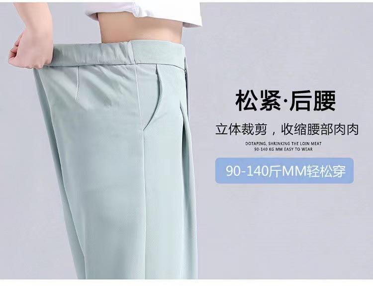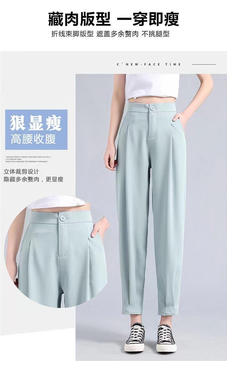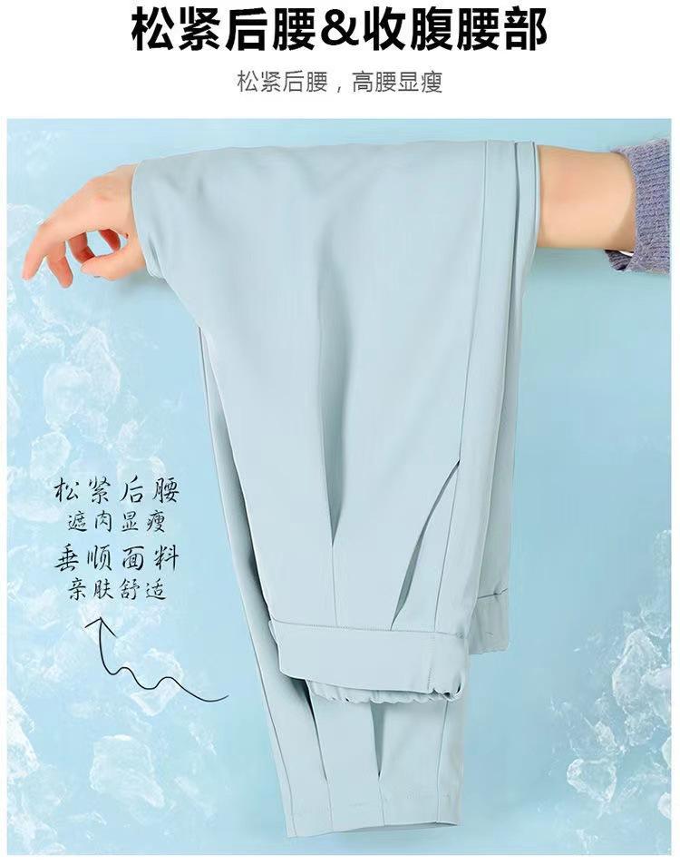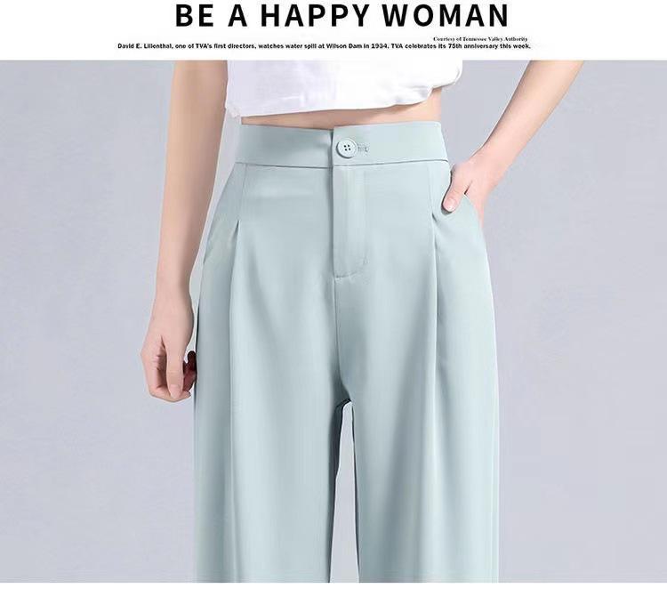 Pantalones de Traje Pequeños de Nueve Puntos con Textura de Seda de Hielo para Mujer Verano Delgados Sueltos con Caída Cintura Alta Casuales Tipo Nabo Harem