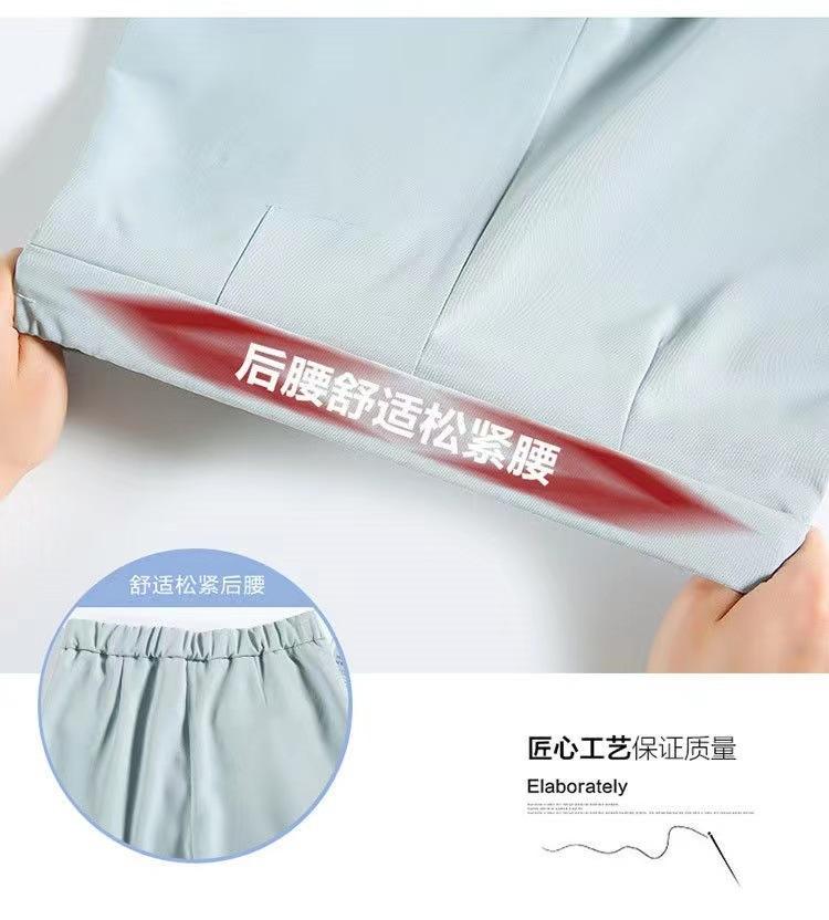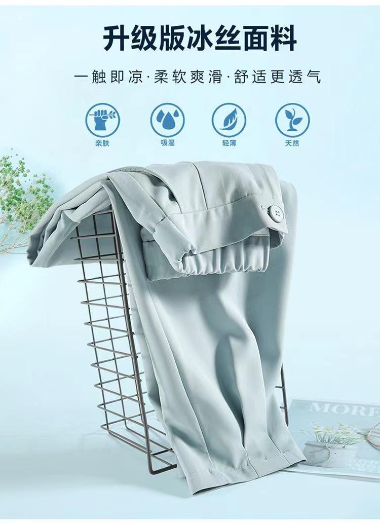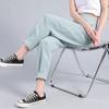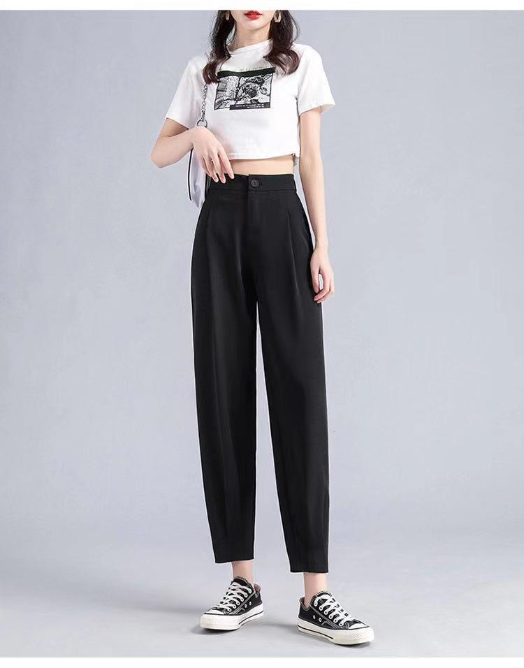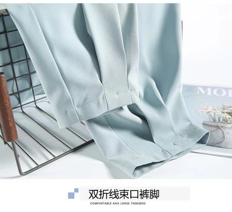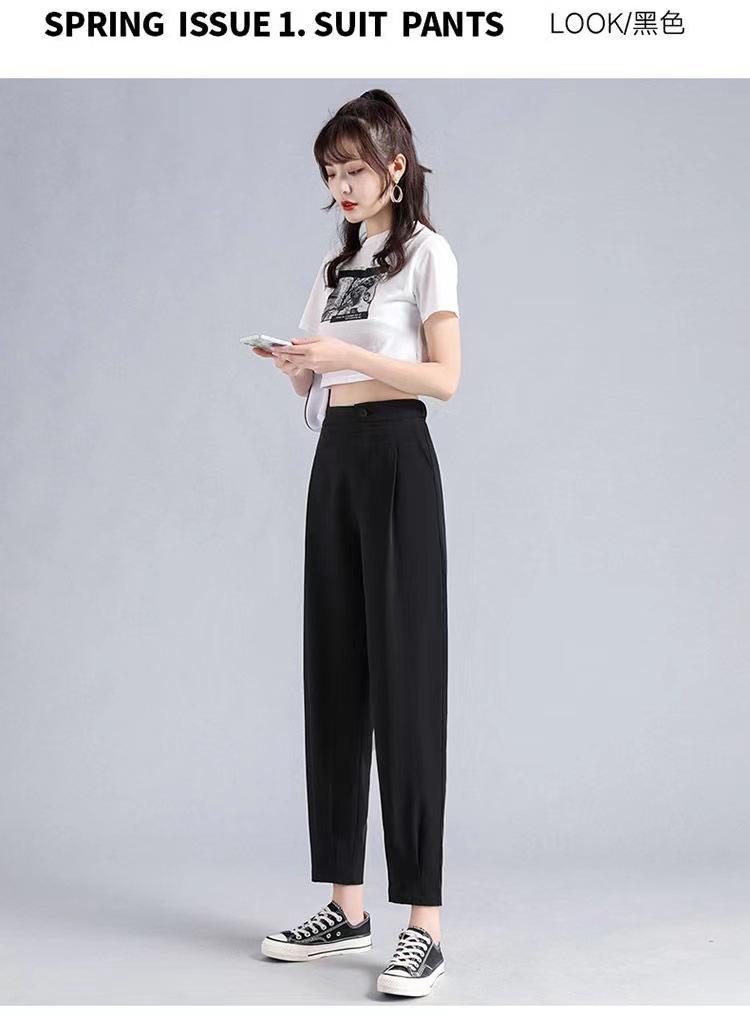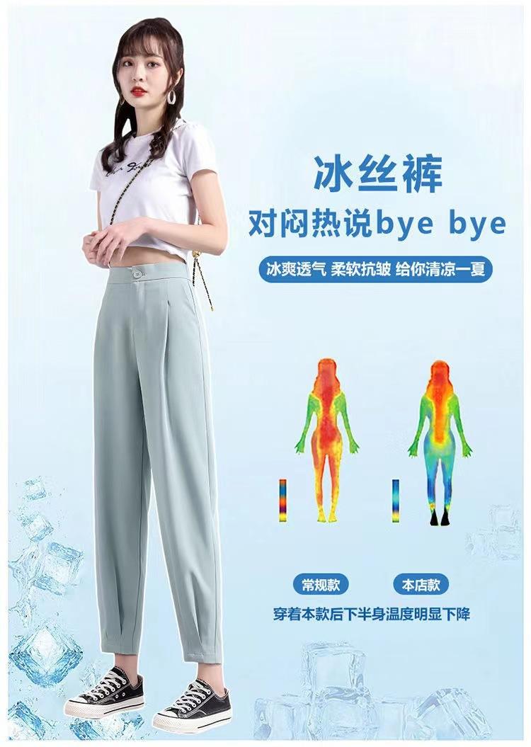 Pantalones de Traje Pequeños de Nueve Puntos con Textura de Seda de Hielo para Mujer Verano Delgados Sueltos con Caída Cintura Alta Casuales Tipo Nabo Harem